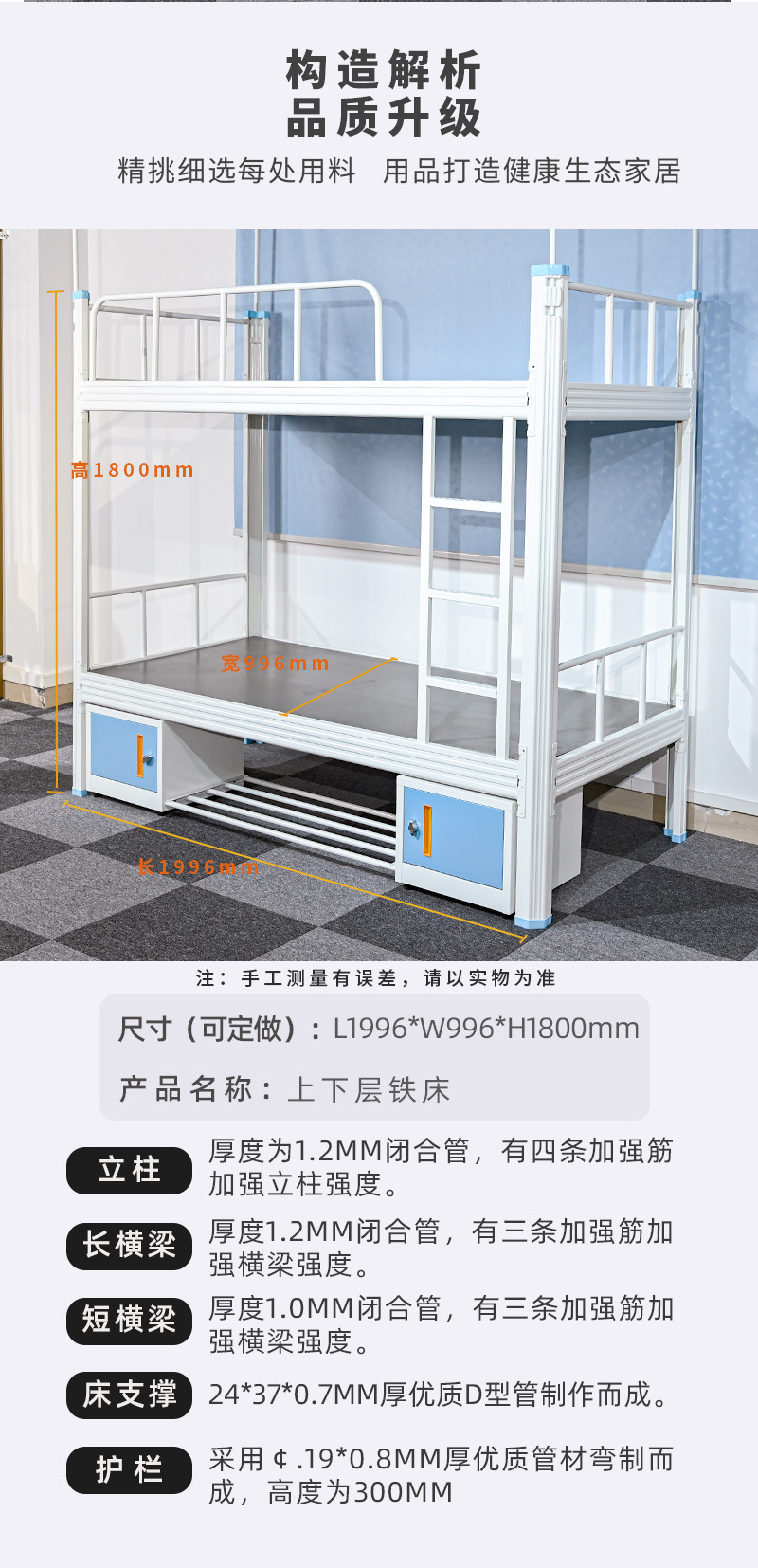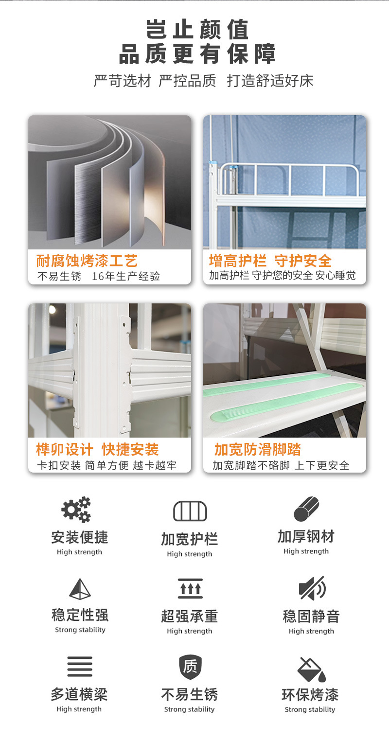 공장 직원 주택용 철제 침대, 학교 기숙사용 직사각형 사다리 철제 침대, 맞춤형 상하 이층 철제 침대, 스틸 프레임
