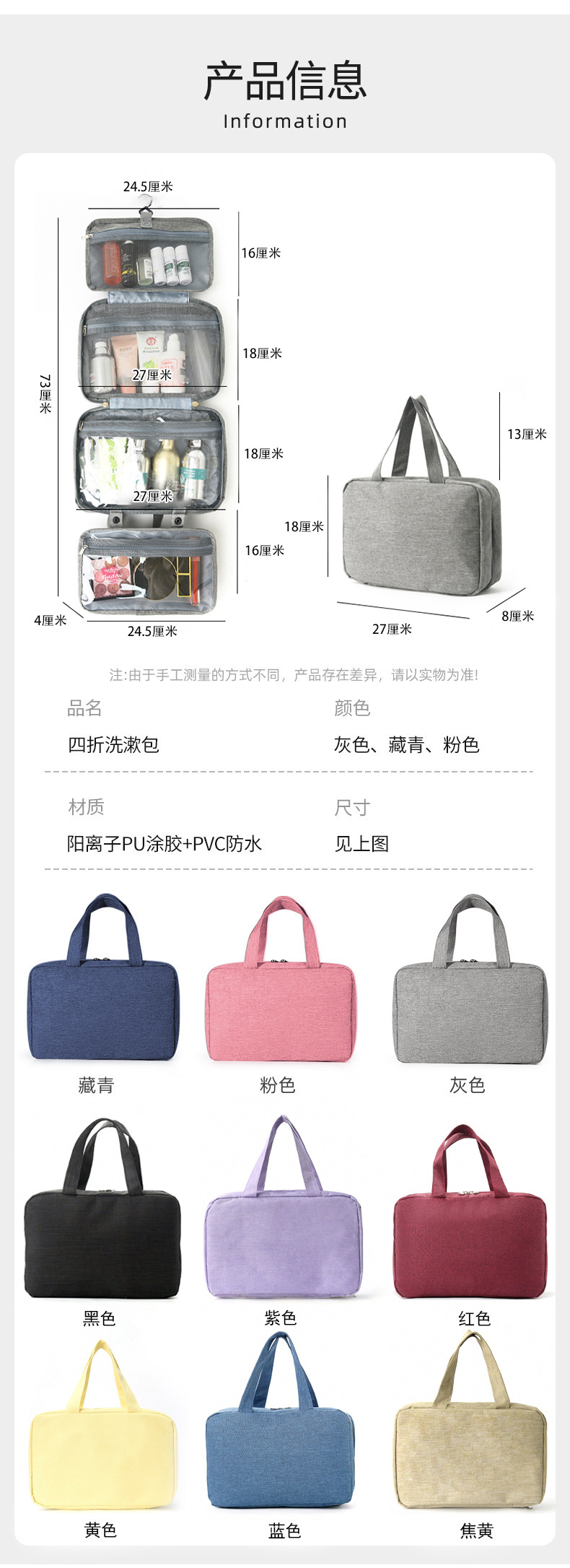 맞춤형 대외 무역 국경 40% 폴드 건조하고 젖은 분리 가능한 멀티 컬러 보관 세척 가방 휴대용 워시 백 화장품 가방