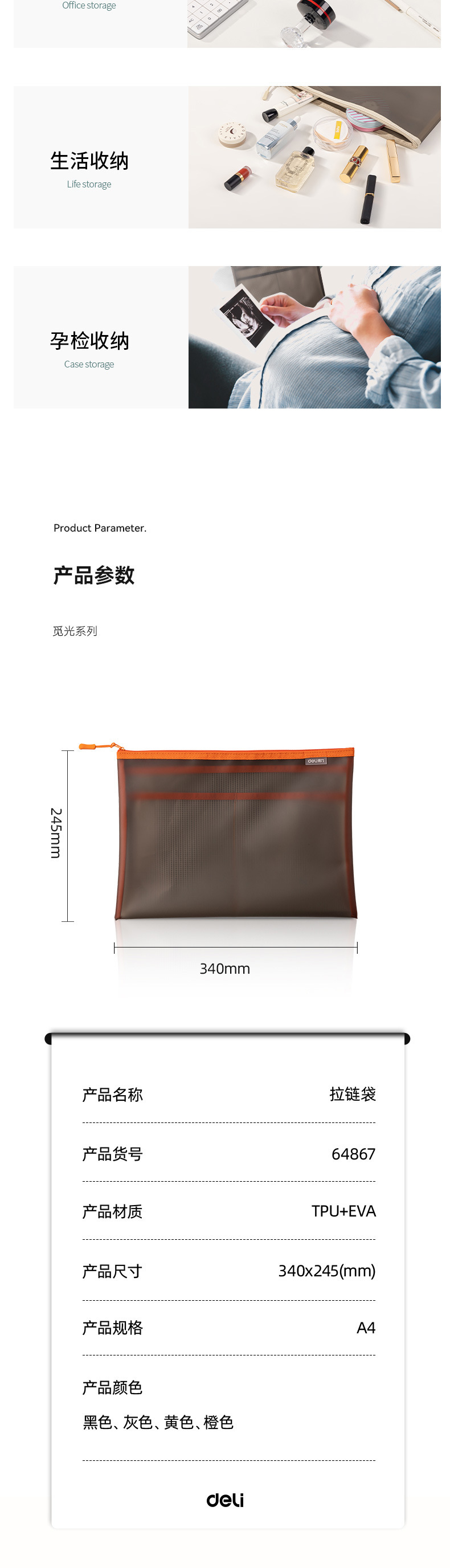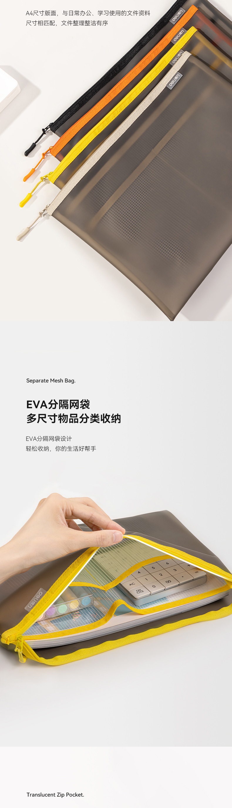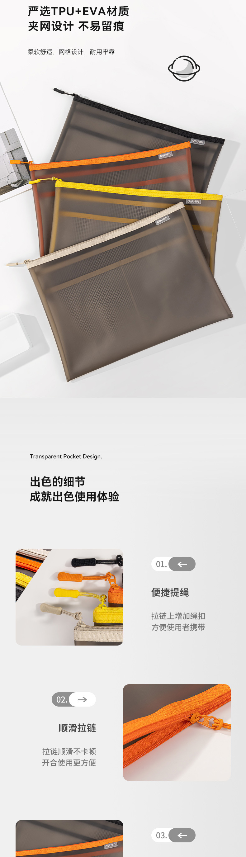 델리 TPU 지퍼 가방 A4 파일 가방 지퍼 가방 임신 테스트 종이 저장 가방 투명 그리드 가방 도매