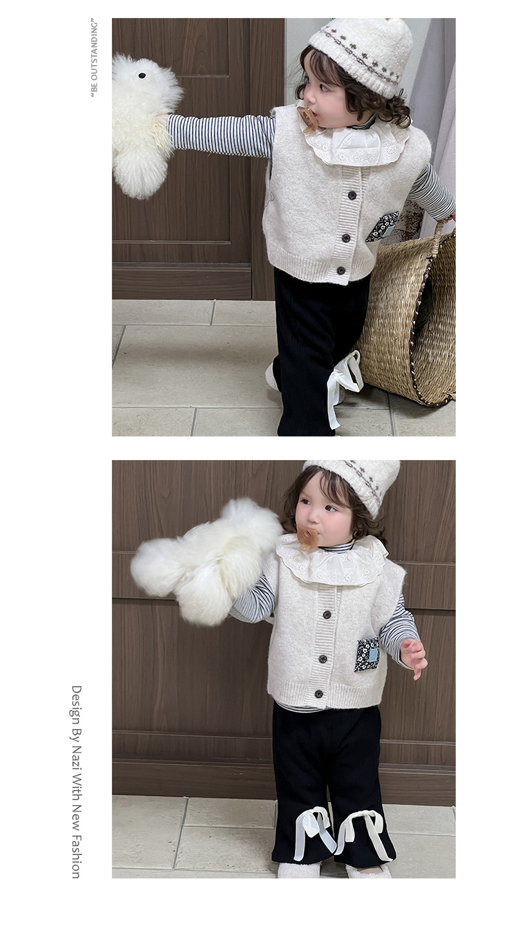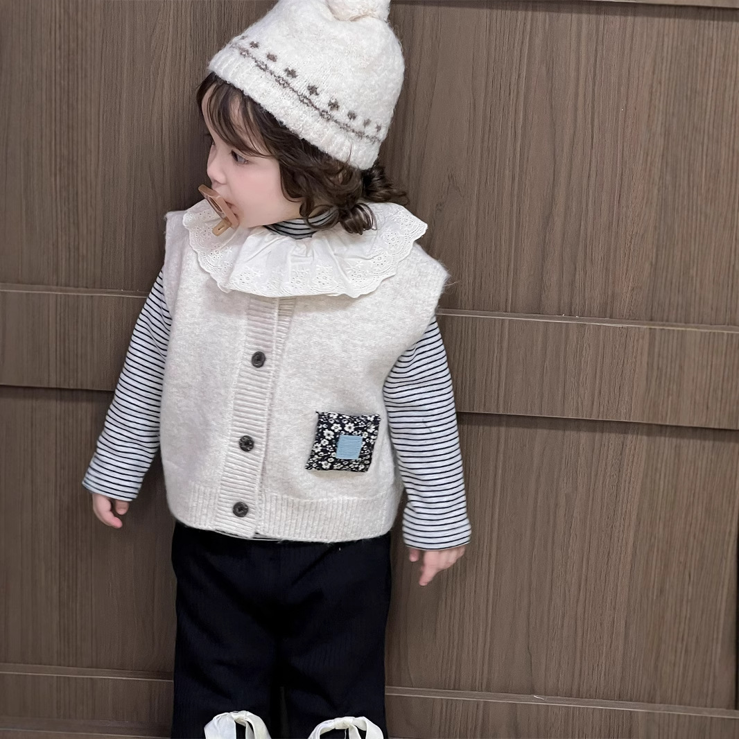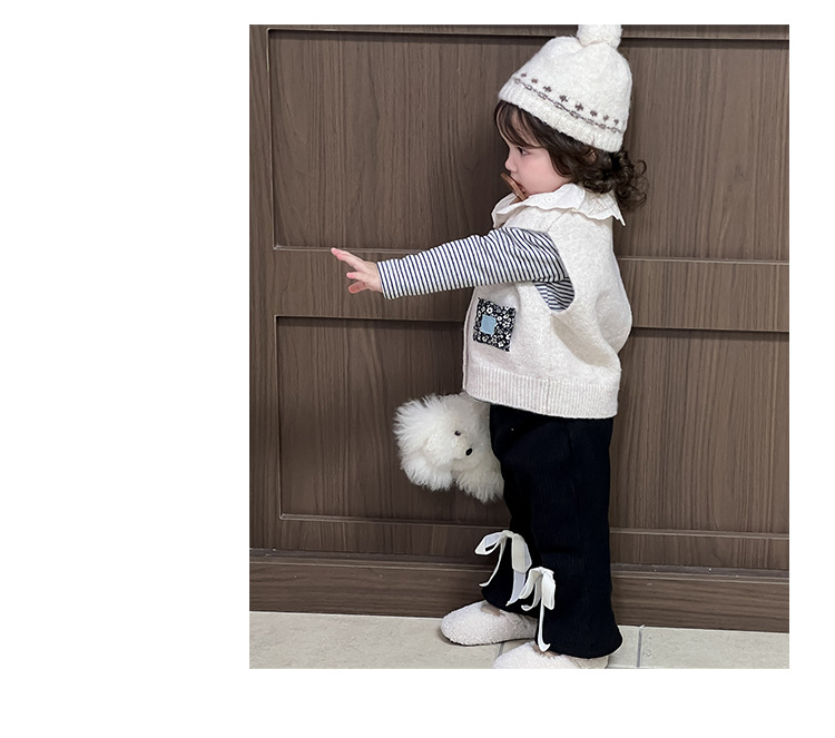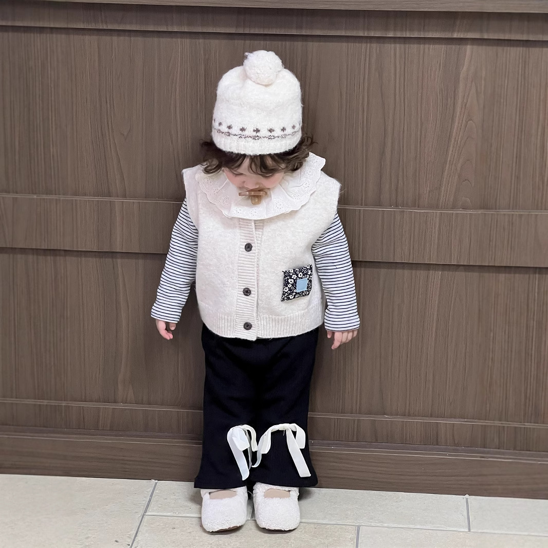 어린이 겨울옷 아기 두꺼운 세트 한국 스타일 아동복 여자 아이 스웨터 조끼 기본 셔츠 기본 바지 세트
