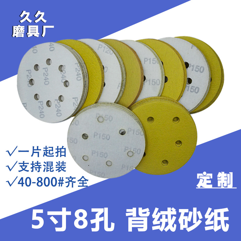 크로스보더 5inch 연마 원형 디스크 플로킹 사포 연마 및 광택용 자가 접착식 황사 건식 연마 사포 시트 도구 수냉식 연마 유카스토어 가기
