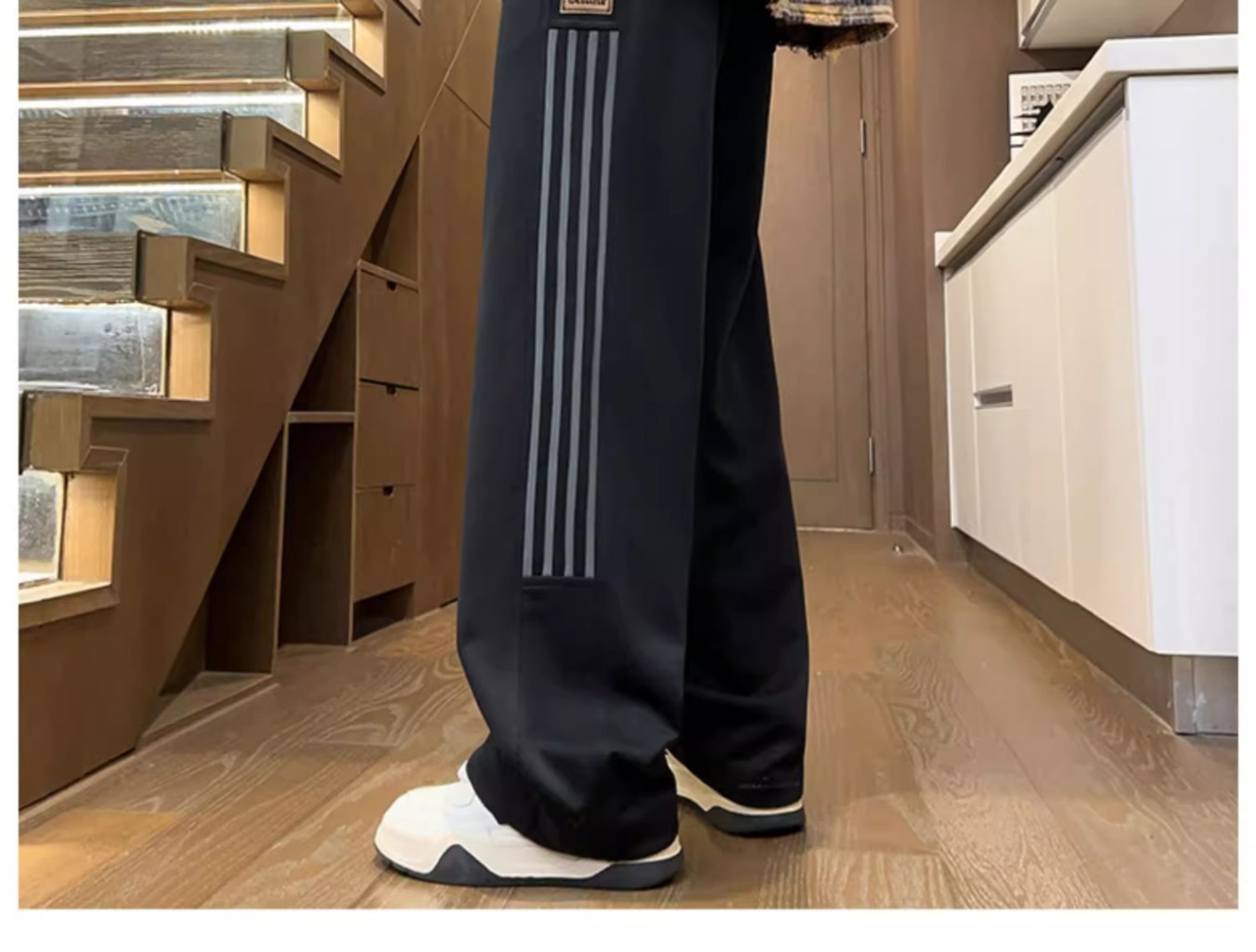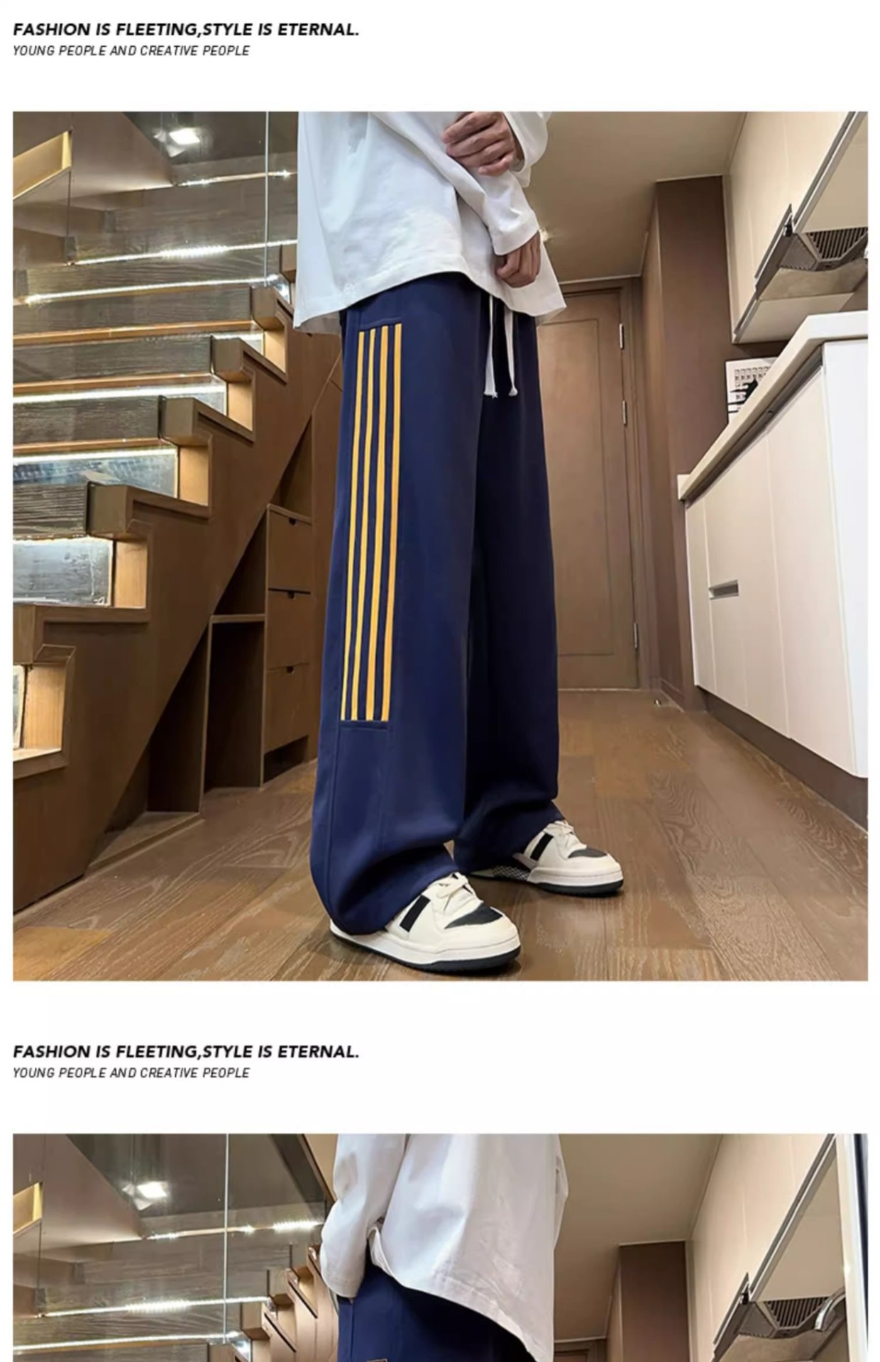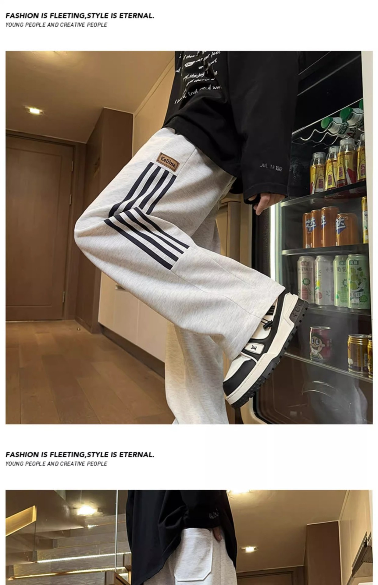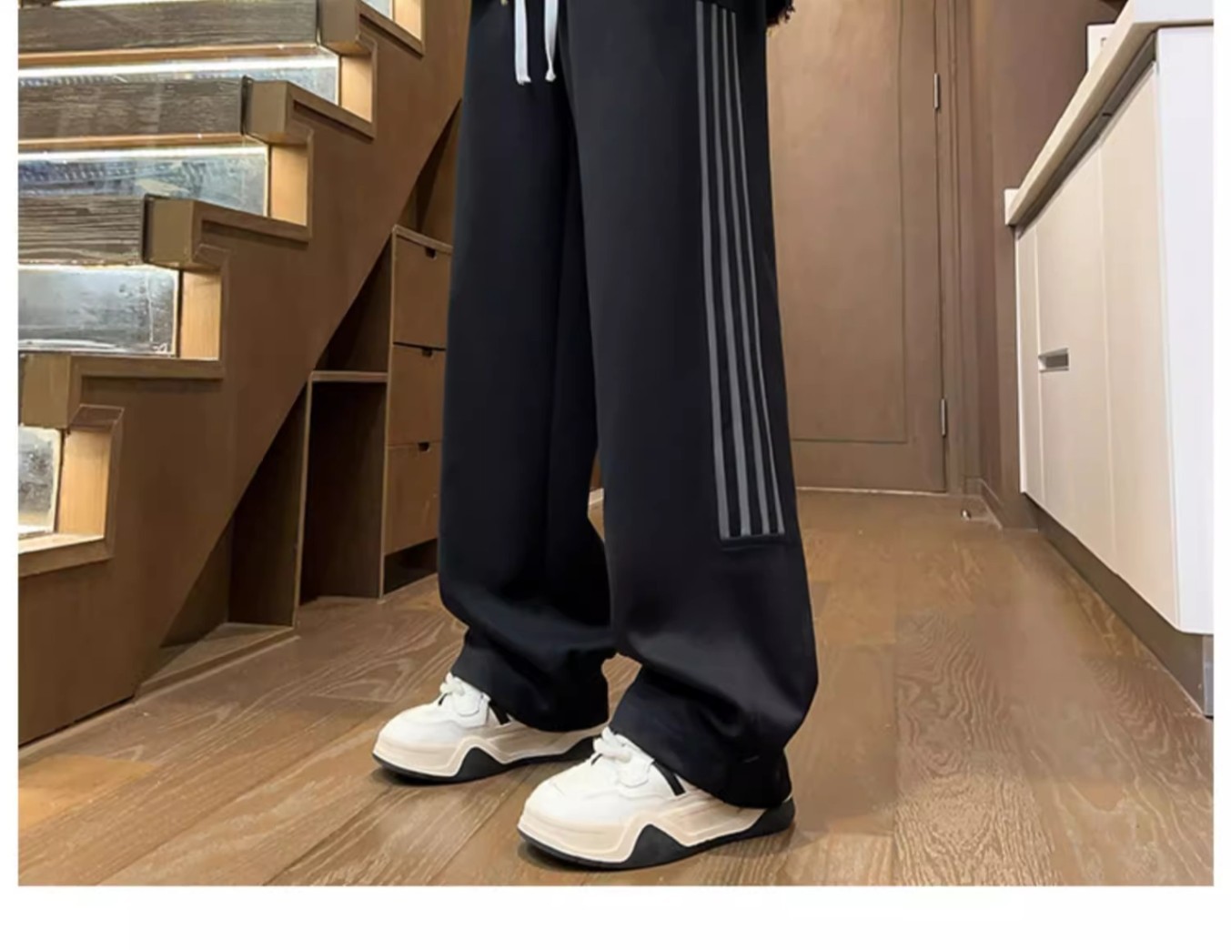 남성용 그레이 헤비웨이트 스포츠 팬츠, 봄, 가을 트렌디 브랜드 아메리칸 스리 스트라이프 캐주얼 팬츠, 루즈한 청소년 스트레이트 스웨트팬츠스토어 가기