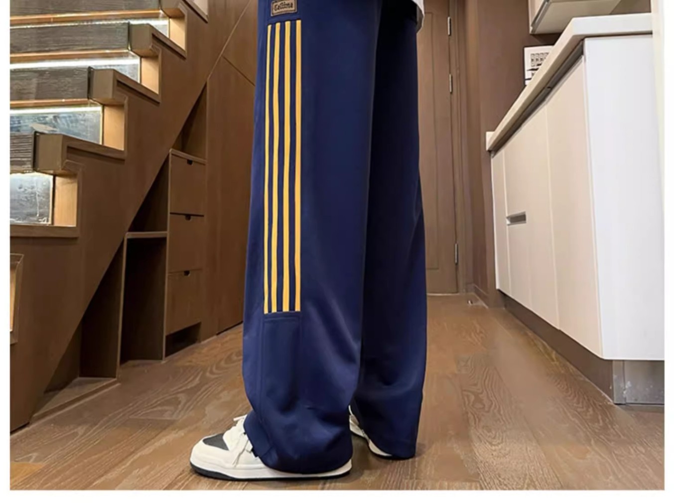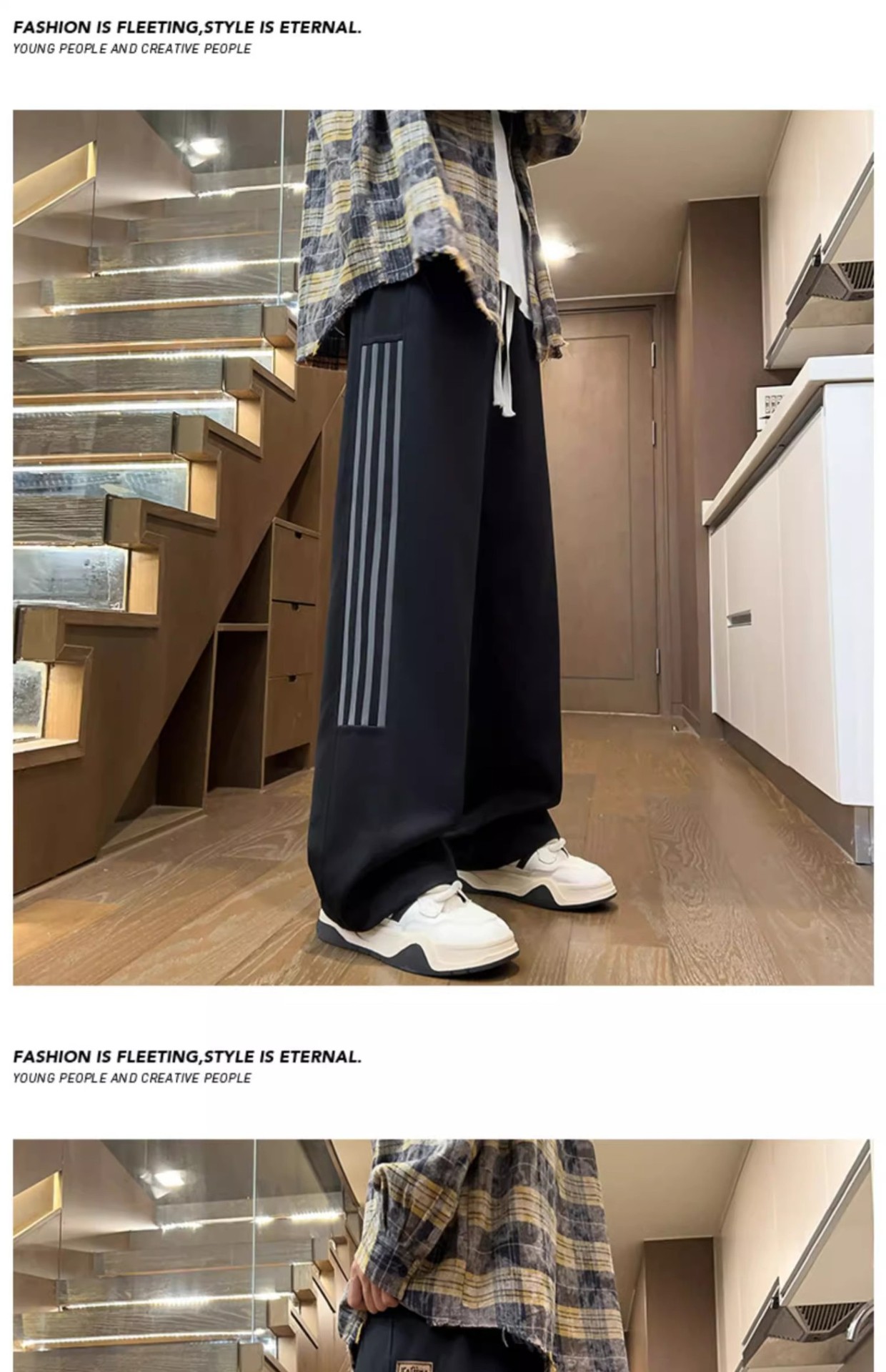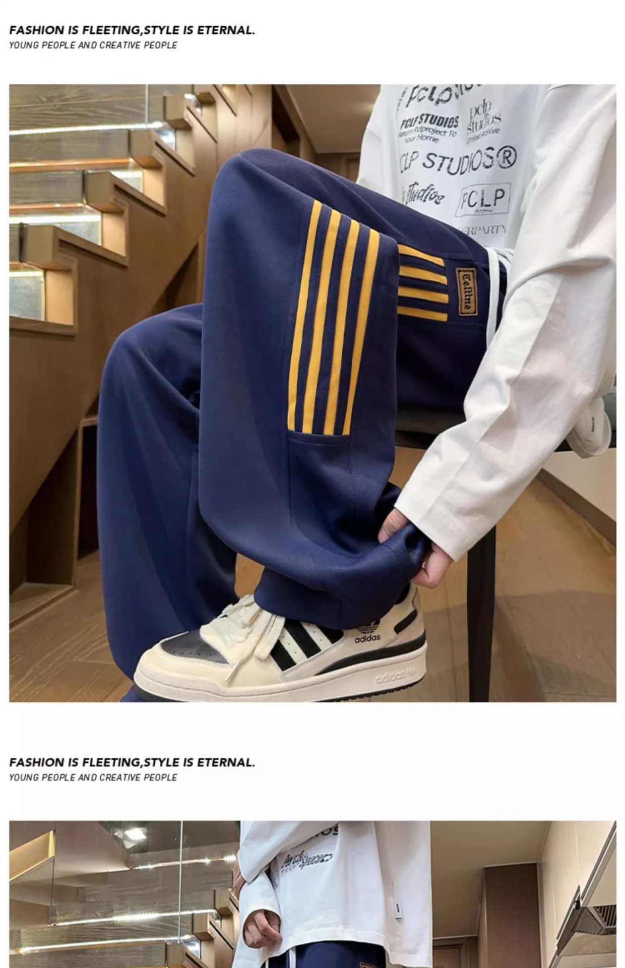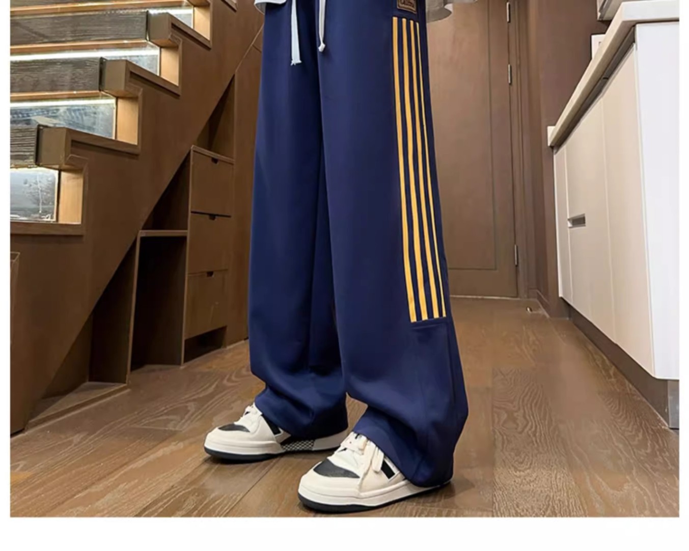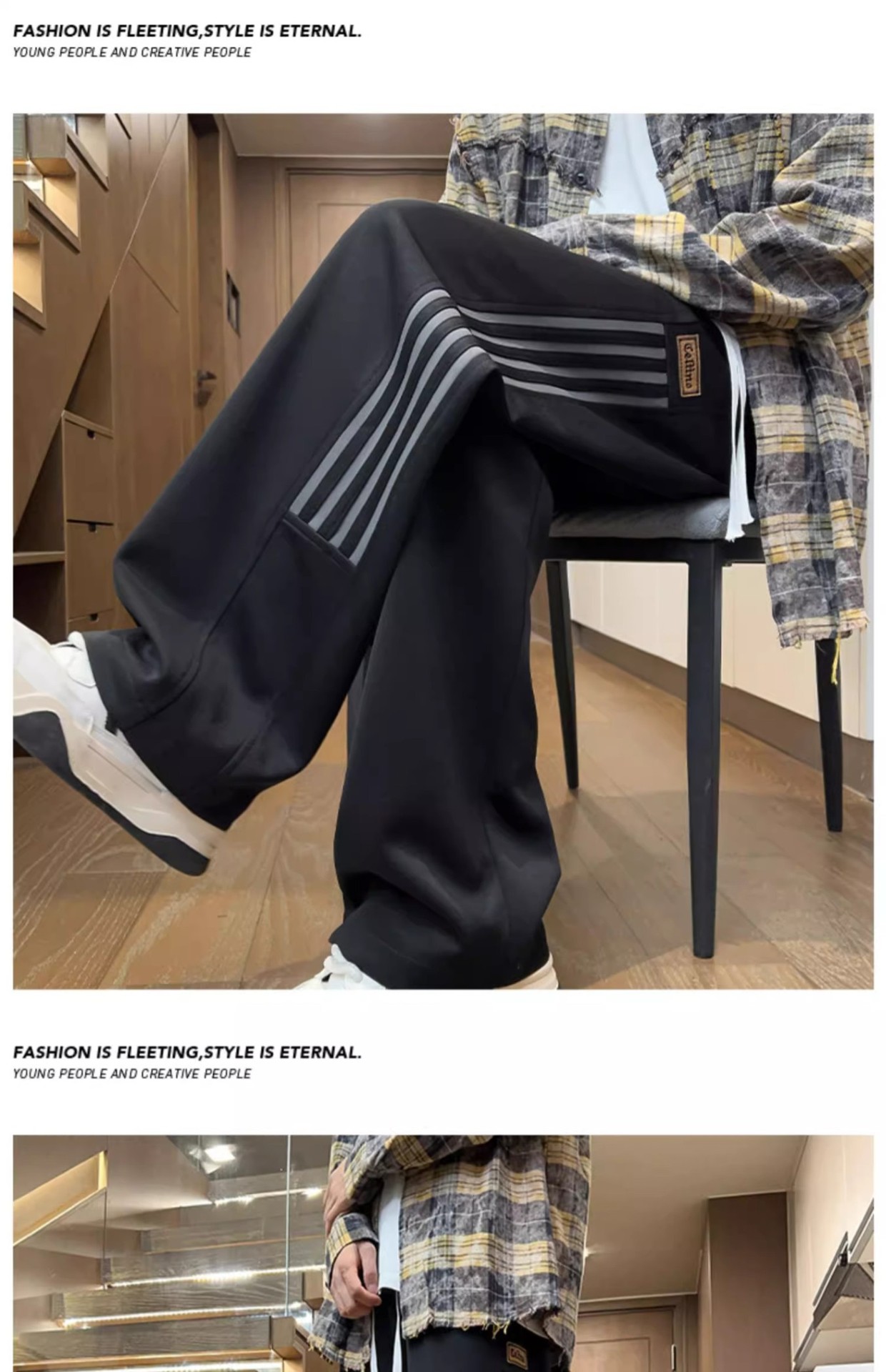 남성용 그레이 헤비웨이트 스포츠 팬츠, 봄, 가을 트렌디 브랜드 아메리칸 스리 스트라이프 캐주얼 팬츠, 루즈한 청소년 스트레이트 스웨트팬츠스토어 가기