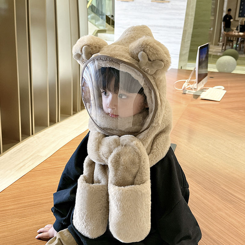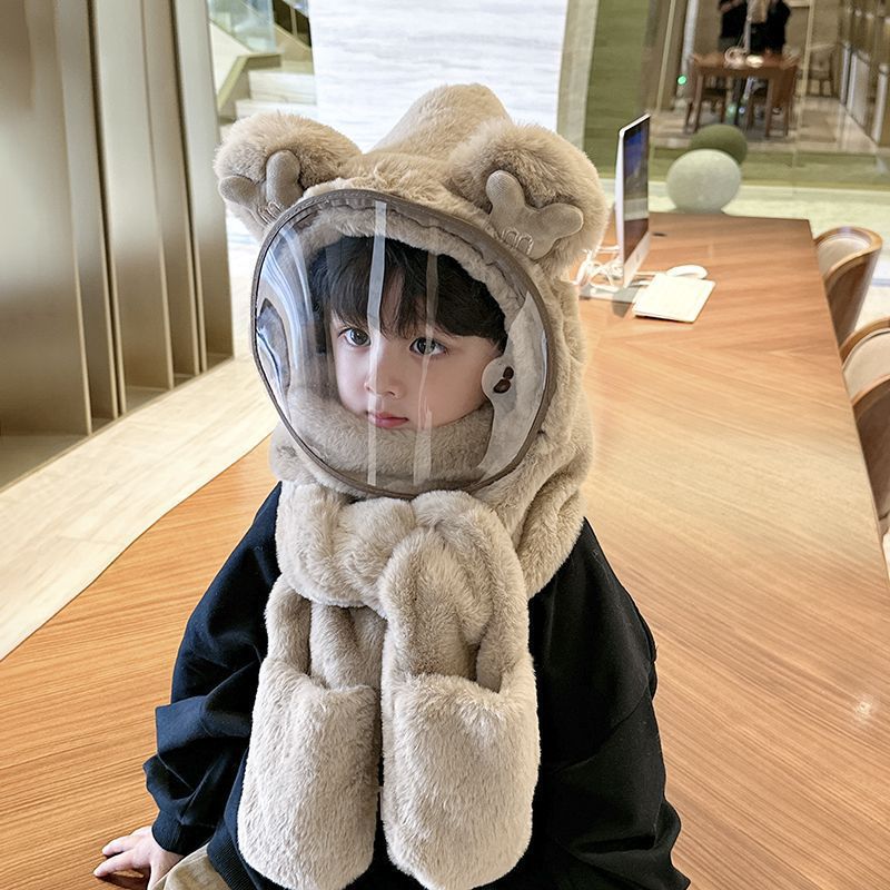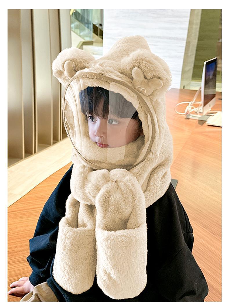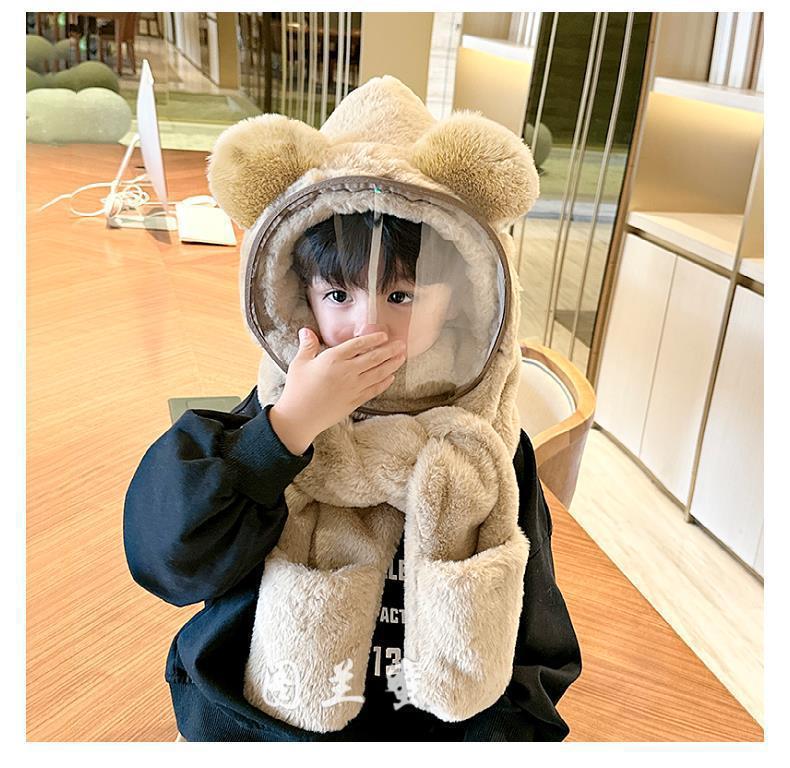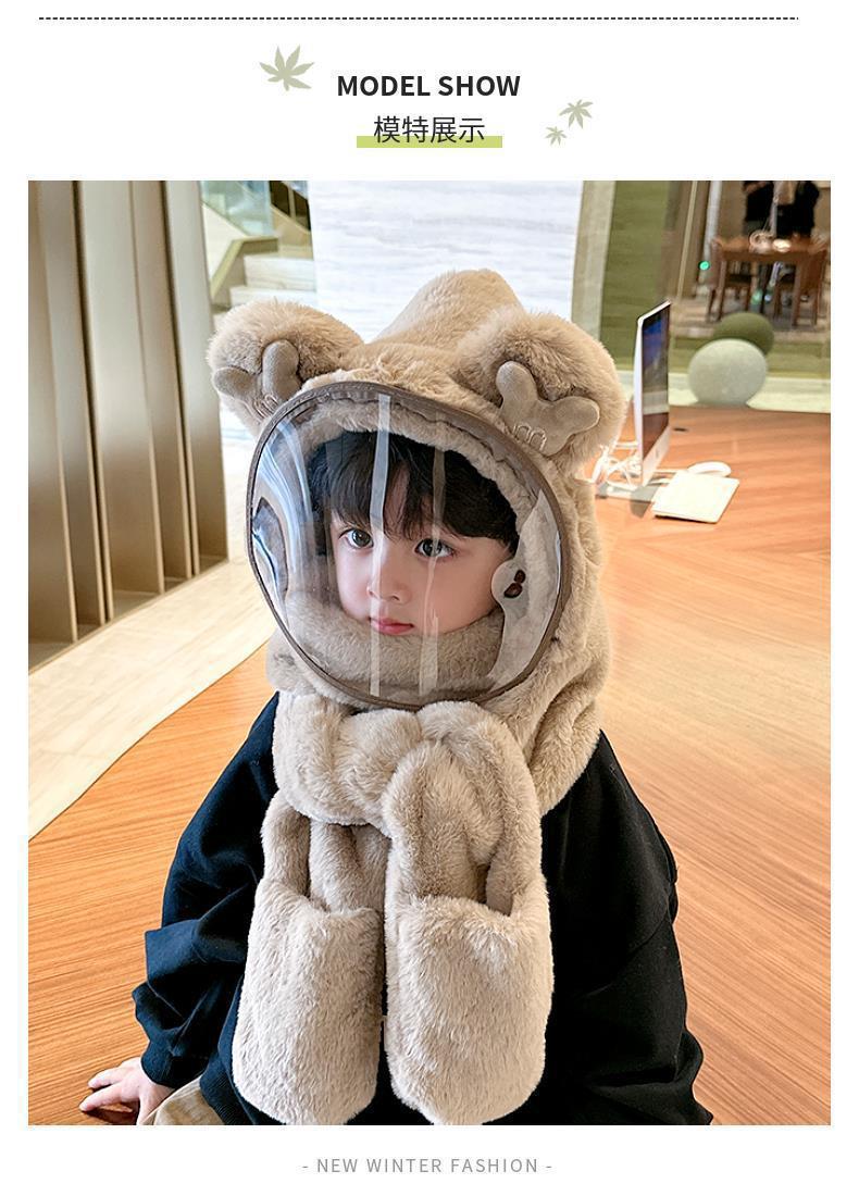 따뜻한 솜털 모자 소년 및 어린이 보호 마스크 어린이 스카프 장갑 통합 캡 방풍스토어 가기