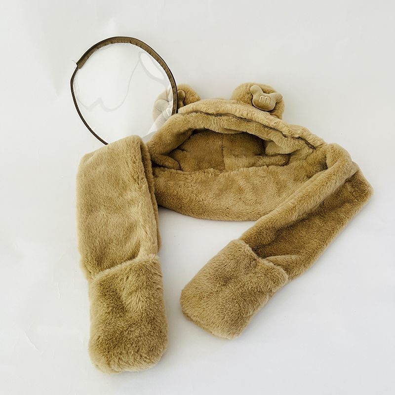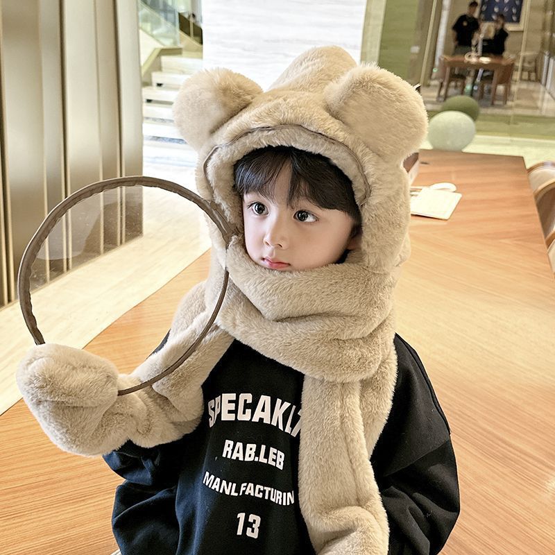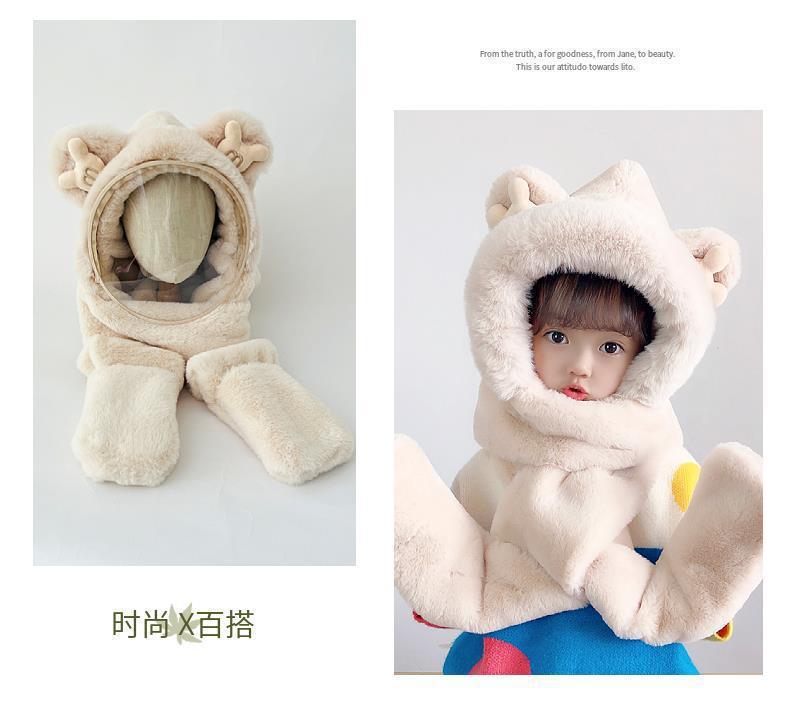 따뜻한 솜털 모자 소년 및 어린이 보호 마스크 어린이 스카프 장갑 통합 캡 방풍