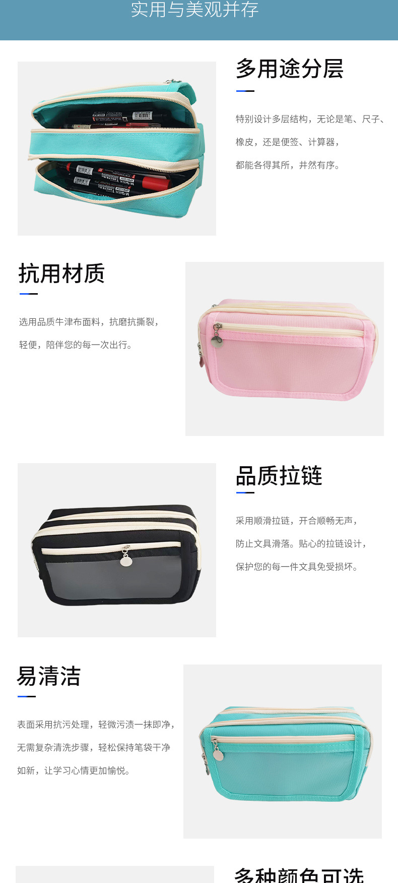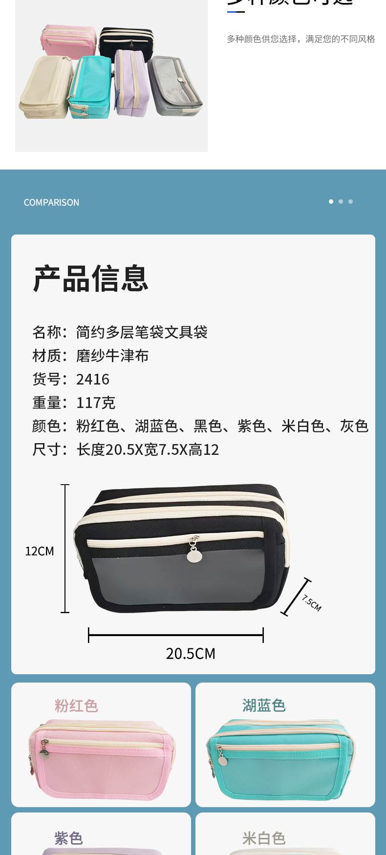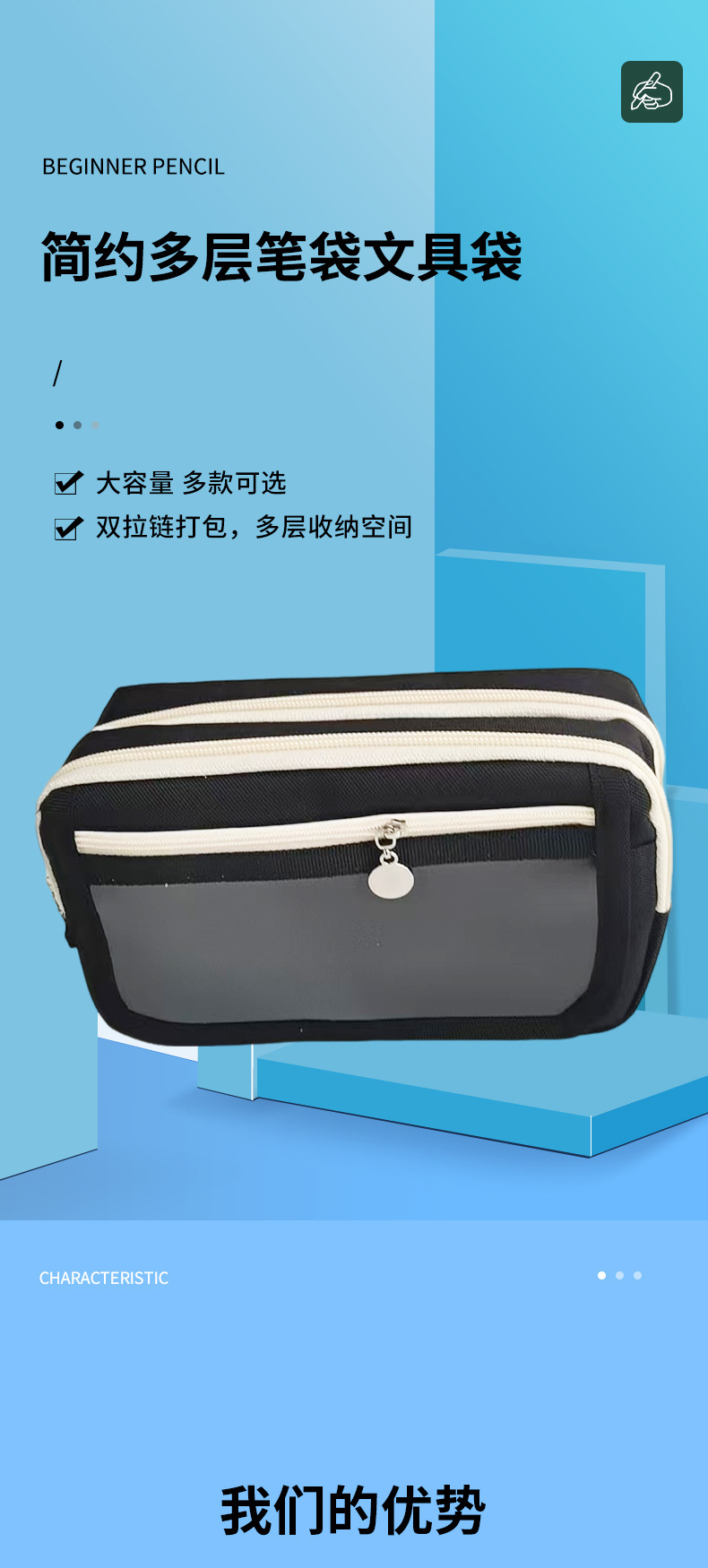 다층 연필 가방 문구 가방 학생 휴대용 수평 패턴 연필 가방 보관 문구 연필 상자