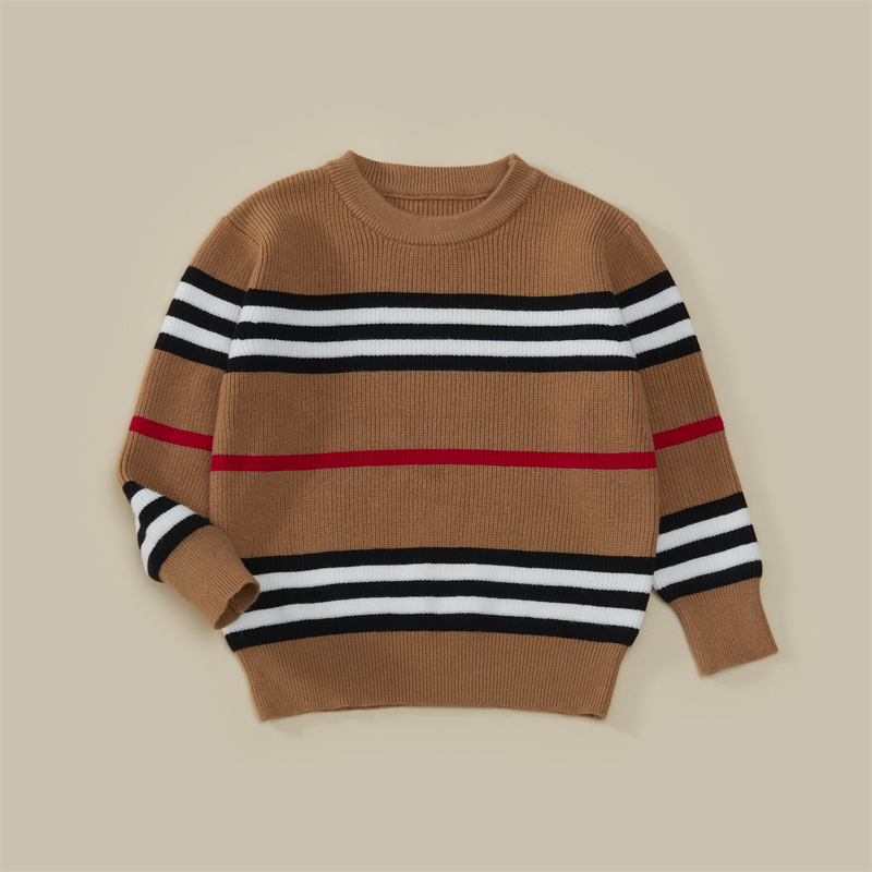 새로운 삼색 줄무늬 트렌디 한 스웨터 크루 넥 풀오버 한국식 카키 탑