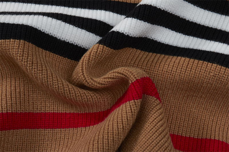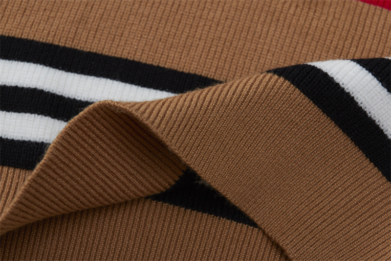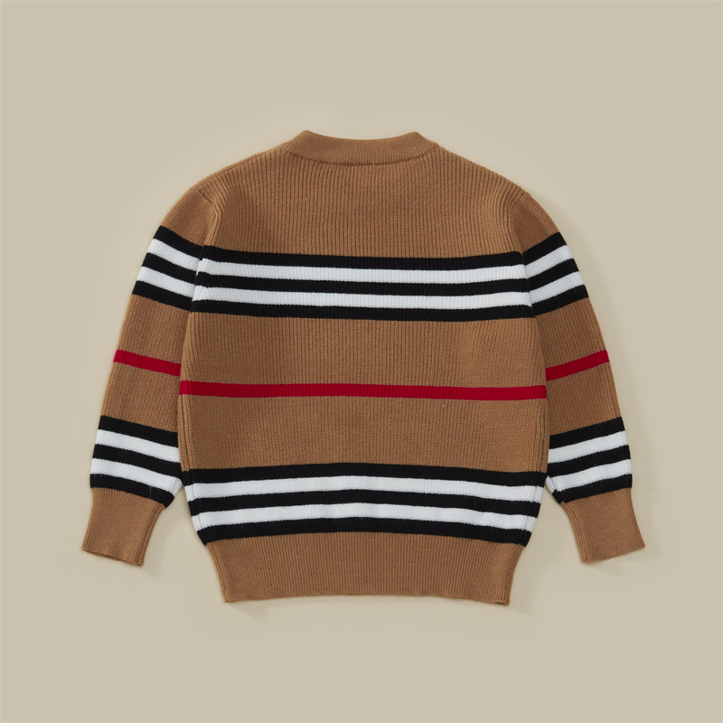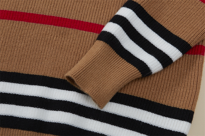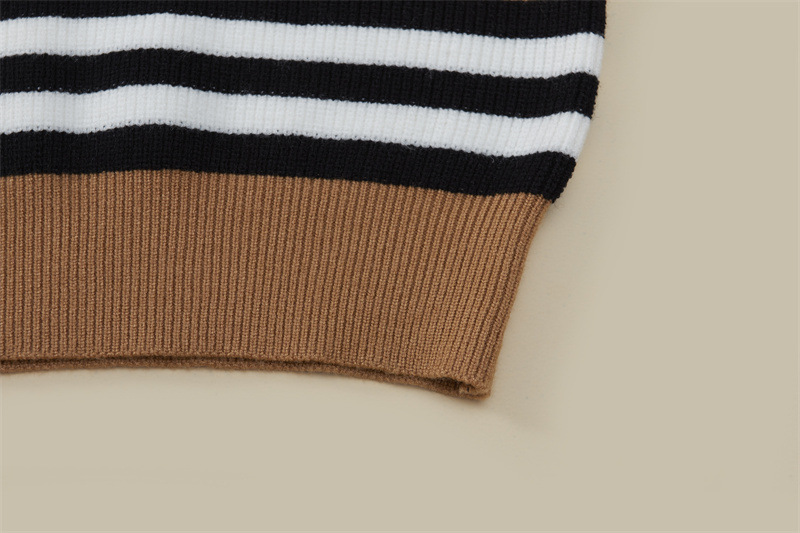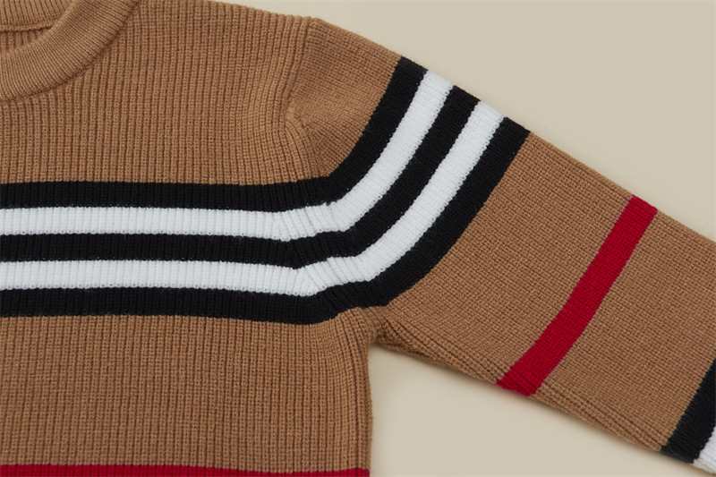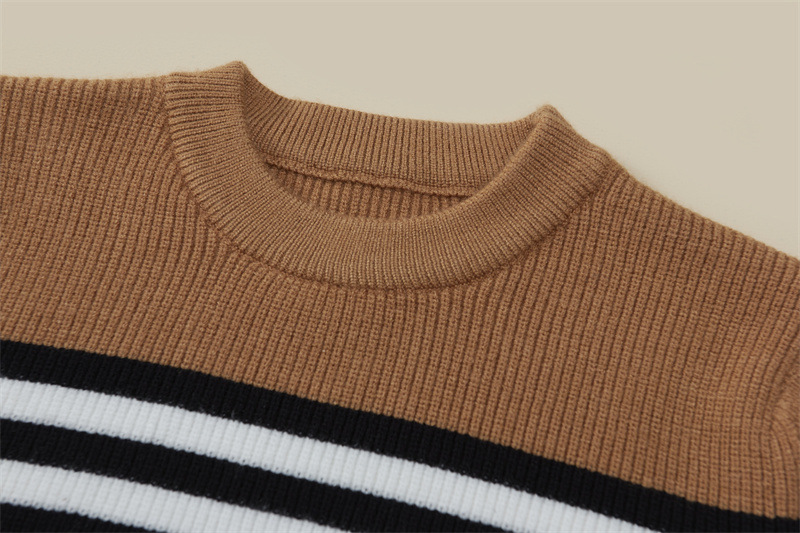 새로운 삼색 줄무늬 트렌디 한 스웨터 크루 넥 풀오버 한국식 카키 탑스토어 가기