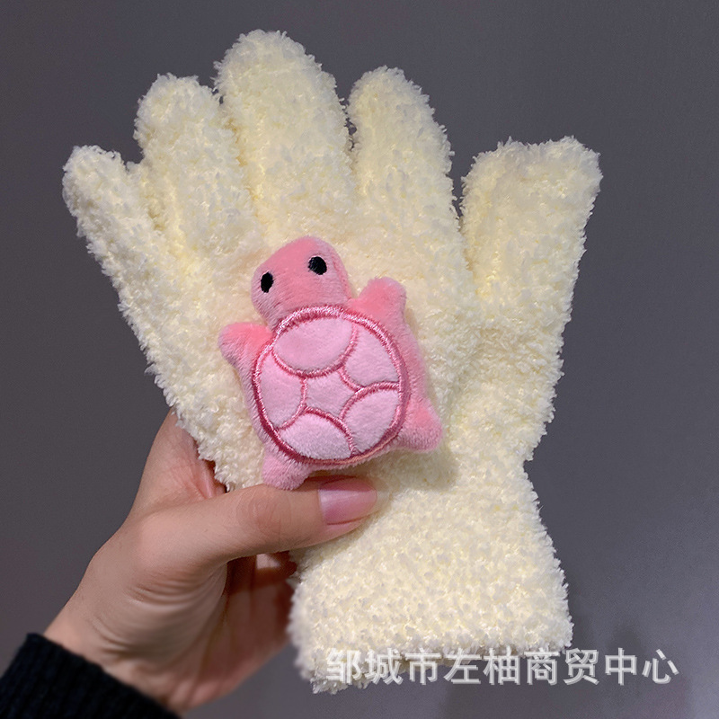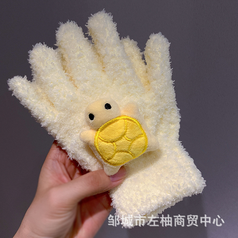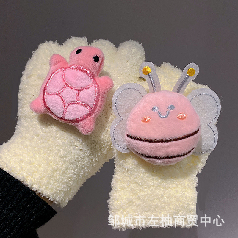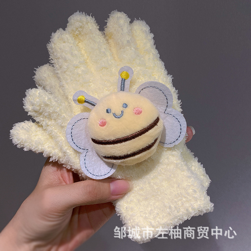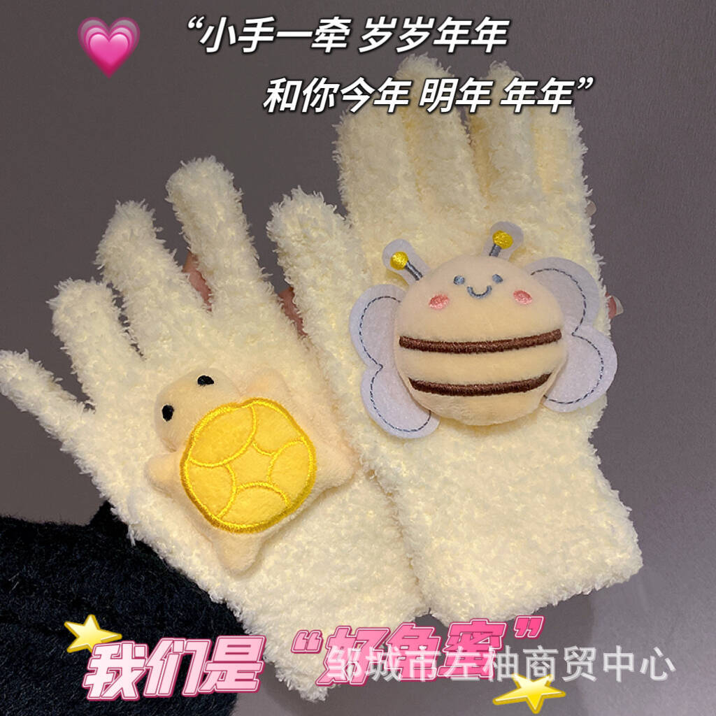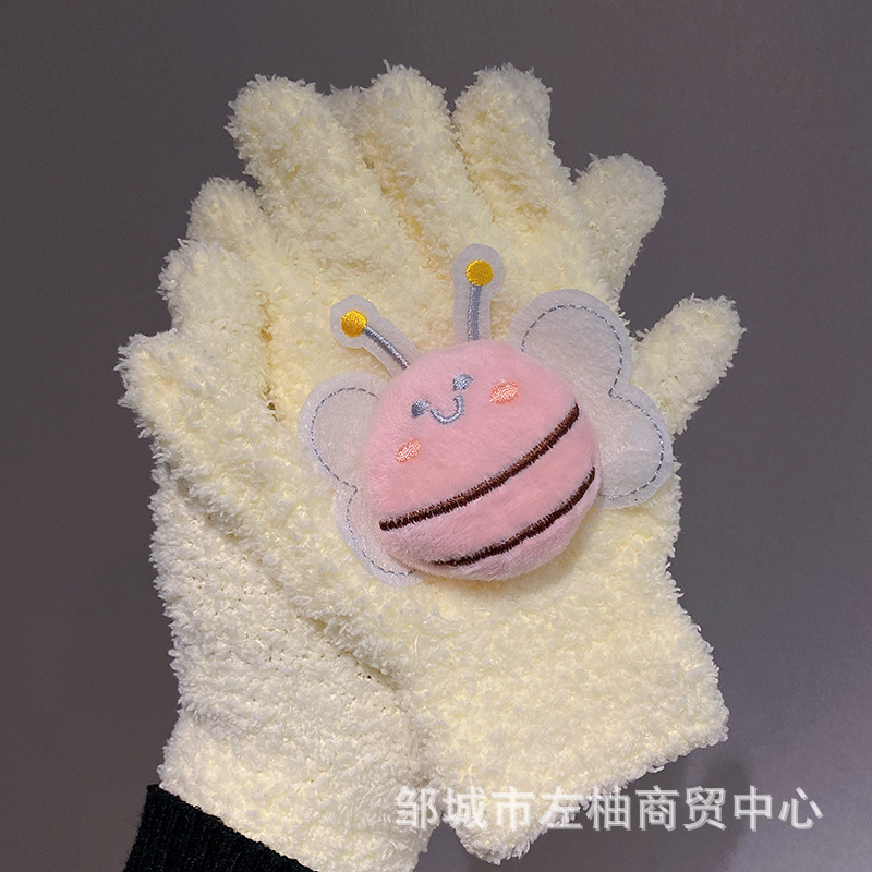 새로운 귀여운 꿀벌 봉제 벨벳 장갑 산호 벨벳 학생 승마 손가락 장갑 여성의 겨울 따뜻한 감기