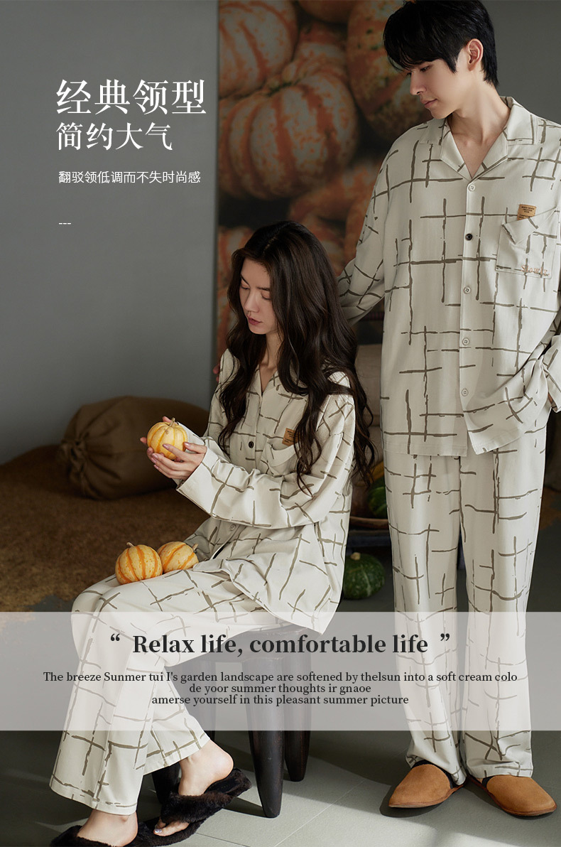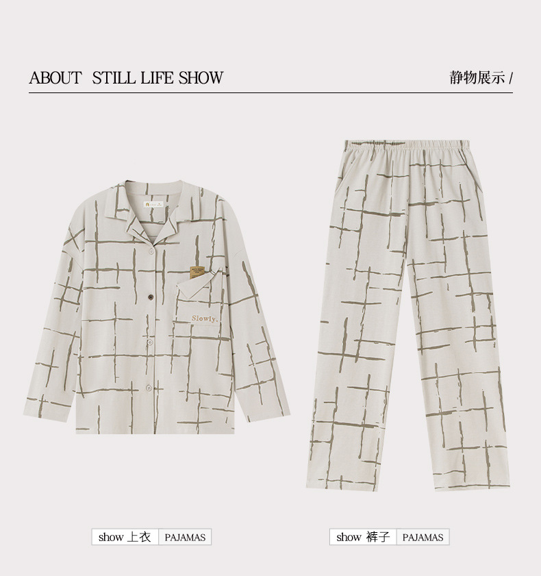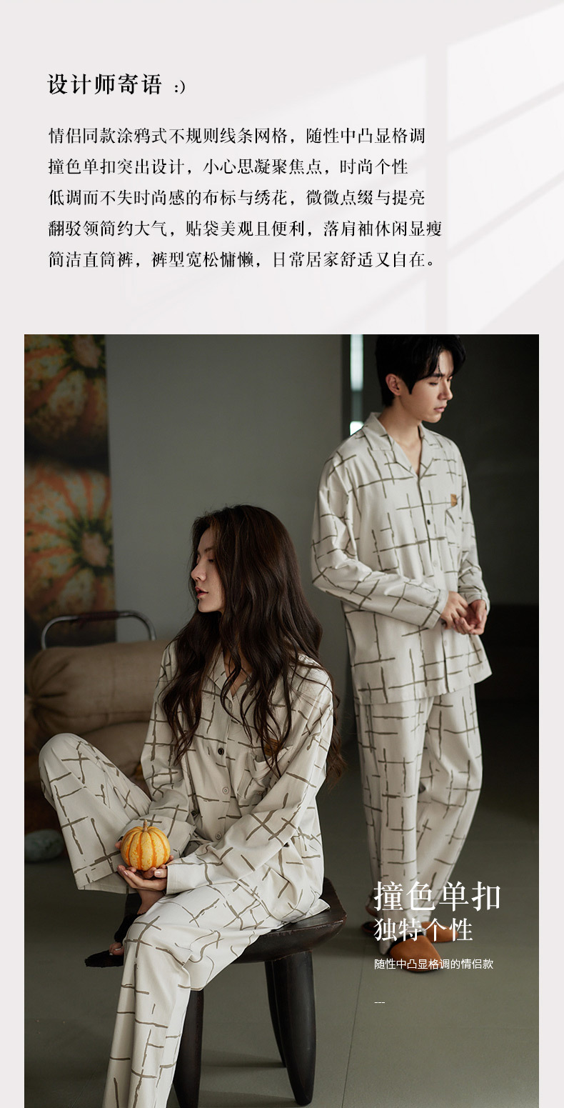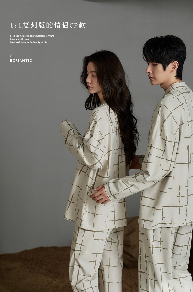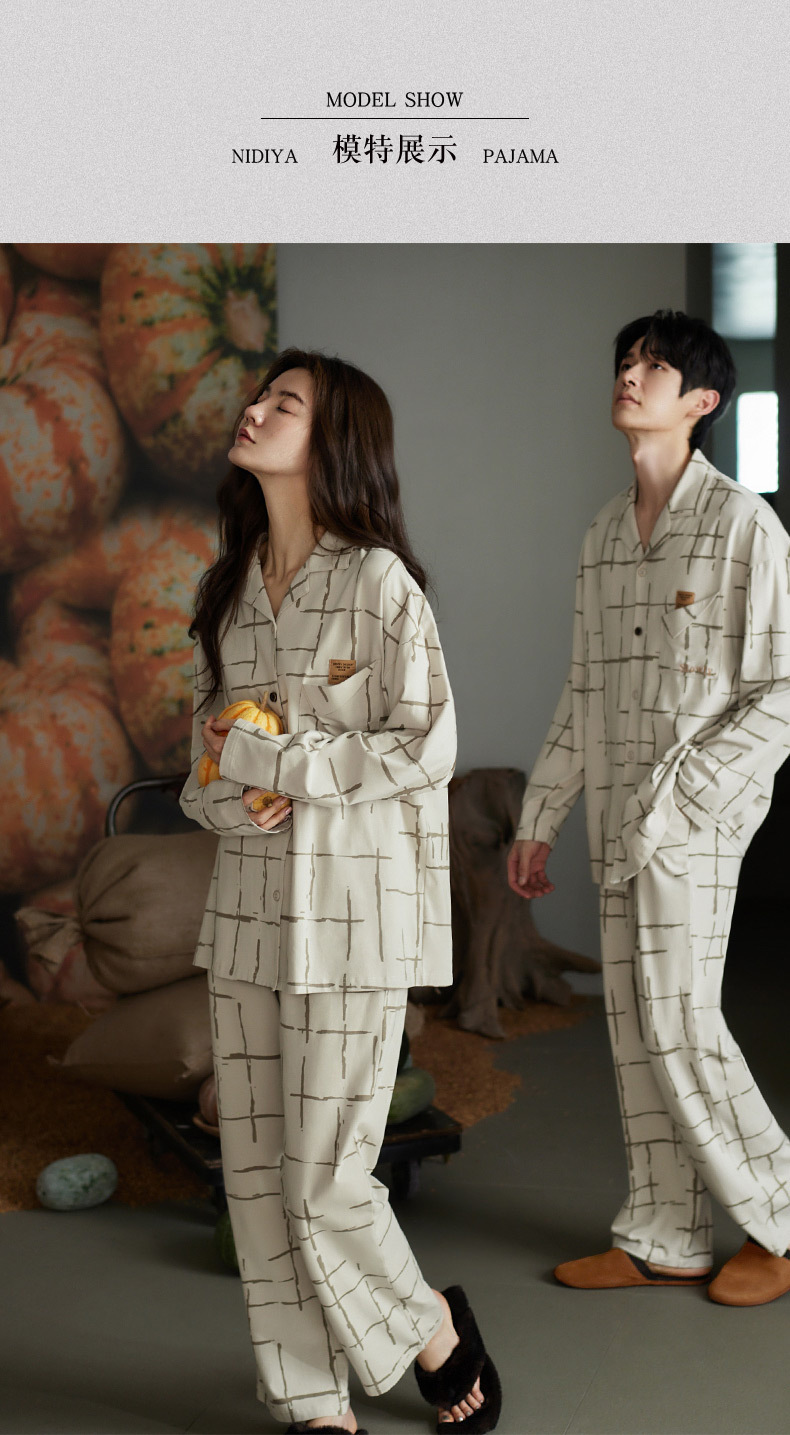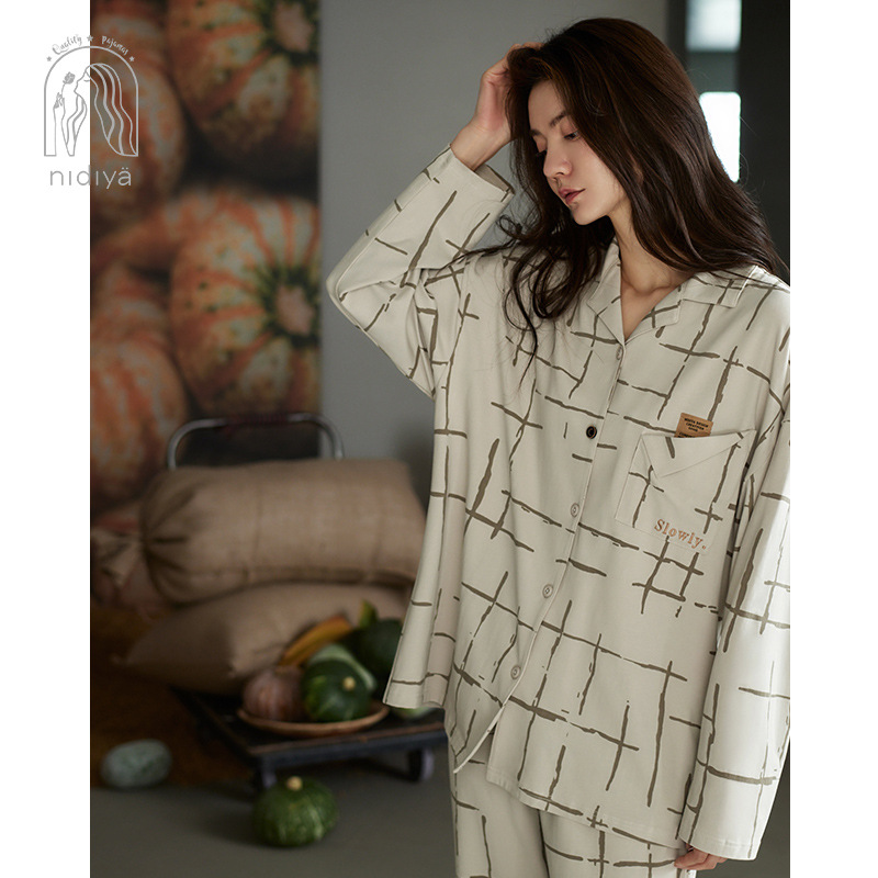 나디아 가을 커플 잠옷 여성의 부드러운 면 긴 소매 옷깃 남성 카디건 간단한 봄과 가을 홈 의류 세트스토어 가기
