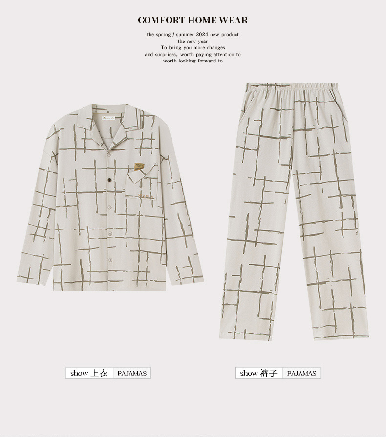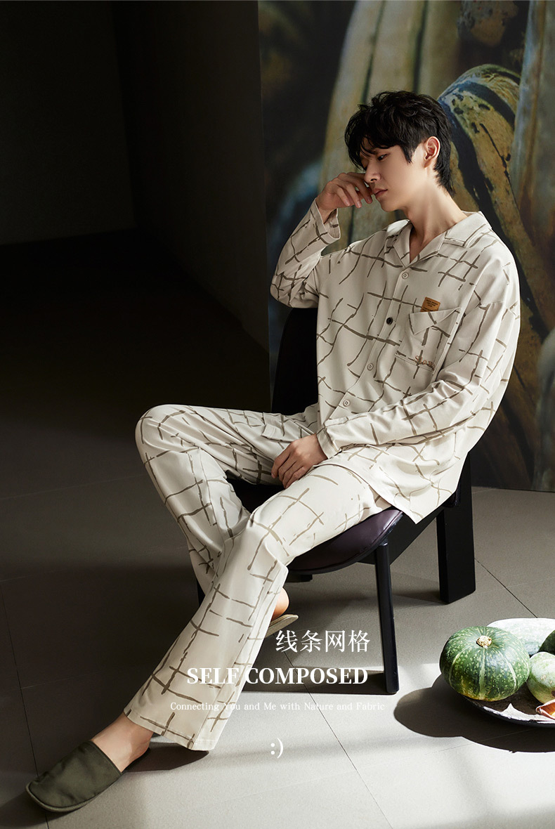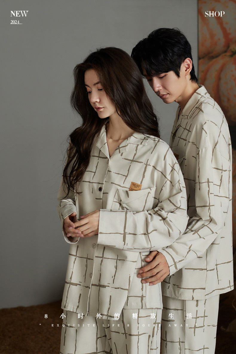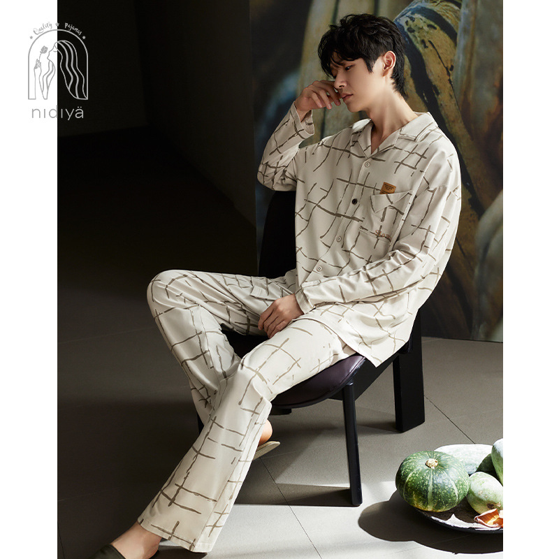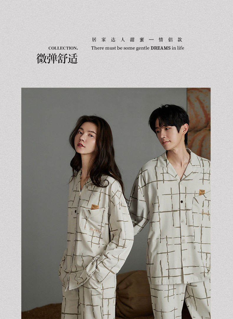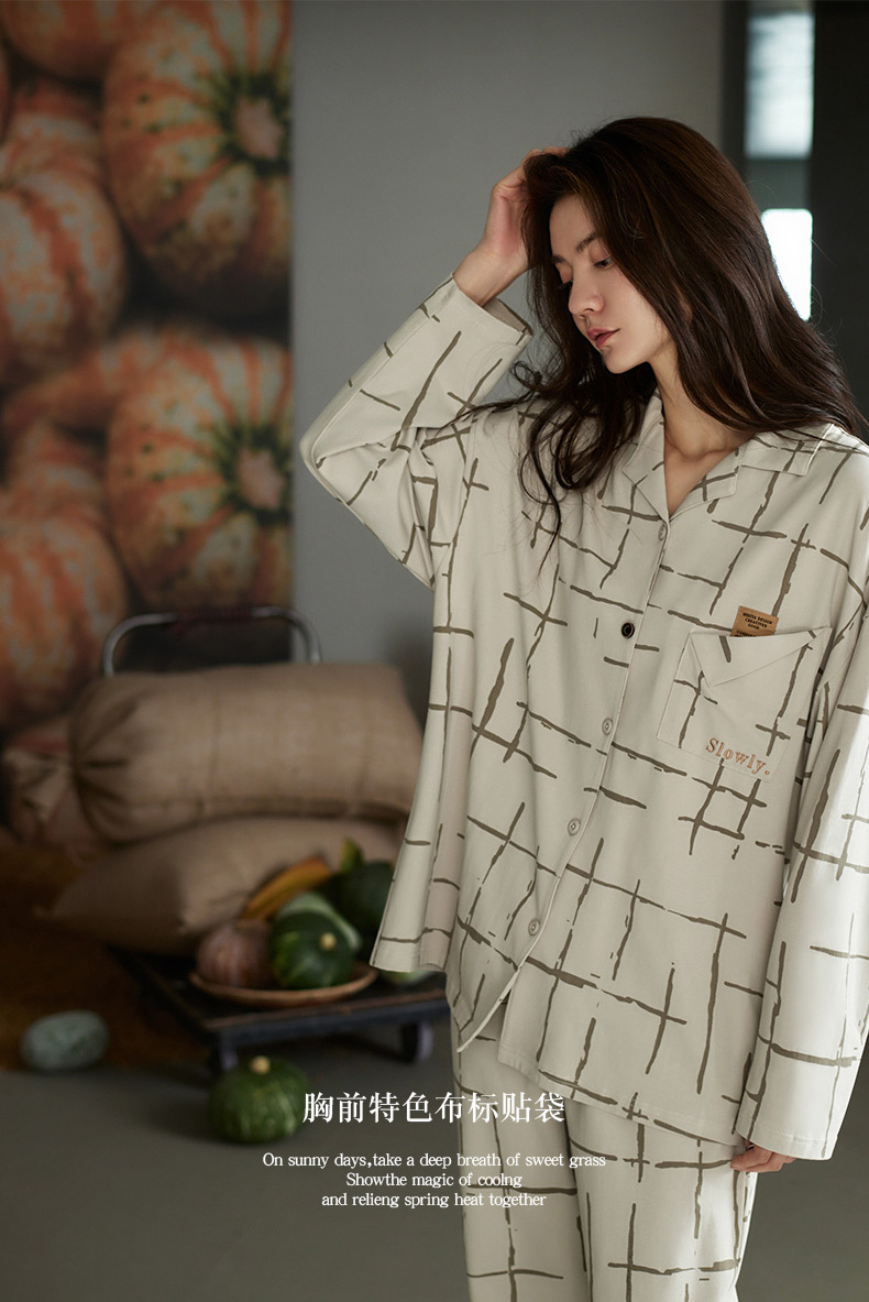 나디아 가을 커플 잠옷 여성의 부드러운 면 긴 소매 옷깃 남성 카디건 간단한 봄과 가을 홈 의류 세트스토어 가기