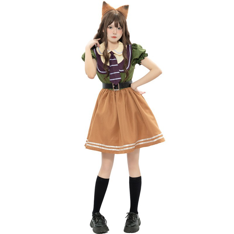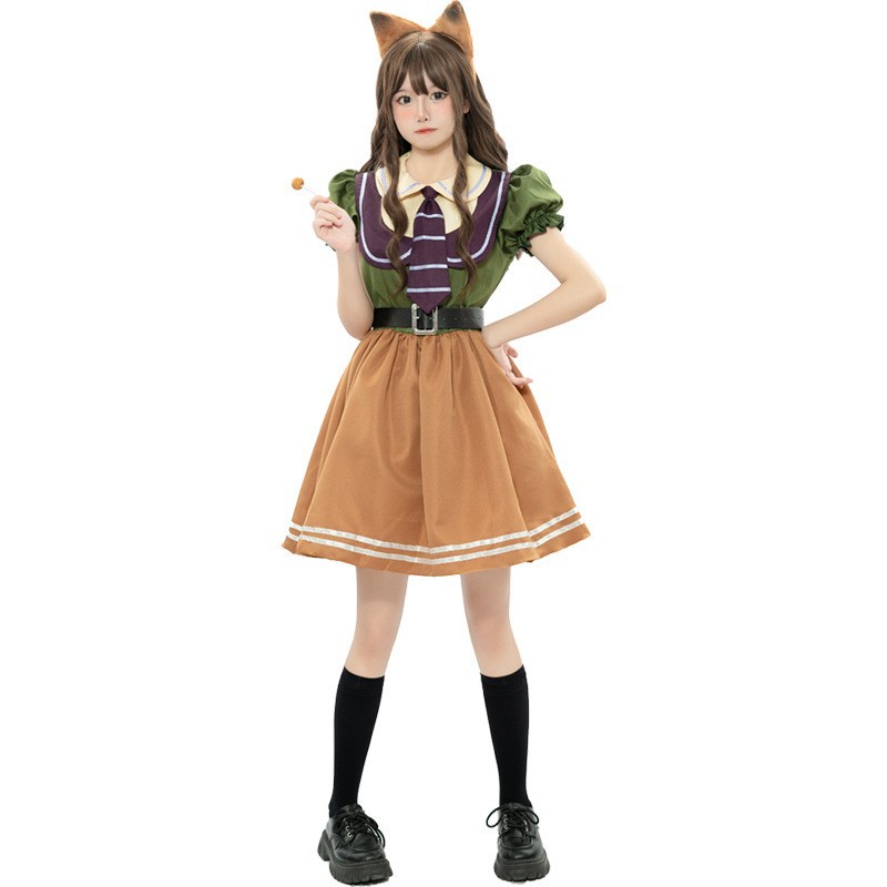 尼克裙配件:发箍+连衣裙+领带+尾巴+皮带