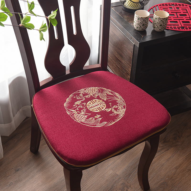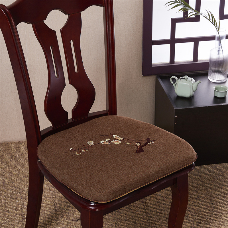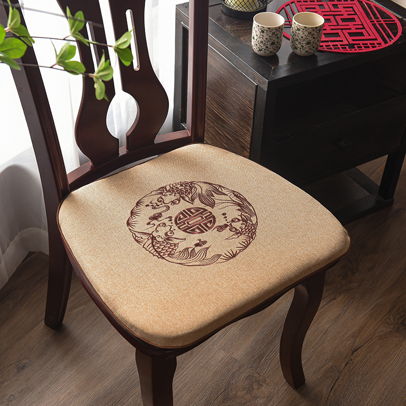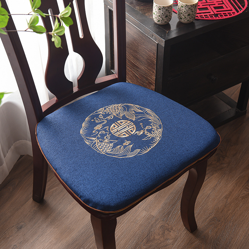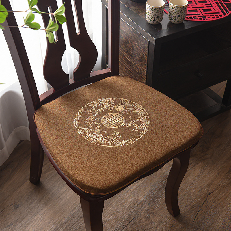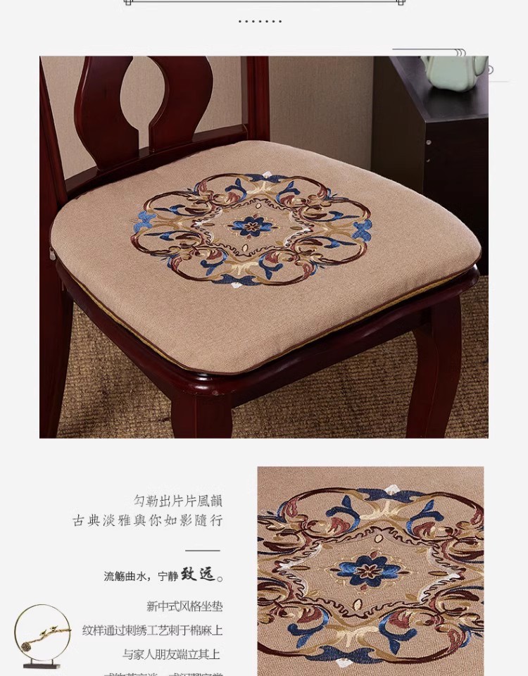 중국 자수 다이닝 의자 쿠션 미끄럼 방지 의자 쿠션 솔리드 우드 두꺼운 코튼 및 리넨 의자 쿠션, 이동식 및 세척 가능한 스트랩스토어 가기