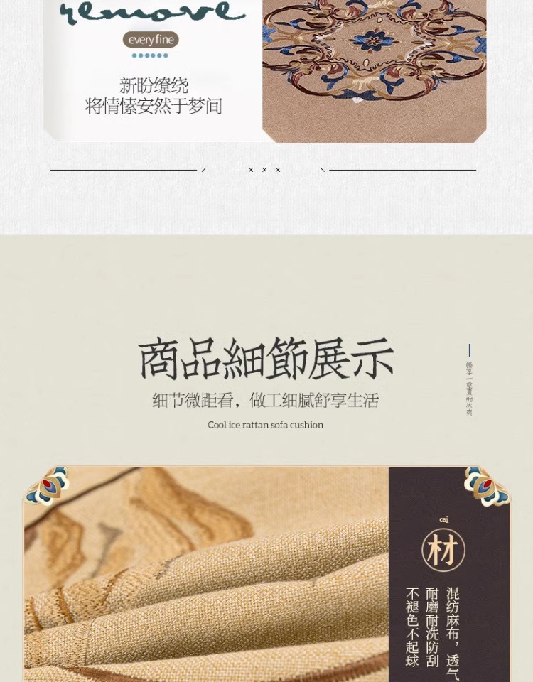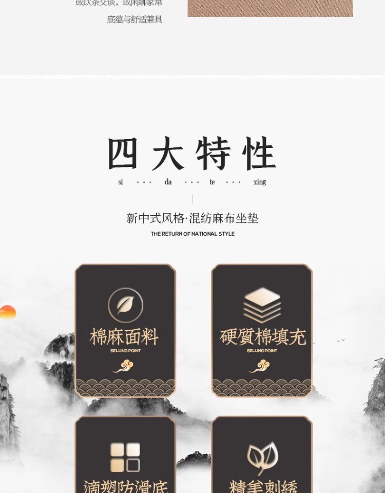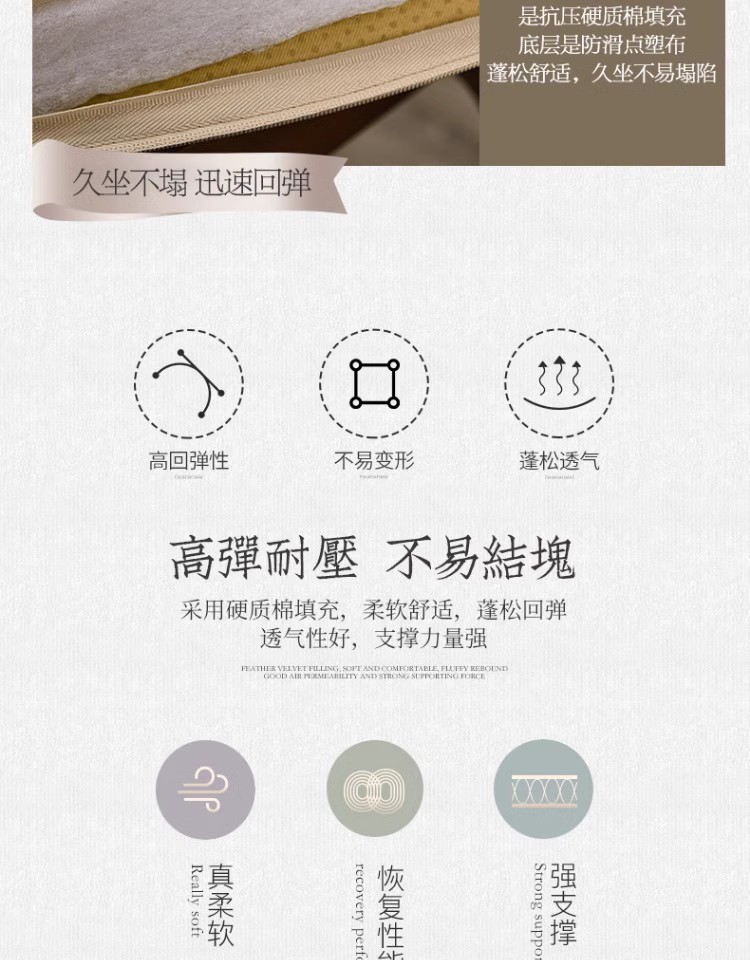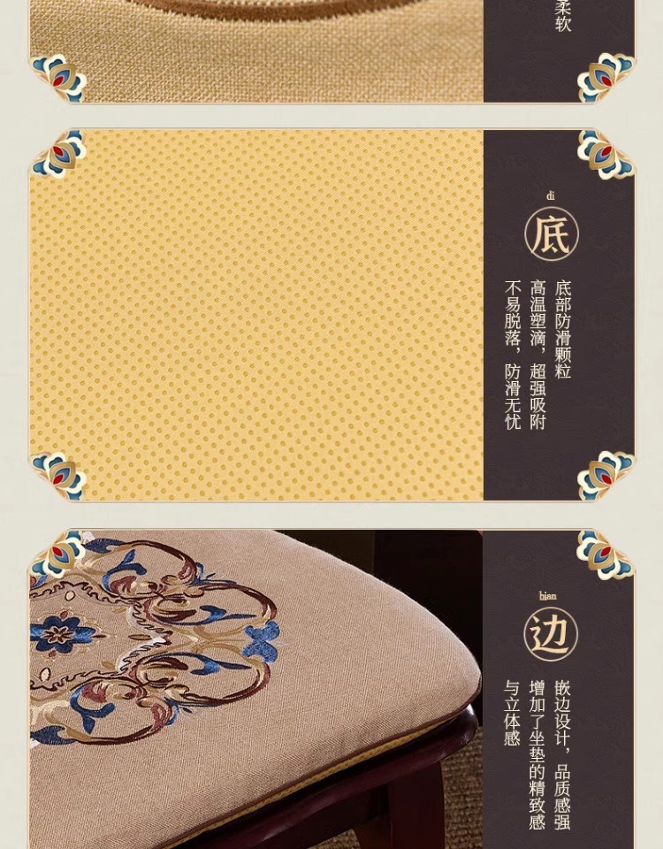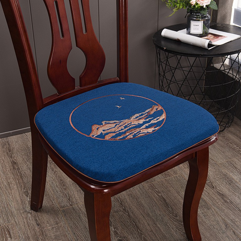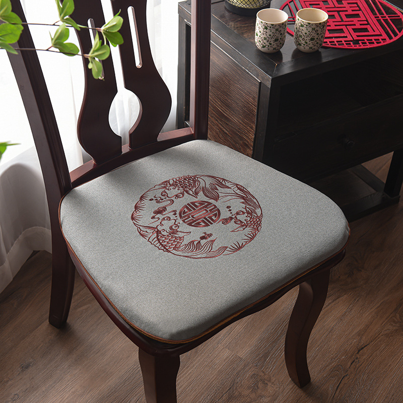 중국 자수 다이닝 의자 쿠션 미끄럼 방지 의자 쿠션 솔리드 우드 두꺼운 코튼 및 리넨 의자 쿠션, 이동식 및 세척 가능한 스트랩스토어 가기