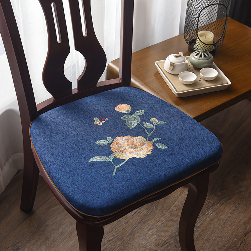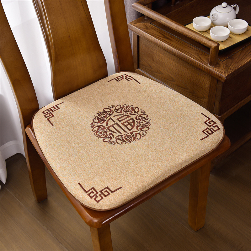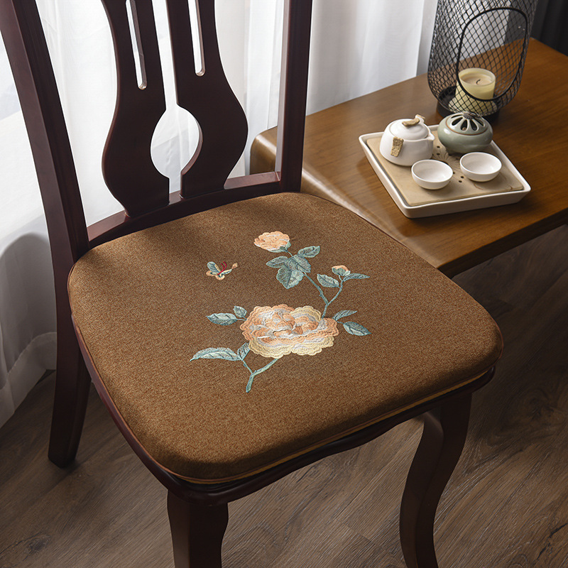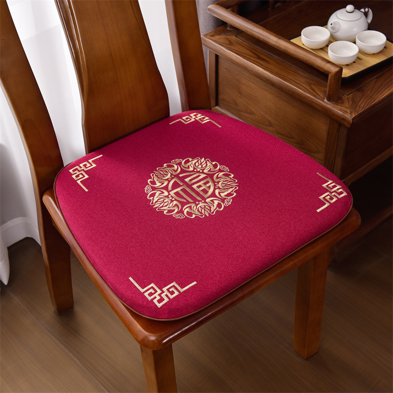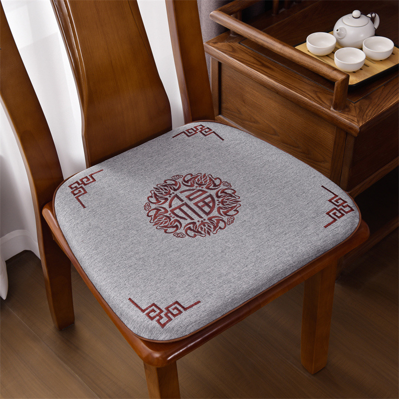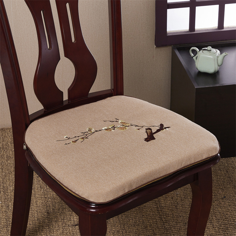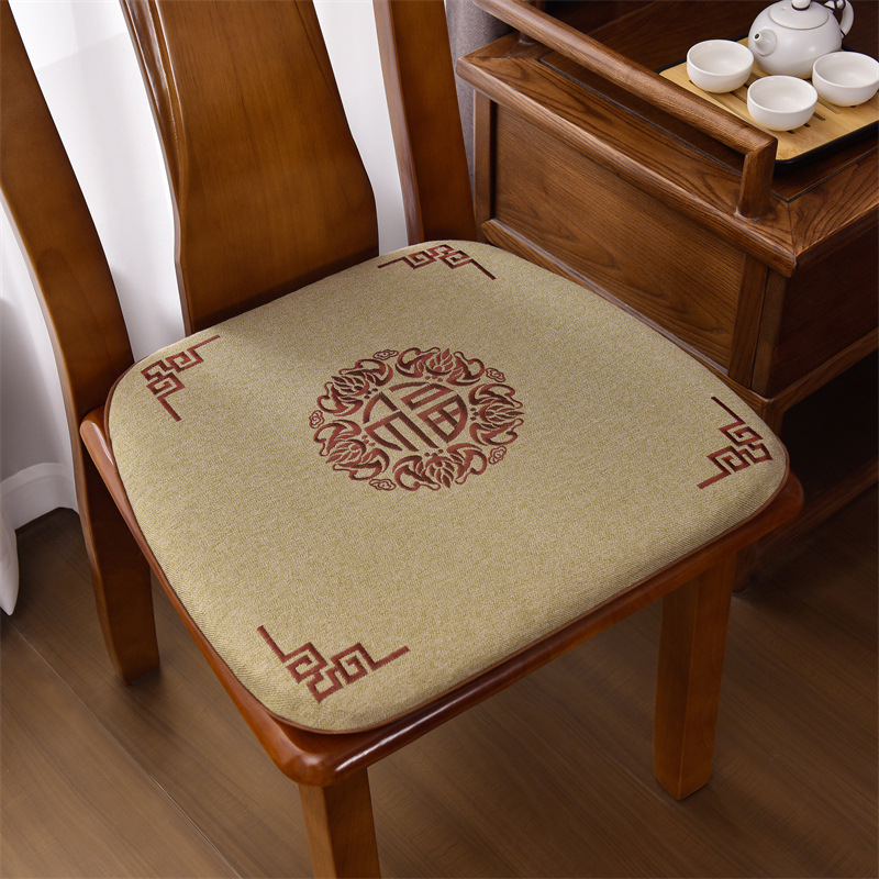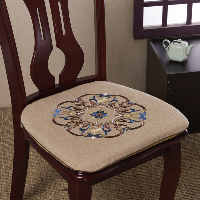 중국 자수 다이닝 의자 쿠션 미끄럼 방지 의자 쿠션 솔리드 우드 두꺼운 코튼 및 리넨 의자 쿠션, 이동식 및 세척 가능한 스트랩