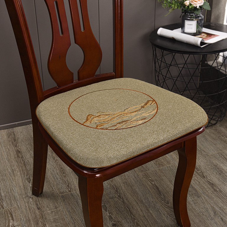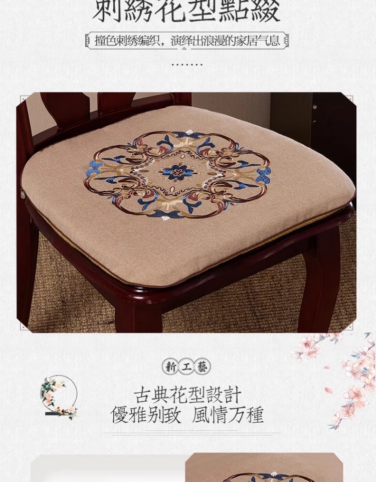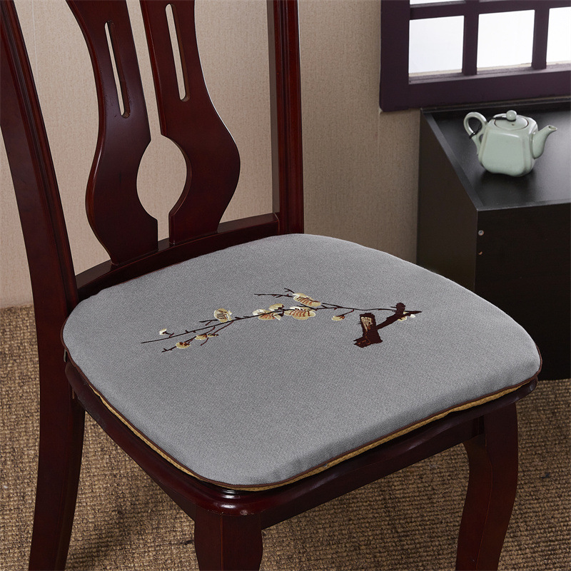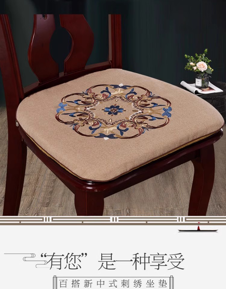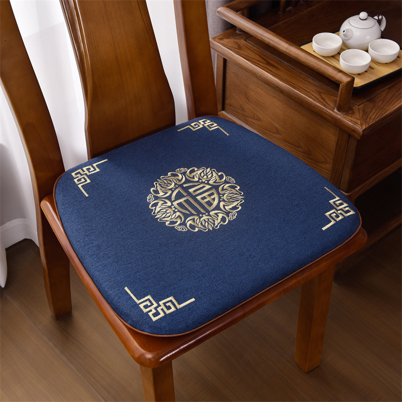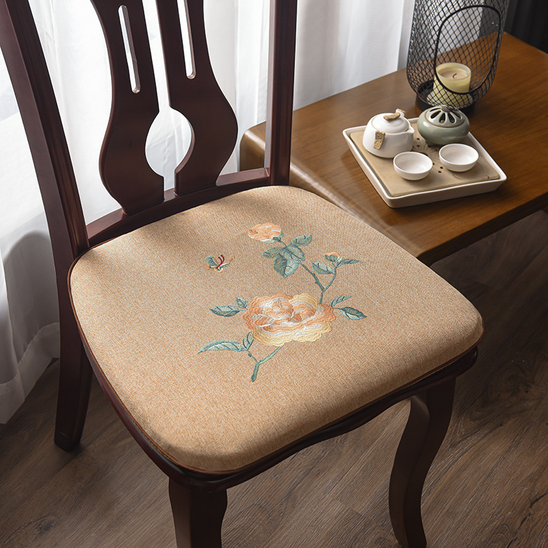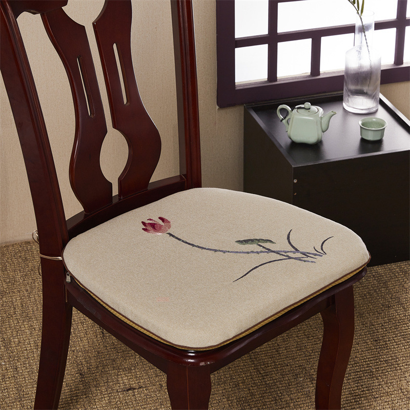 중국 자수 다이닝 의자 쿠션 미끄럼 방지 의자 쿠션 솔리드 우드 두꺼운 코튼 및 리넨 의자 쿠션, 이동식 및 세척 가능한 스트랩