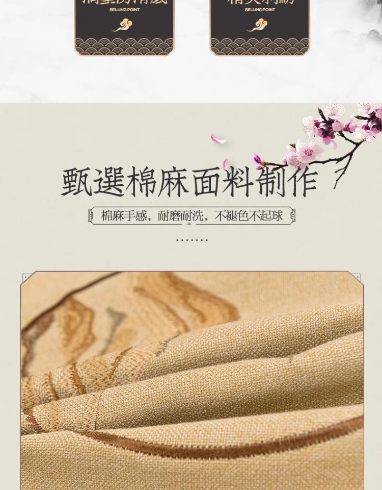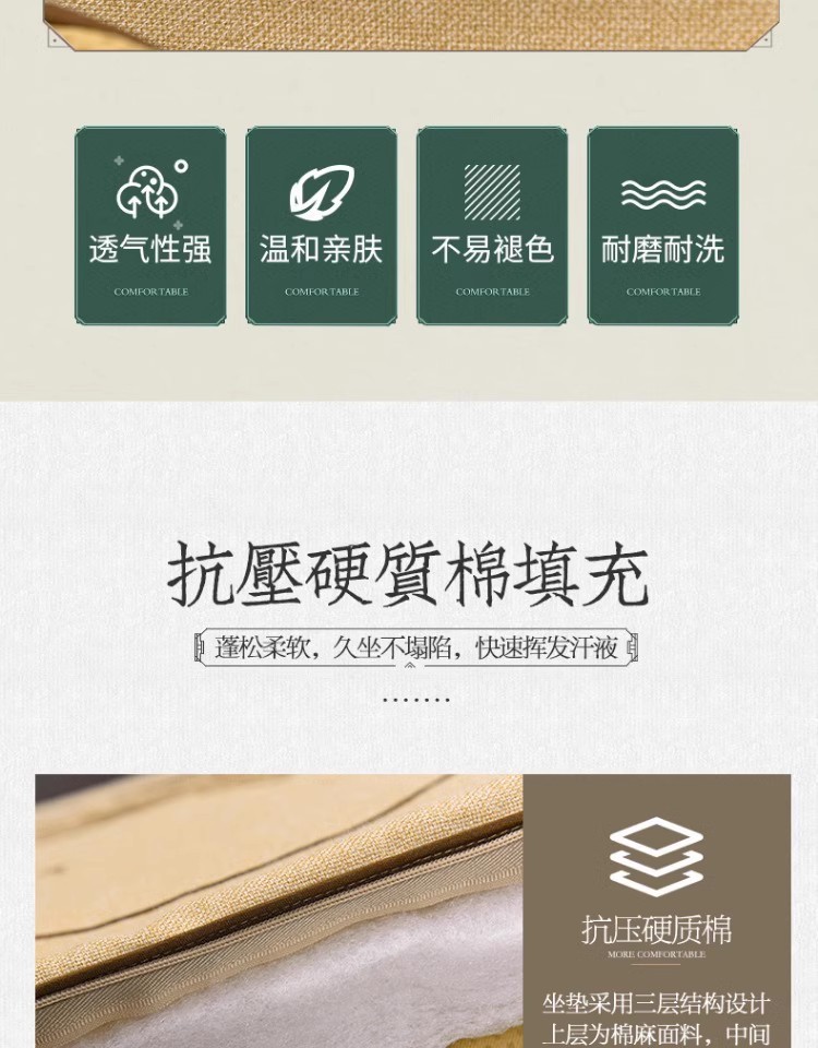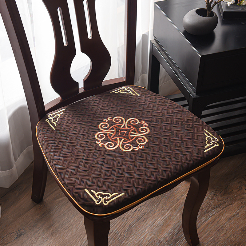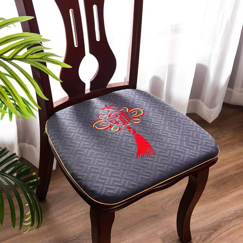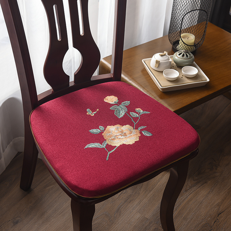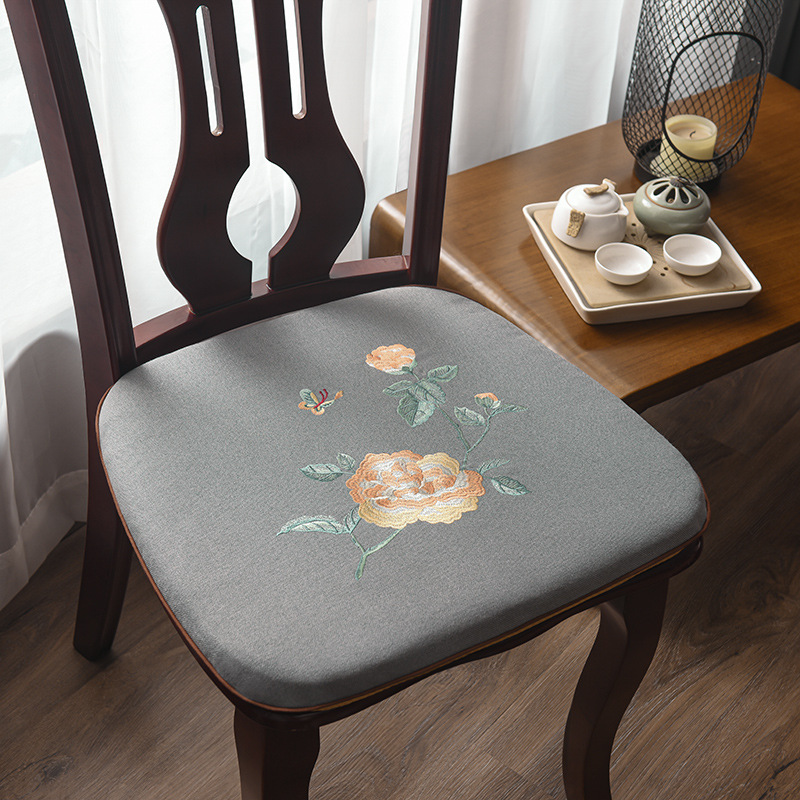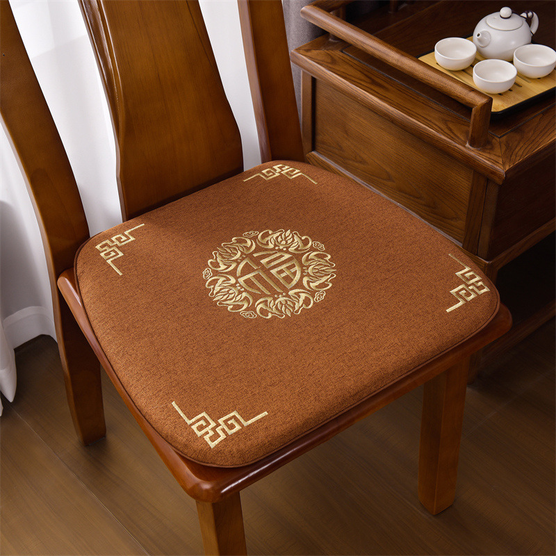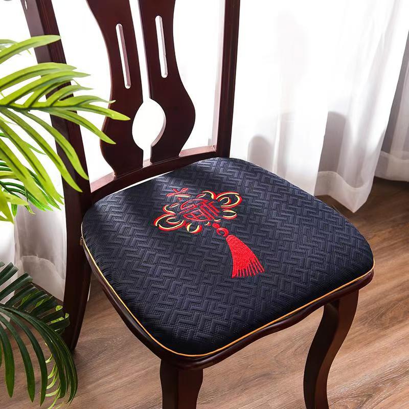 중국 자수 다이닝 의자 쿠션 미끄럼 방지 의자 쿠션 솔리드 우드 두꺼운 코튼 및 리넨 의자 쿠션, 이동식 및 세척 가능한 스트랩