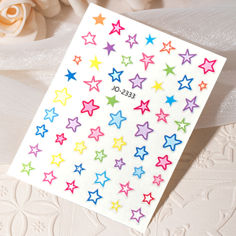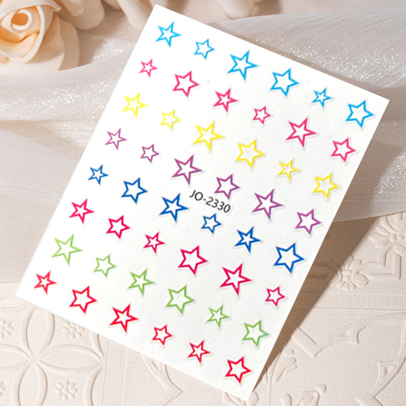 레드 레드 북 폭발 컬러 스타 네일 아트 스티커 도매 레드 블루 파이브 스타 러브 접착 네일 데칼