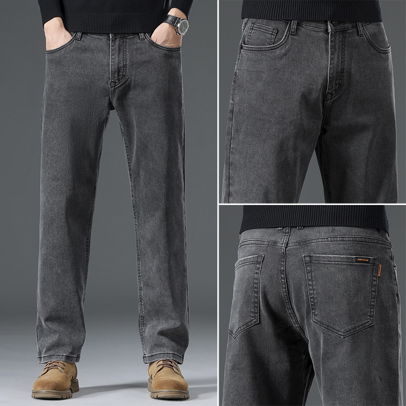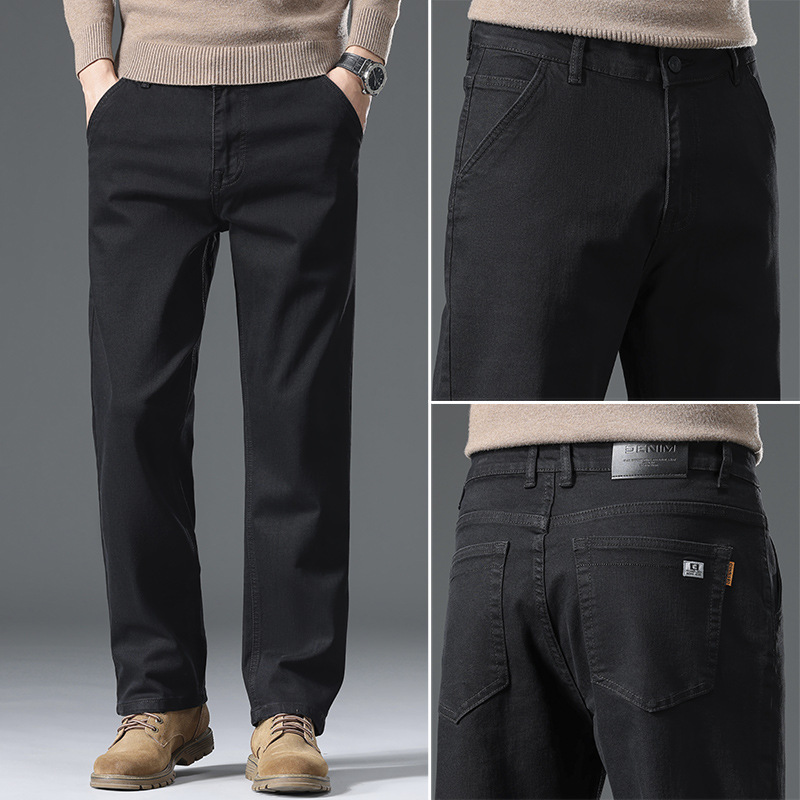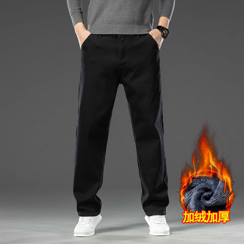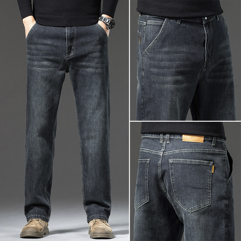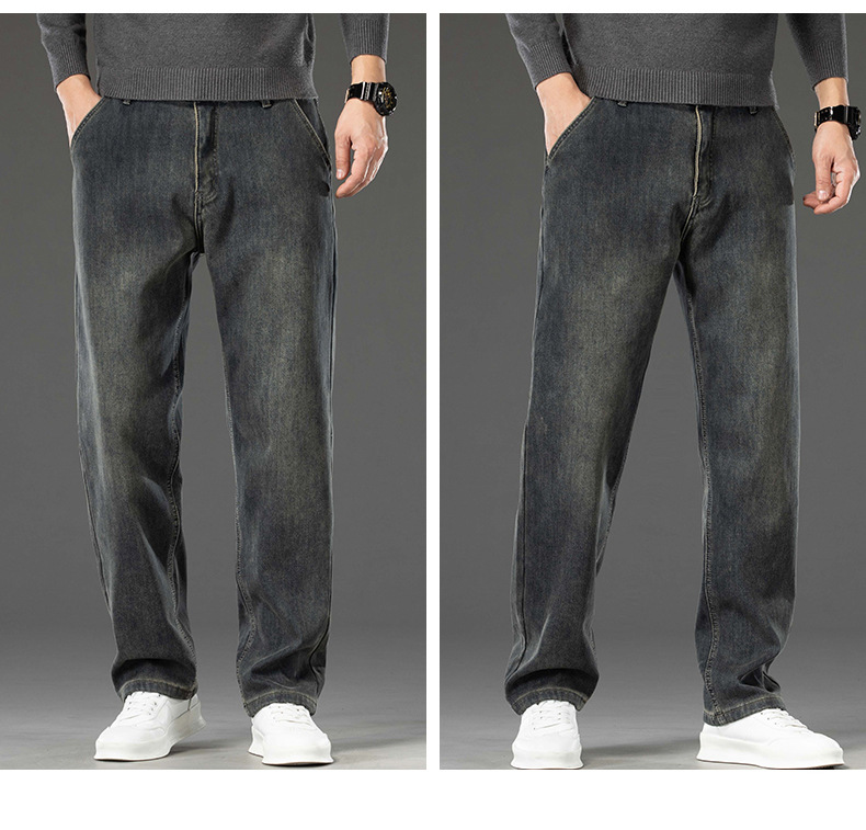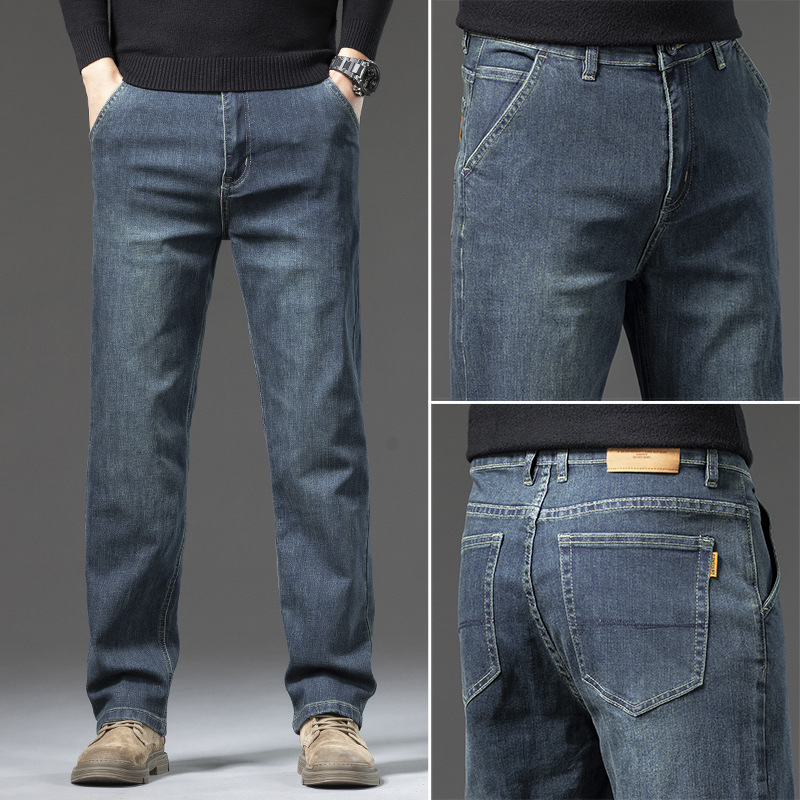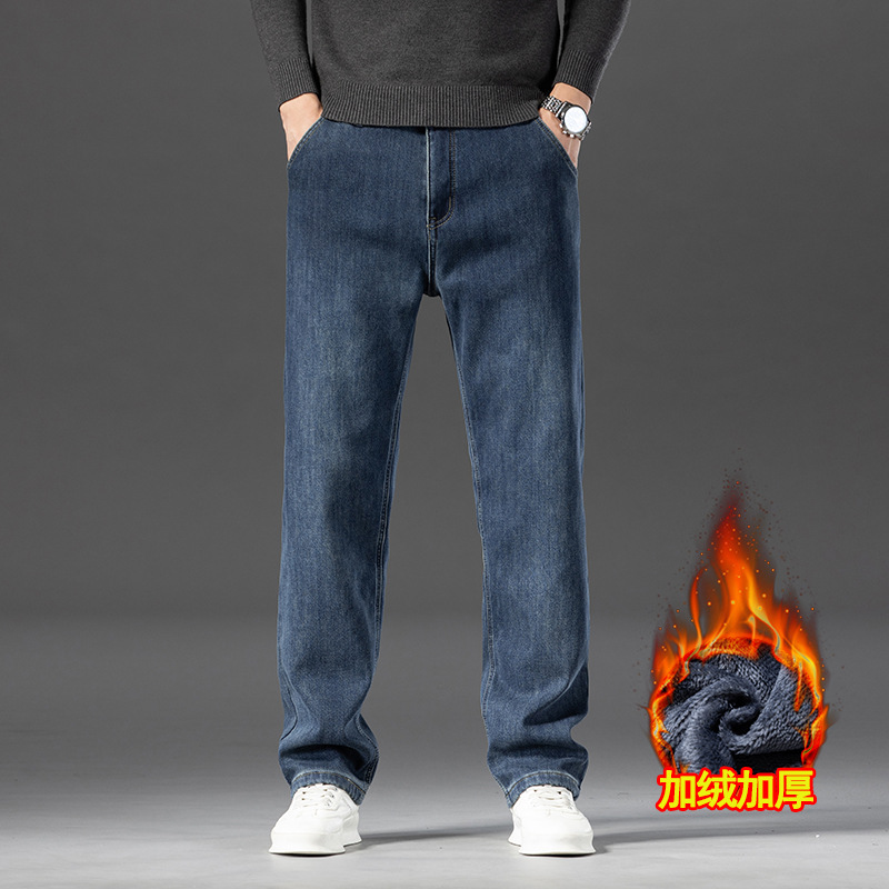 고급 남성용 청바지 봄 가을 신상 2025 루즈핏 스트레이트 남성용 긴바지 겨울용 신축성 있는 기모 안감 두꺼운 바지스토어 가기