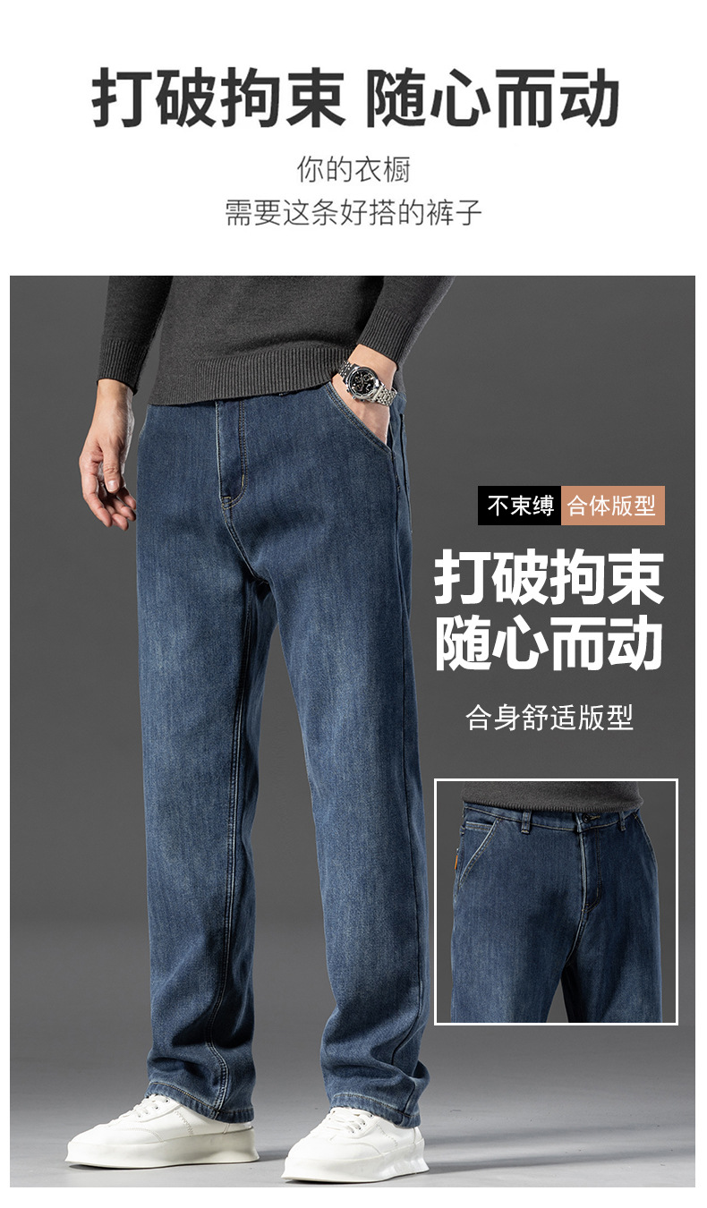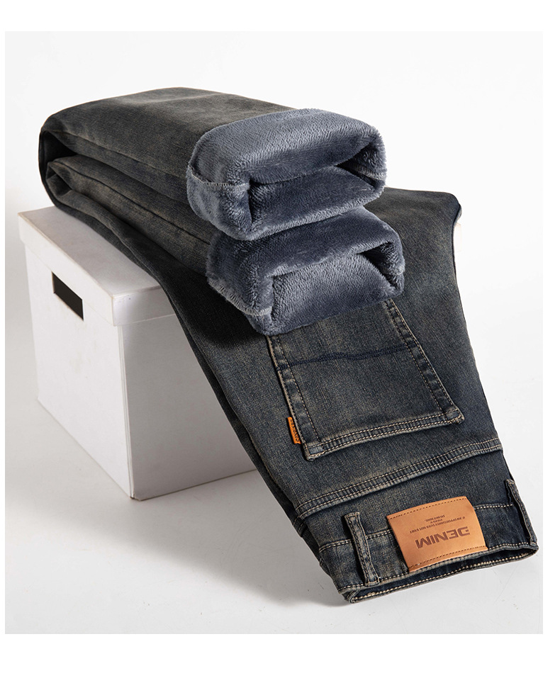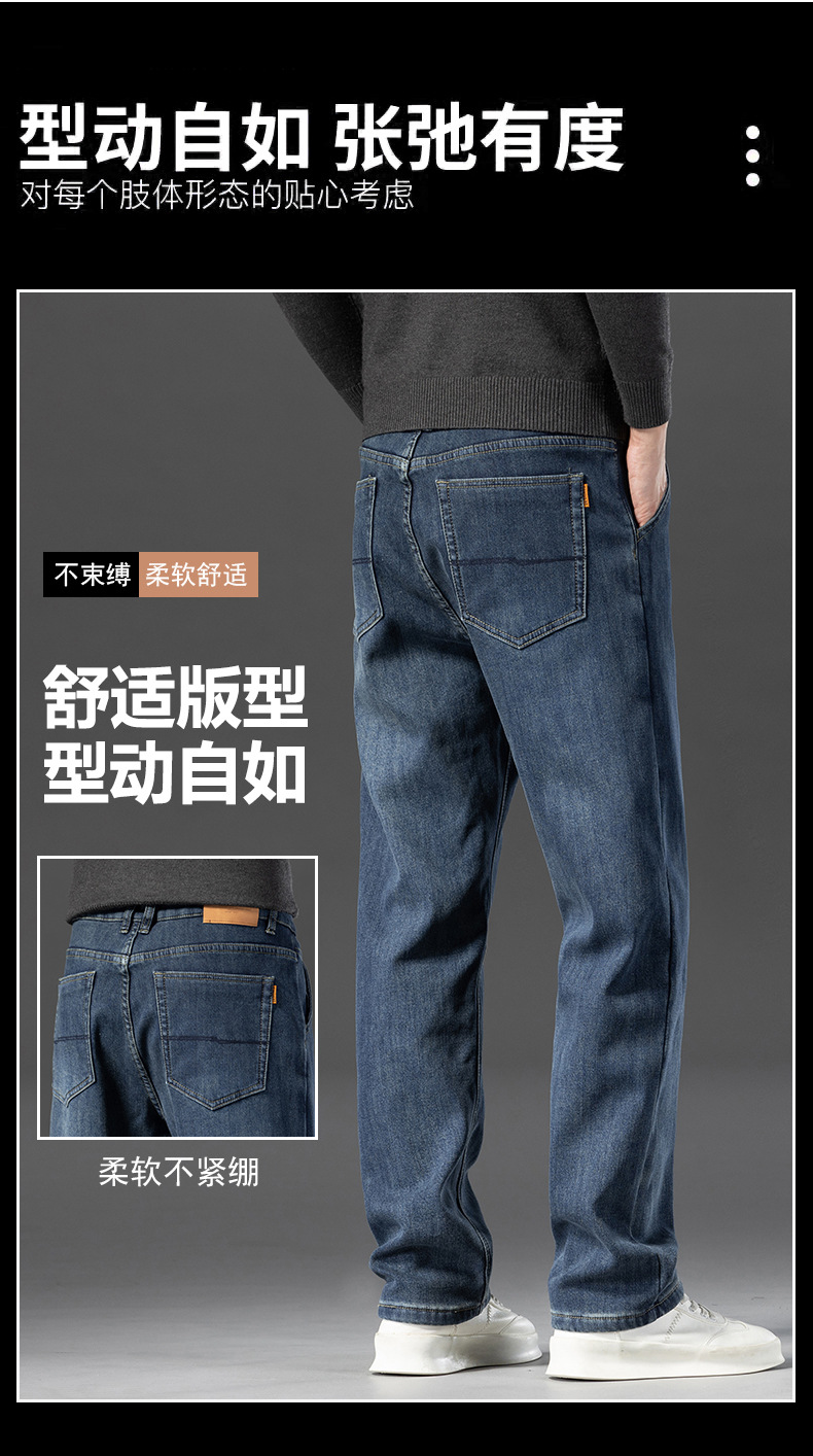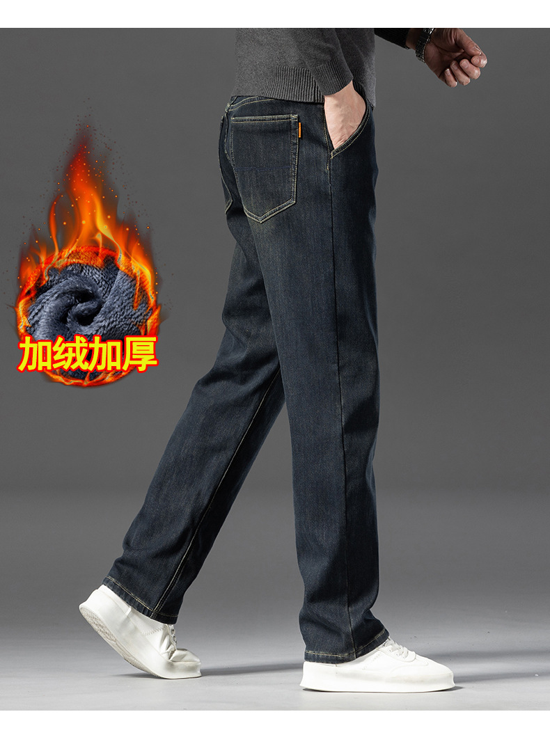 고급 남성용 청바지 봄 가을 신상 2025 루즈핏 스트레이트 남성용 긴바지 겨울용 신축성 있는 기모 안감 두꺼운 바지스토어 가기