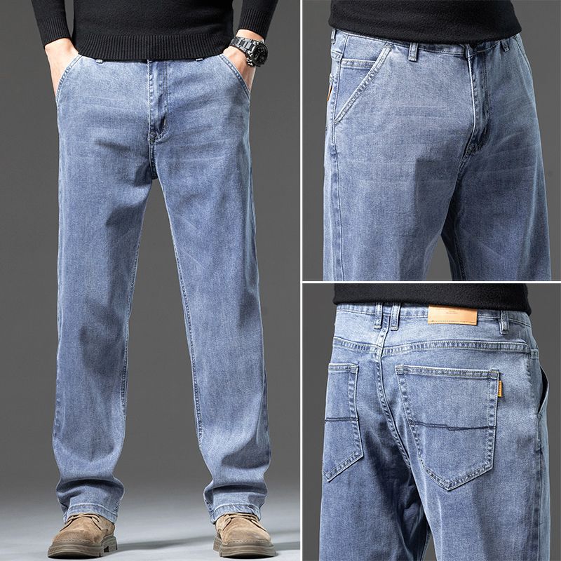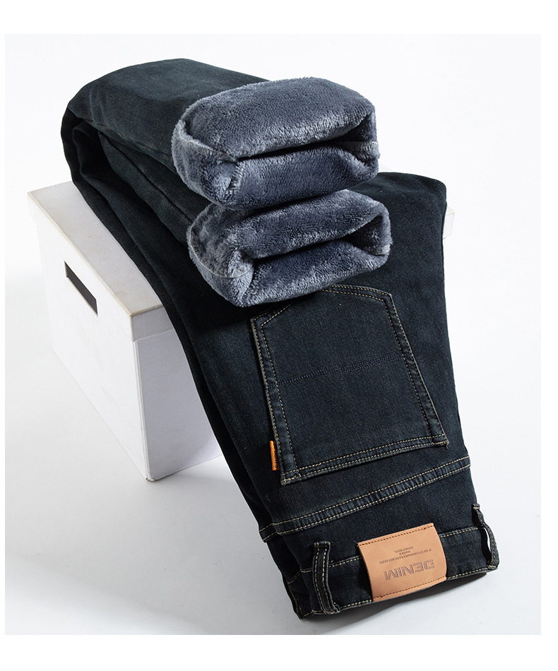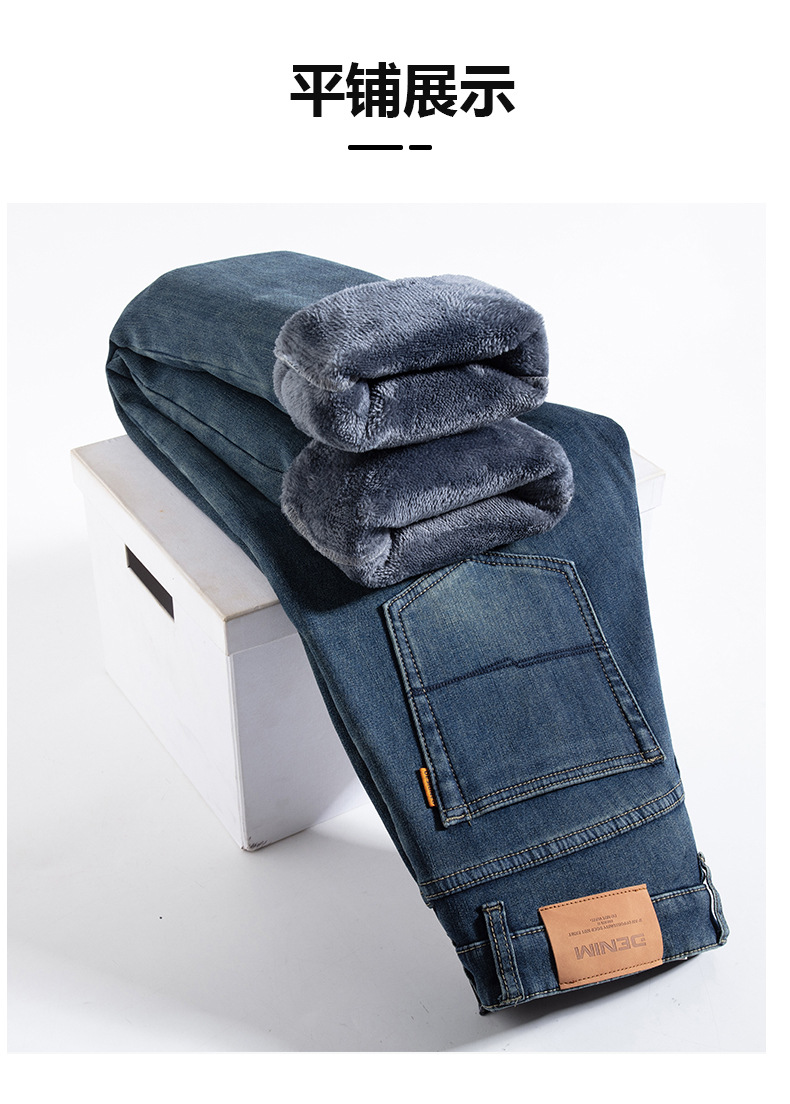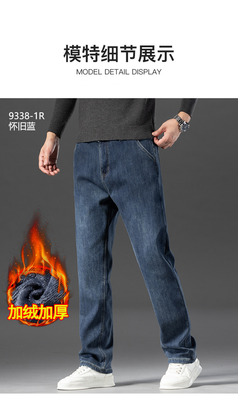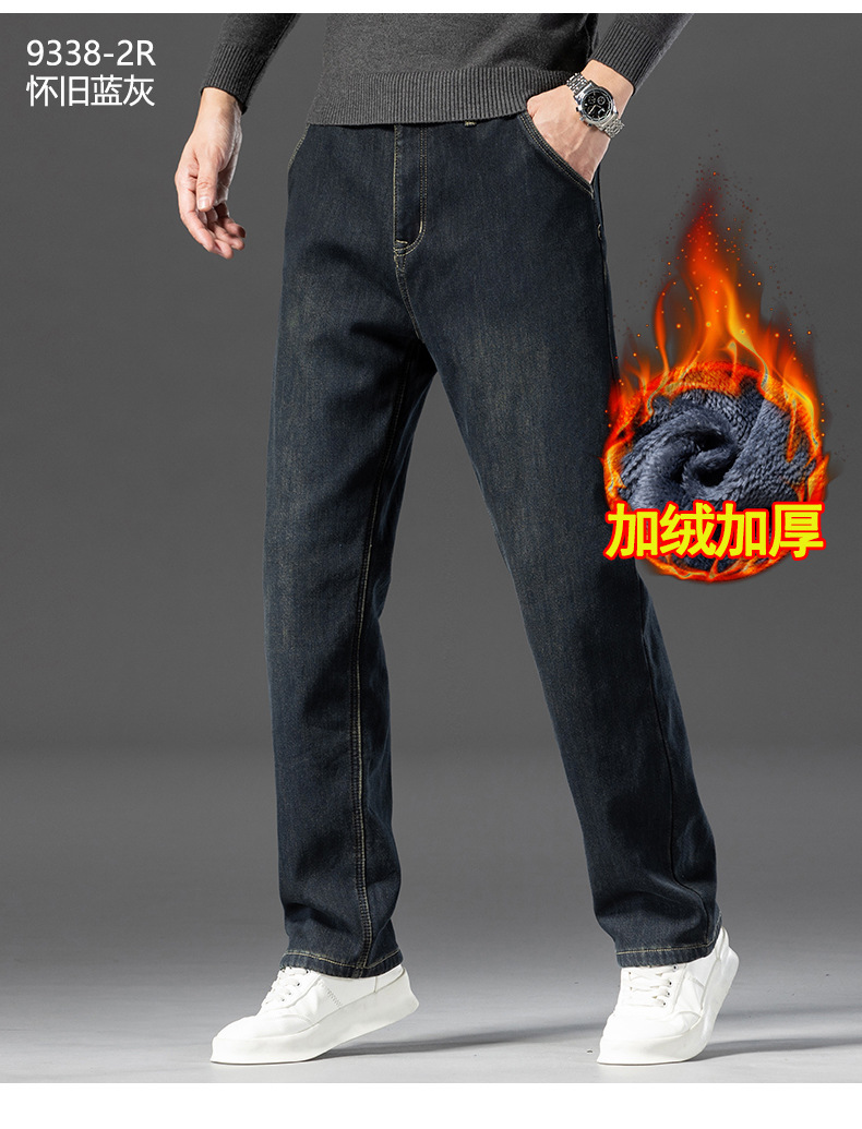 고급 남성용 청바지 봄 가을 신상 2025 루즈핏 스트레이트 남성용 긴바지 겨울용 신축성 있는 기모 안감 두꺼운 바지스토어 가기