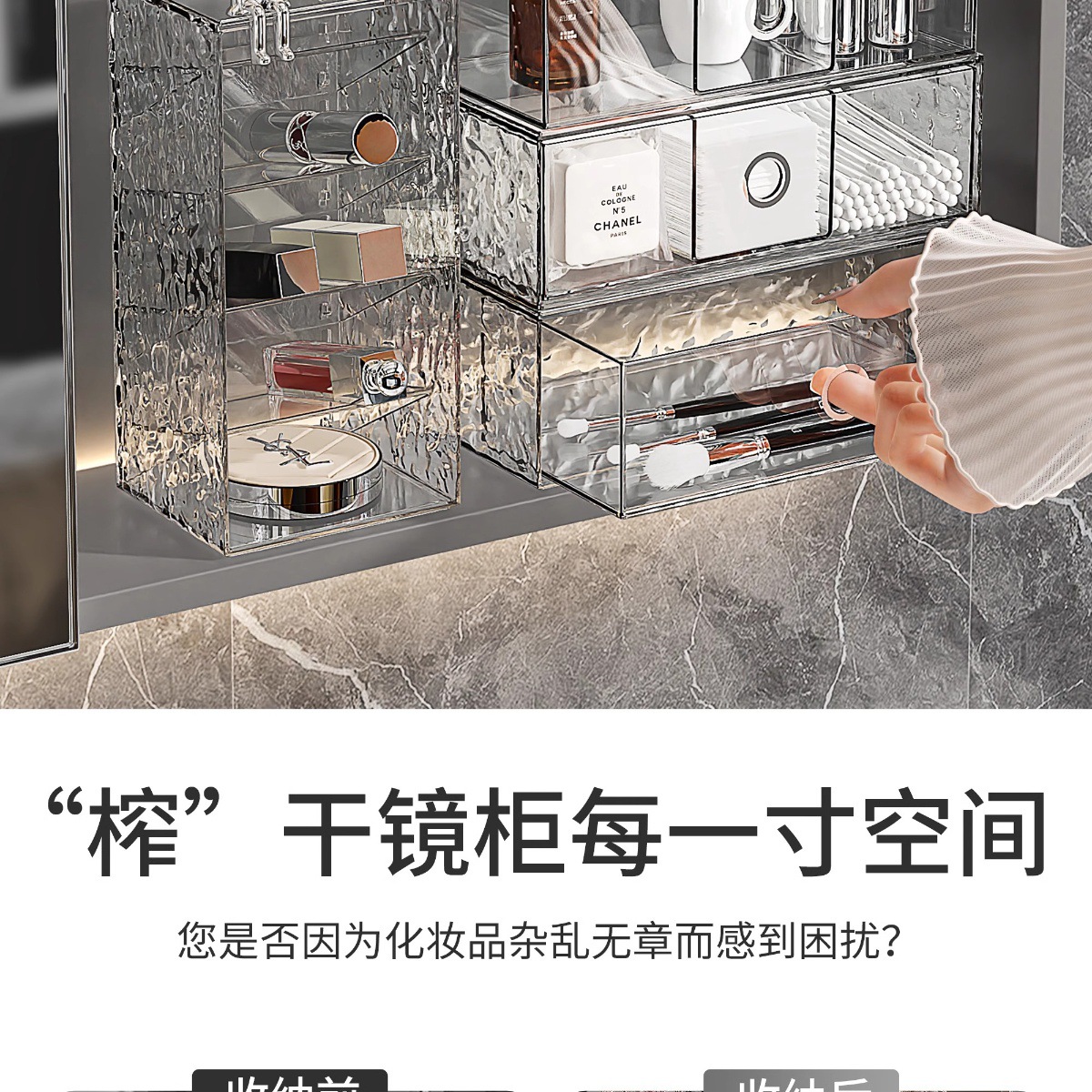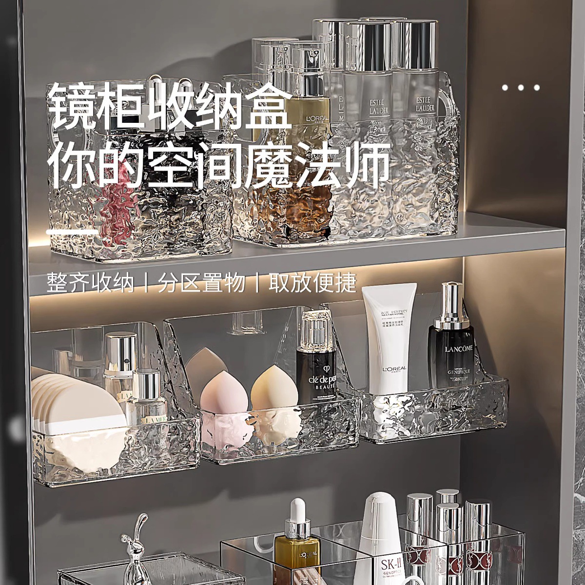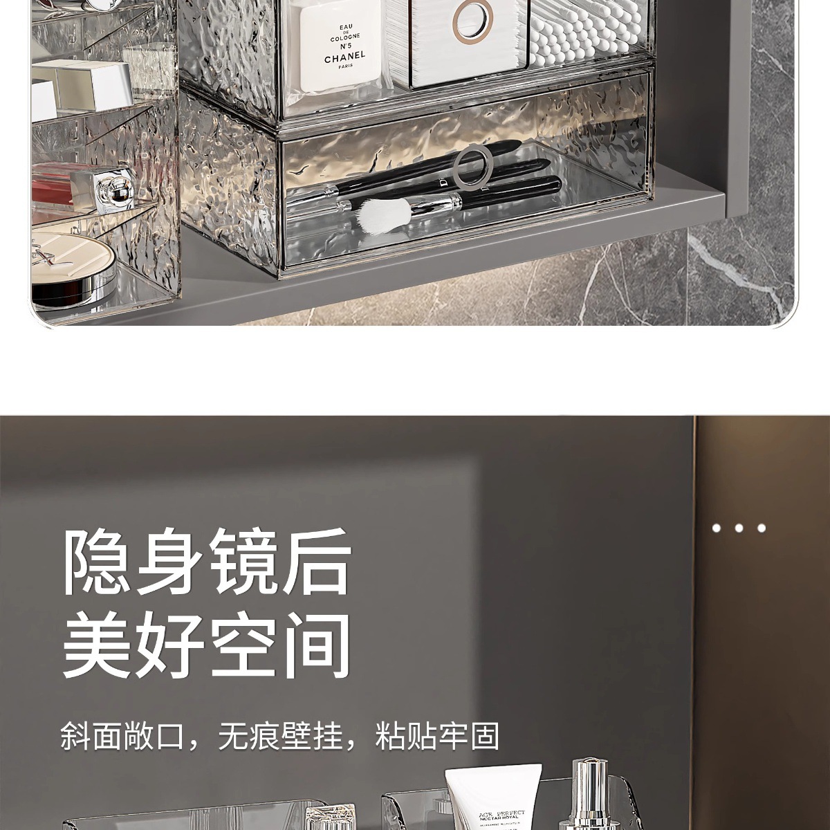 거울 수납함, 욕실 수납함, 세면대 정리함, 마스크팩, 립스틱 서랍, 화장품 정리대, 뷰티 용품