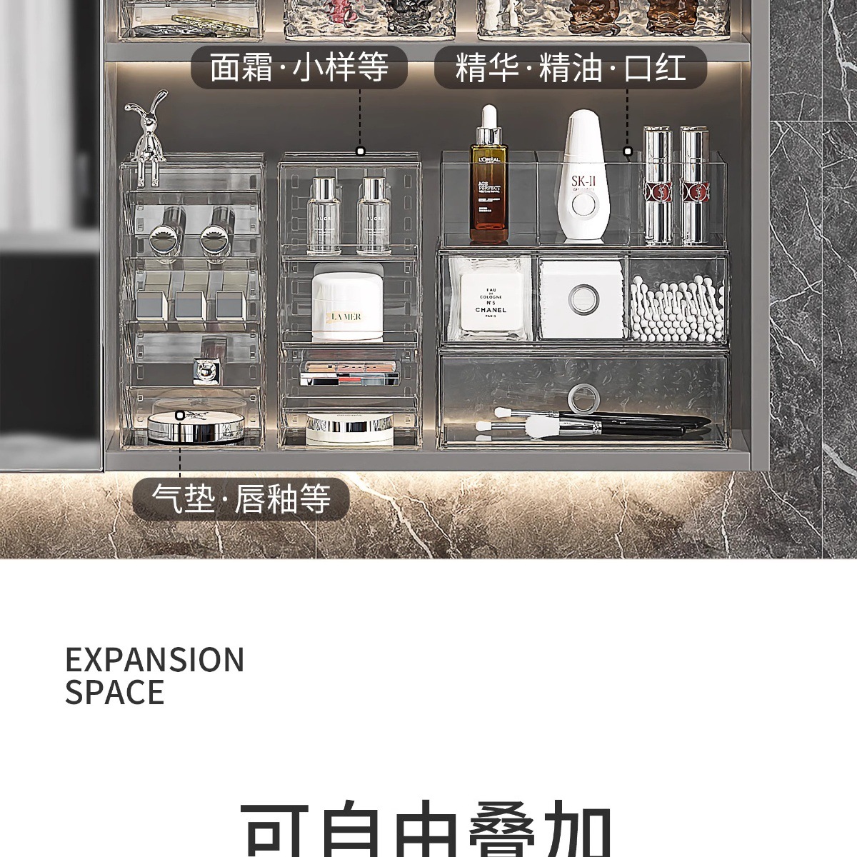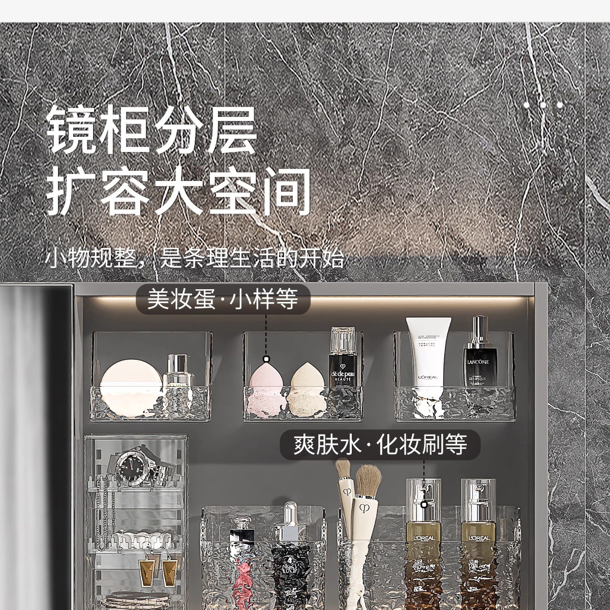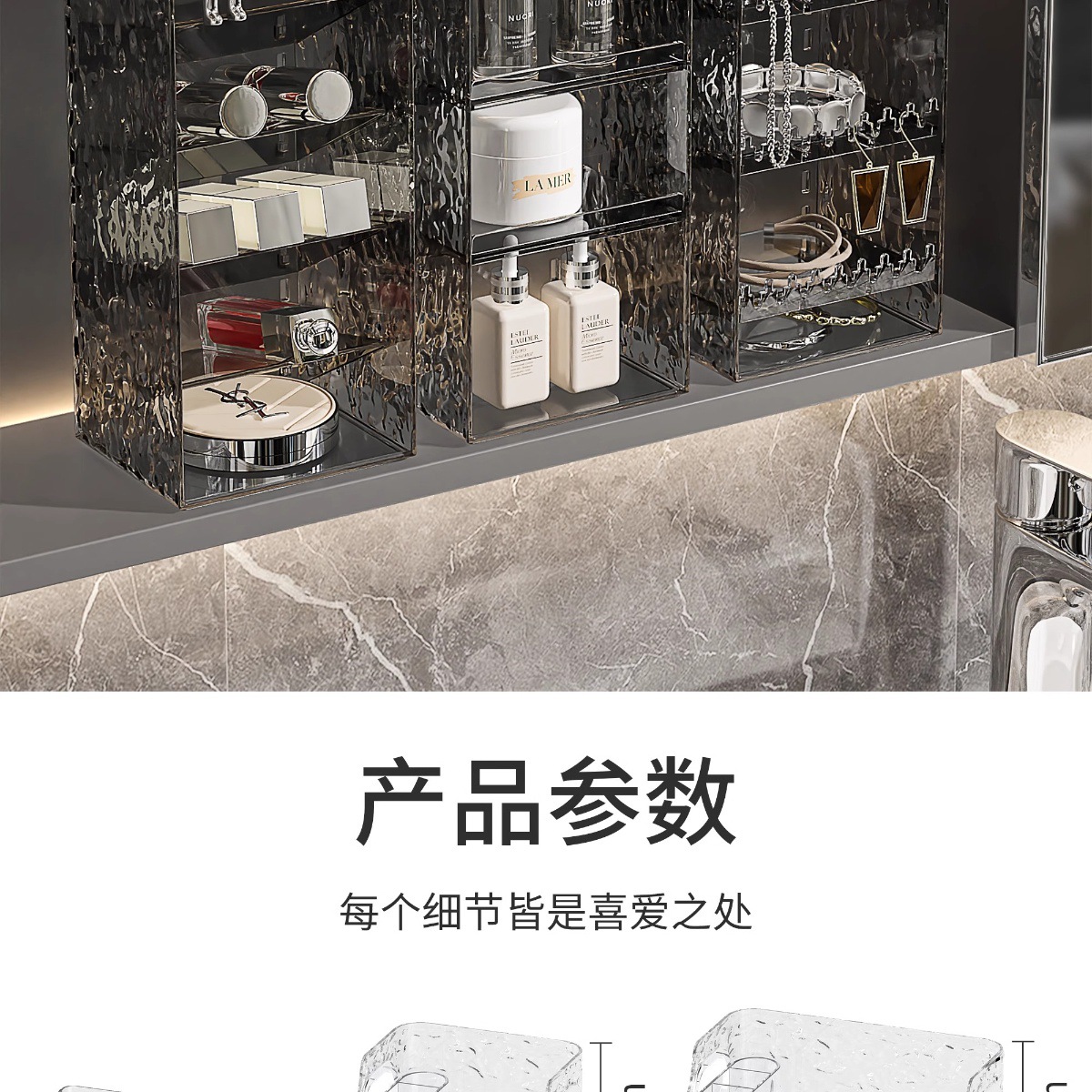 거울 수납함, 욕실 수납함, 세면대 정리함, 마스크팩, 립스틱 서랍, 화장품 정리대, 뷰티 용품