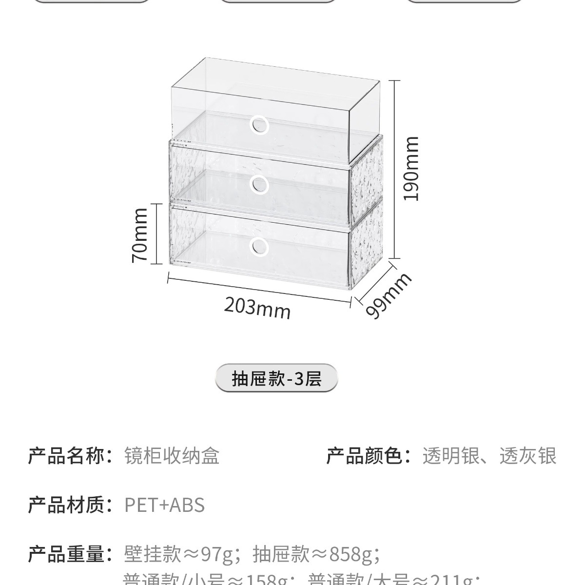 • 3종 콤비네이션 모델: 투명 서랍형 3종 세트(파티션 1개)