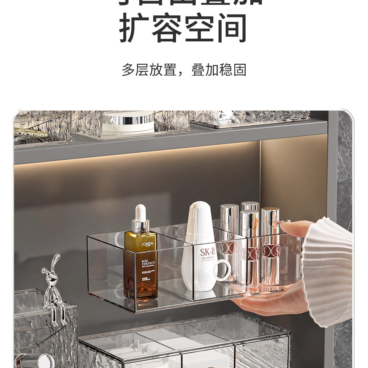 • 레이어드 스타일: 투명 수직 립스틱 홀더