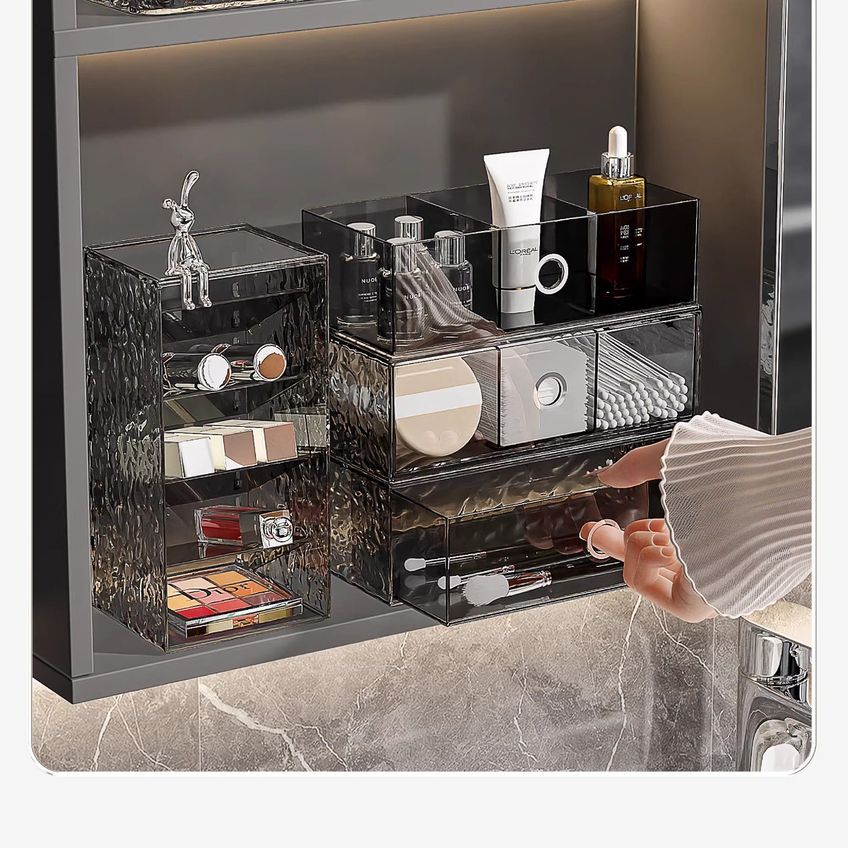 거울 수납함, 욕실 수납함, 세면대 정리함, 마스크팩, 립스틱 서랍, 화장품 정리대, 뷰티 용품스토어 가기