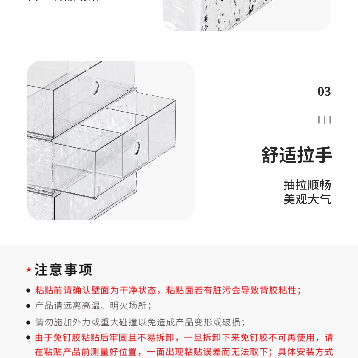 • 서랍 모델: 투명 - 단층 서랍 [분리 포함]