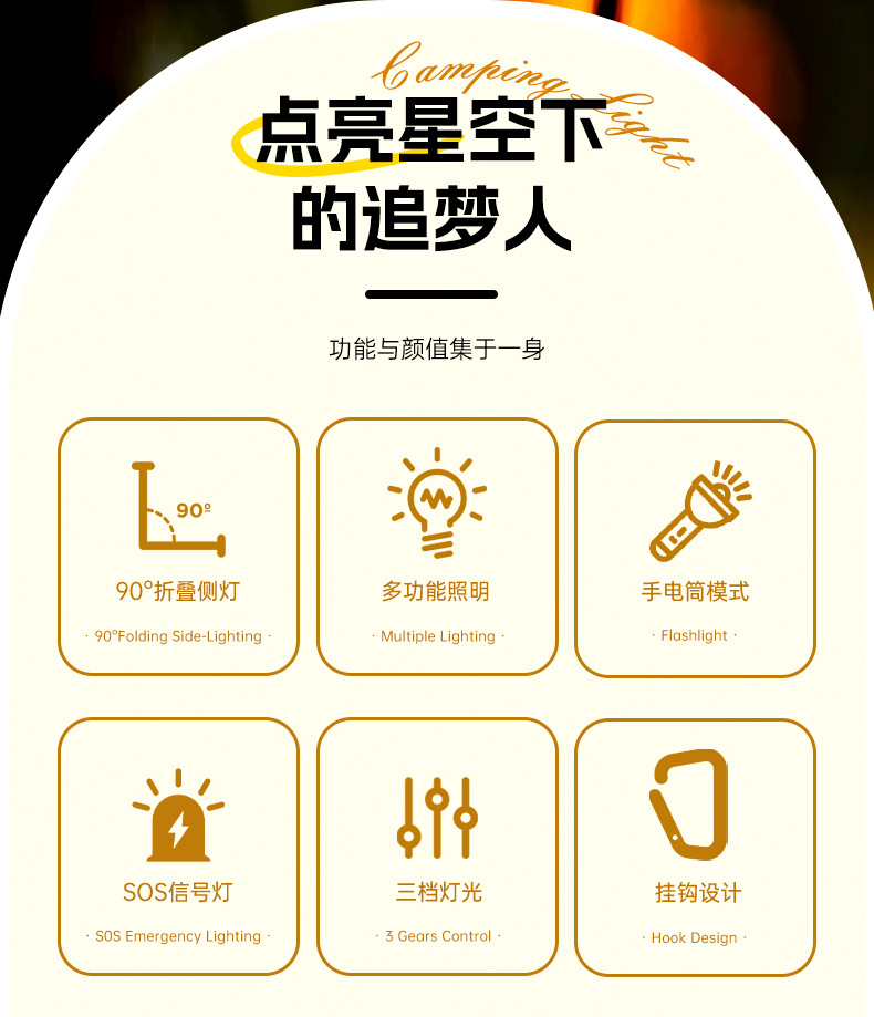 제조업체 맞춤형 국경 간 야외 조명 캠핑 조명 텐트 램프 led 다기능 손전등 캠핑 분위기 조명