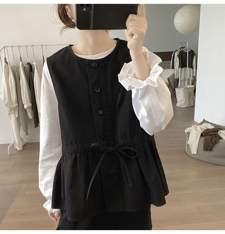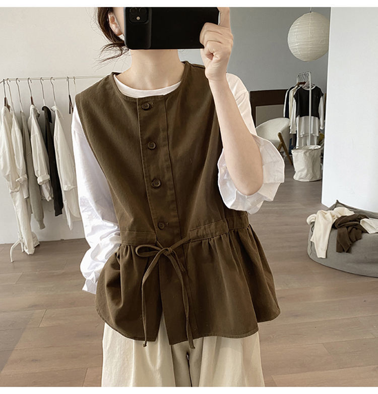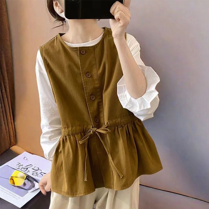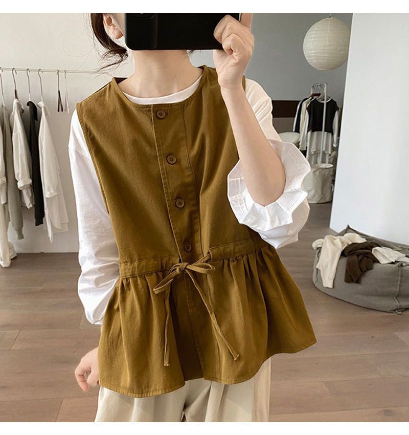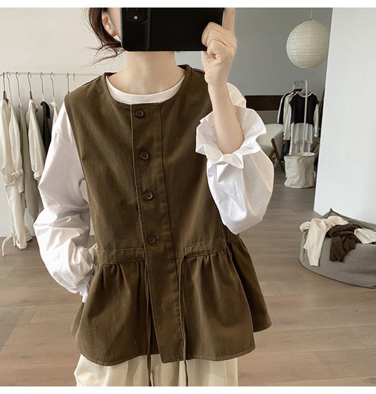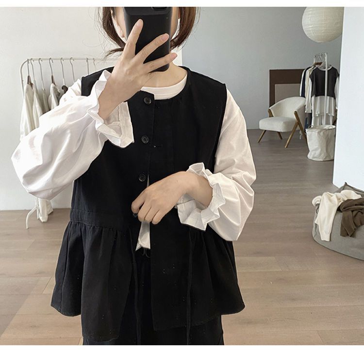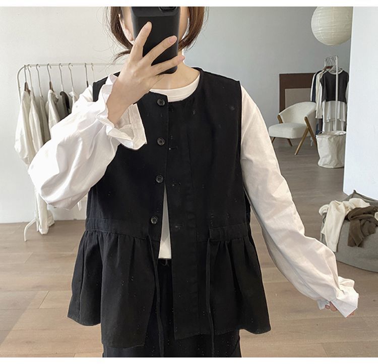 여성용 러플 루즈핏 데님 조끼 2026 봄 가을 신상 라운드넥 탑 디자인 조끼 재킷