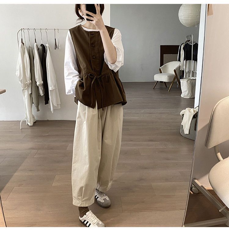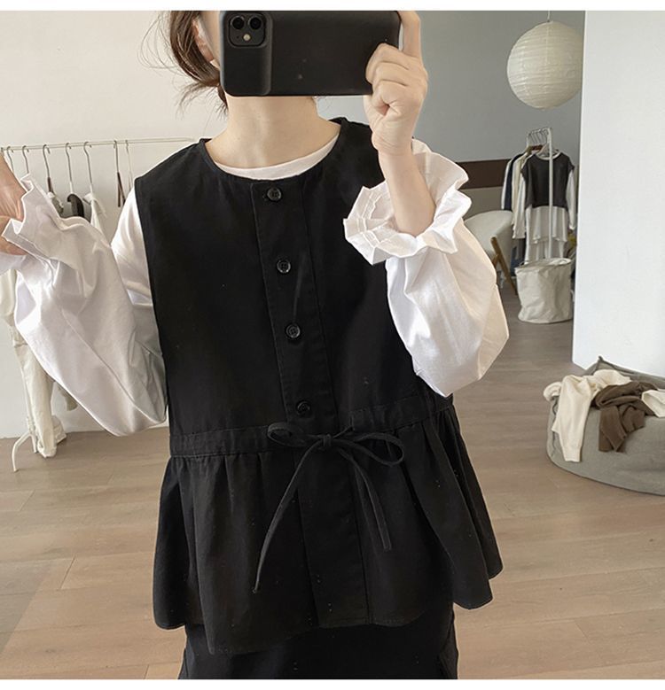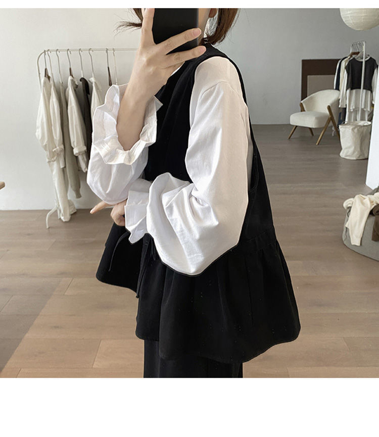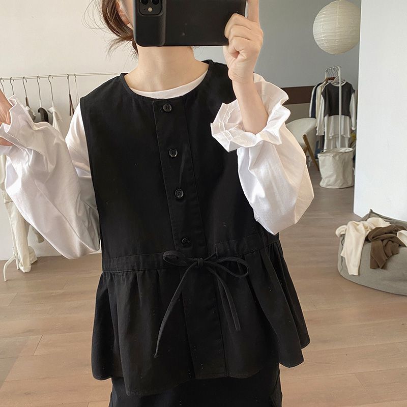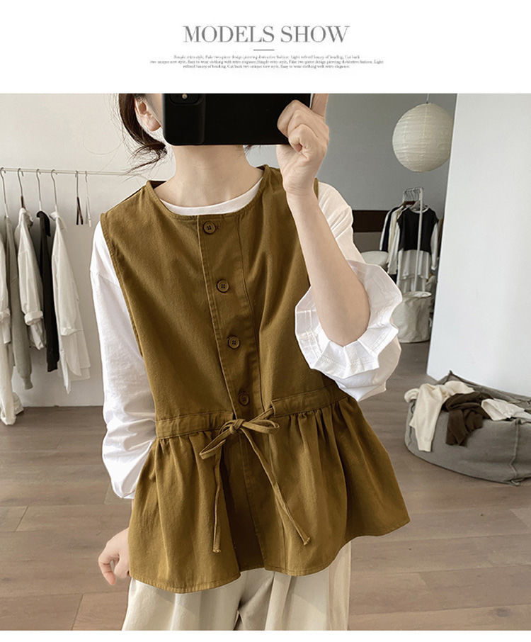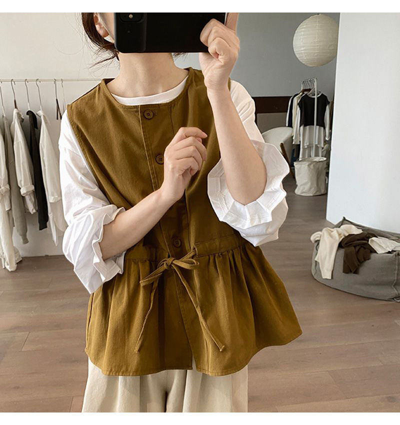 여성용 러플 루즈핏 데님 조끼 2026 봄 가을 신상 라운드넥 탑 디자인 조끼 재킷