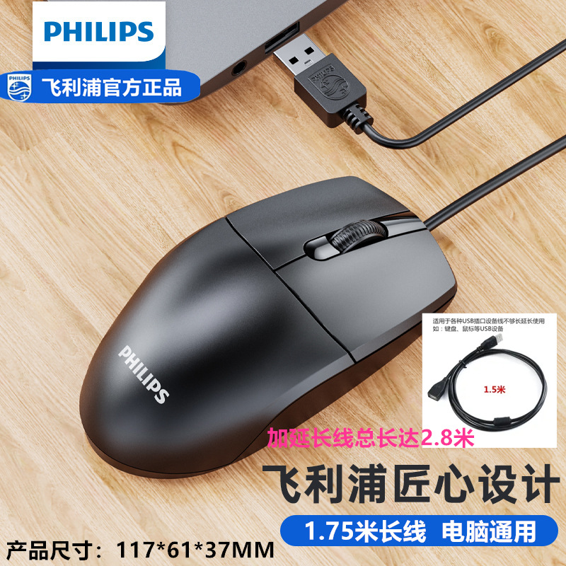 【官方正品】【原装正品】优派/飞利浦/宏碁加长线鼠标有线办公司企事业单位笔记本台式电脑通用外接家用男女手感舒适现货批发一件代发