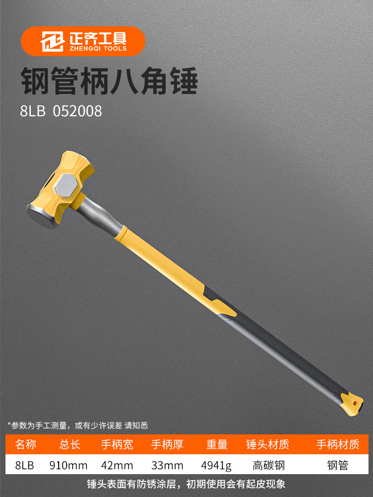 건설 현장을위한 슬레지 해머 팔각형 해머 대형 고체 충격 방지 해머 통합 벽 철거 및 벽 스매싱 무거운 돌 망치 망치
