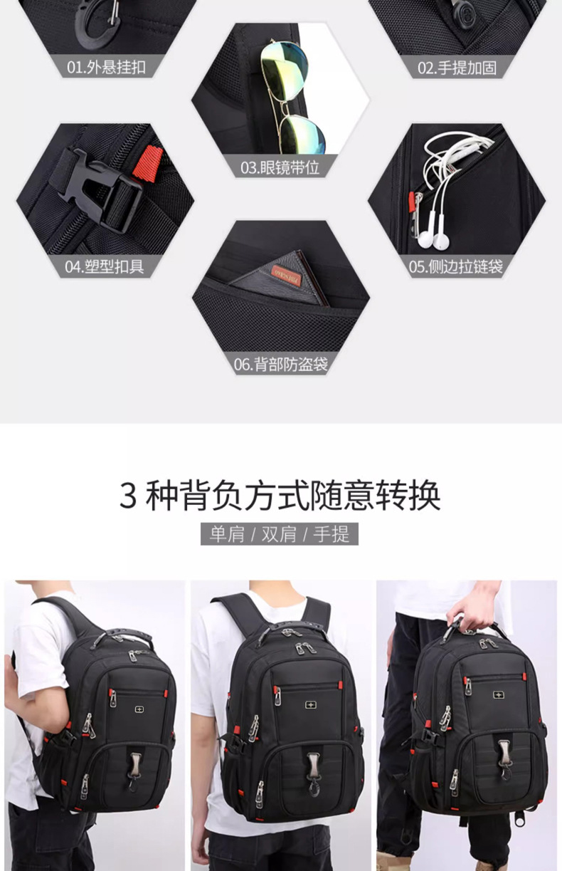 스위스 백팩 남성용 대용량 비즈니스 여행 컴퓨터 가방 중학생 책가방 등산 가방 남성용 백팩스토어 가기
