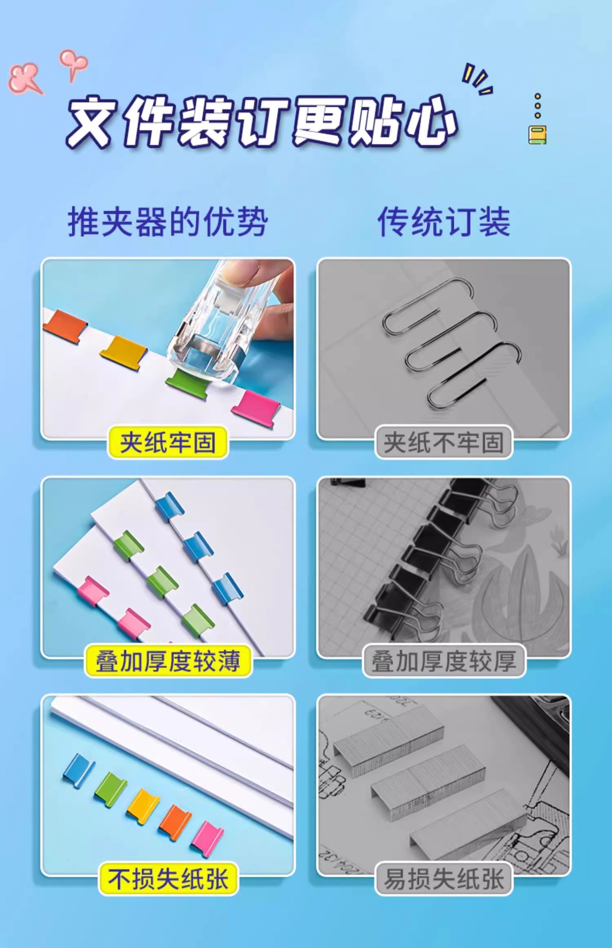 리핀 홀 학생 푸셔 폴더 책 수정 클립 클립 스테이플러 푸시 클립 작은 클립 손 계정