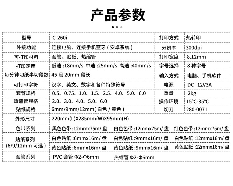 Li Biao C- 260i 열 전송 라인 표시 기계 통신 케이블 번호 튜브 소매 열 수축 튜브 휴대용 라벨 기계스토어 가기