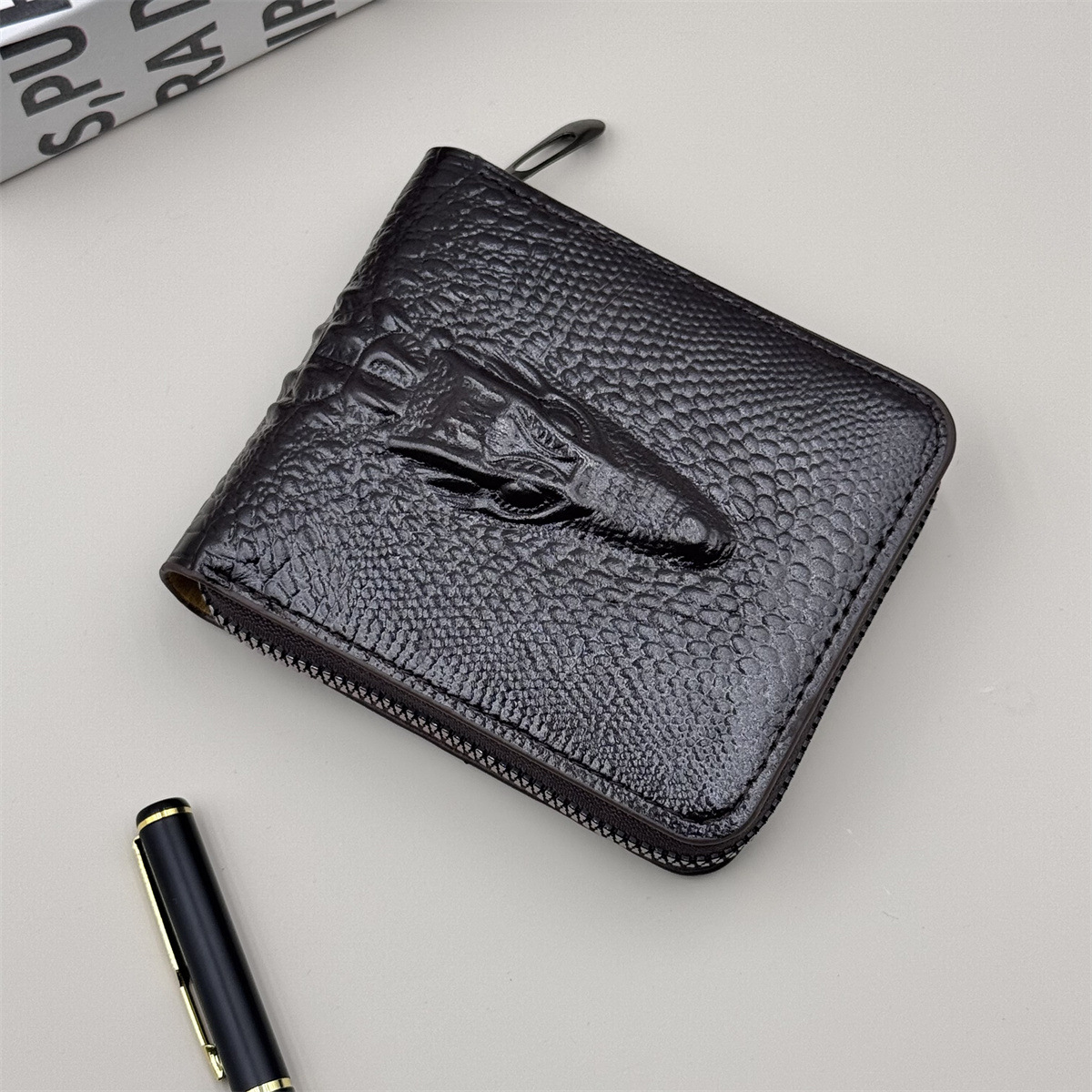 국경 간 폭발성 새로운 남성 지갑 짧은 지퍼 악어 PU 가죽 멀티 카드 대용량 변경 보관 가방