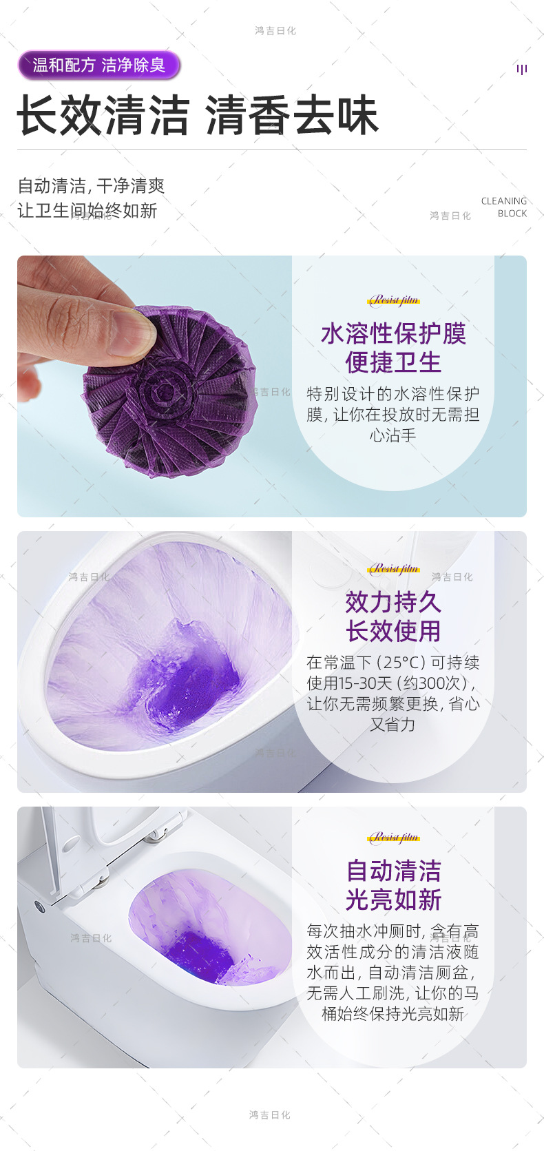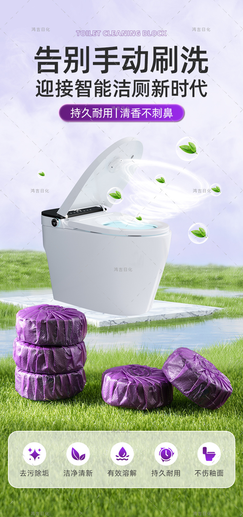 공장 도매 화장실 탈취제 화장실 블록 향수 보라색 거품 청소기 이중 효과 항균 화장실 청소 블록