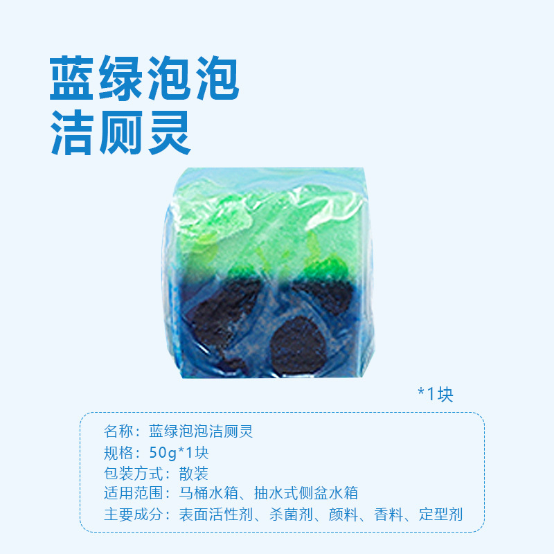 • 사각 파란색과 녹색 버블 변기 세척제 1개