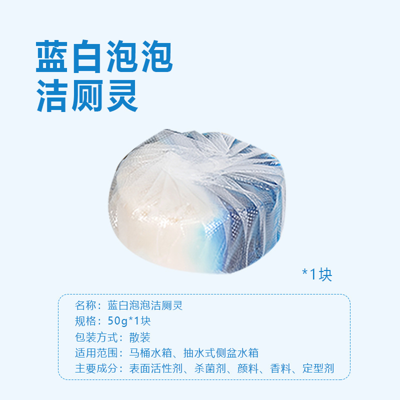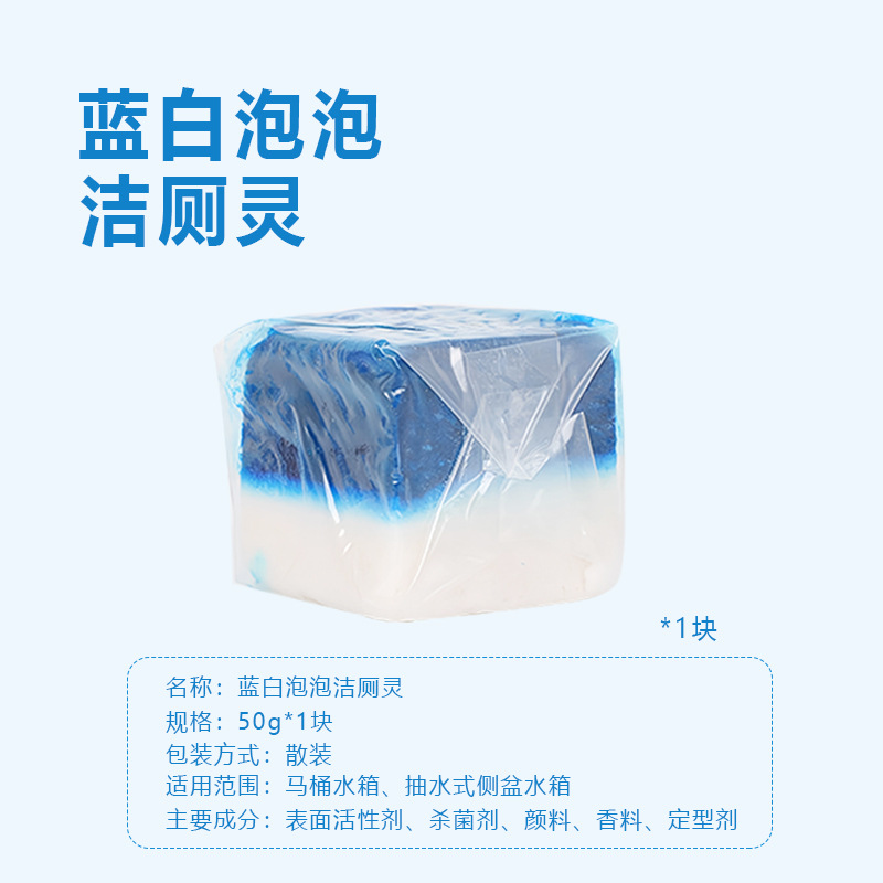• 정사각형 2색 파란색 버블 변기 세척제 1개