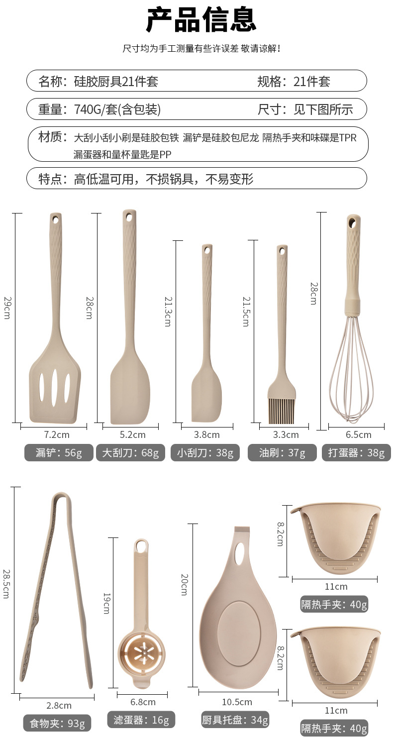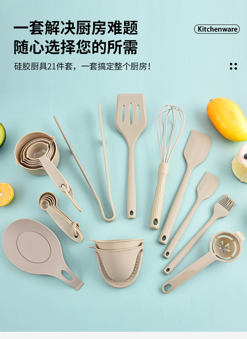 실리콘 주방용품 21 pice 세트 베이킹 요리 도구 비 스틱 팬 계란 휘스크 스크레이퍼 가정용 주방 측정 숟가락 측정 컵