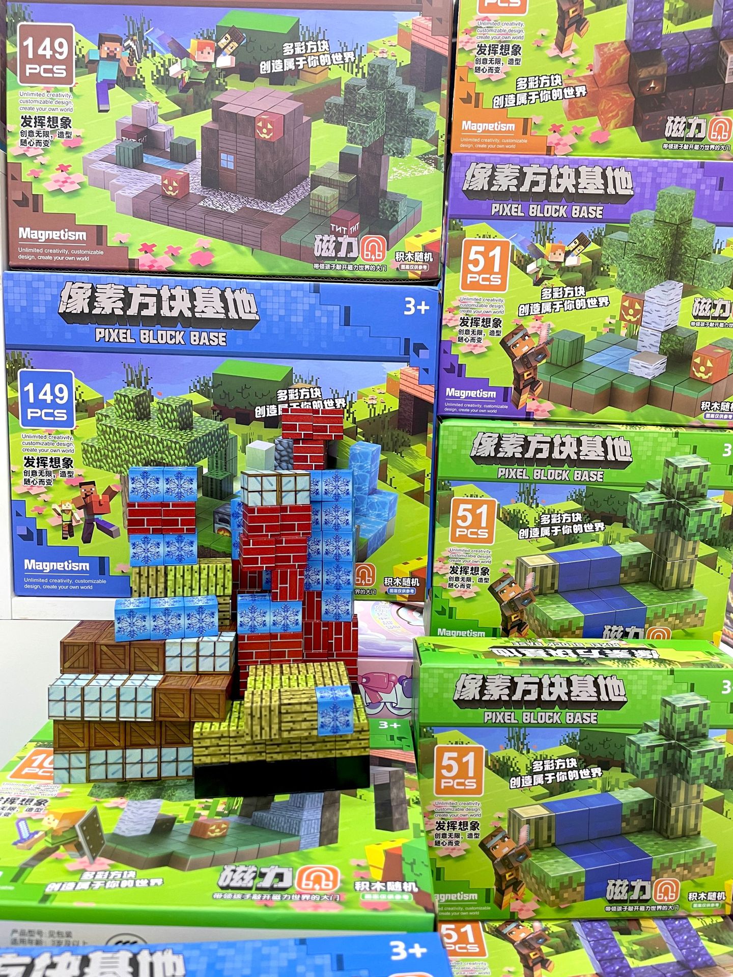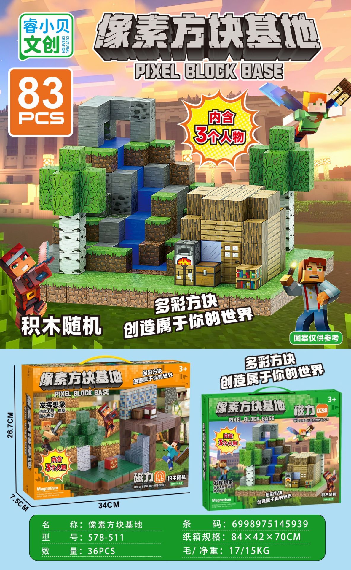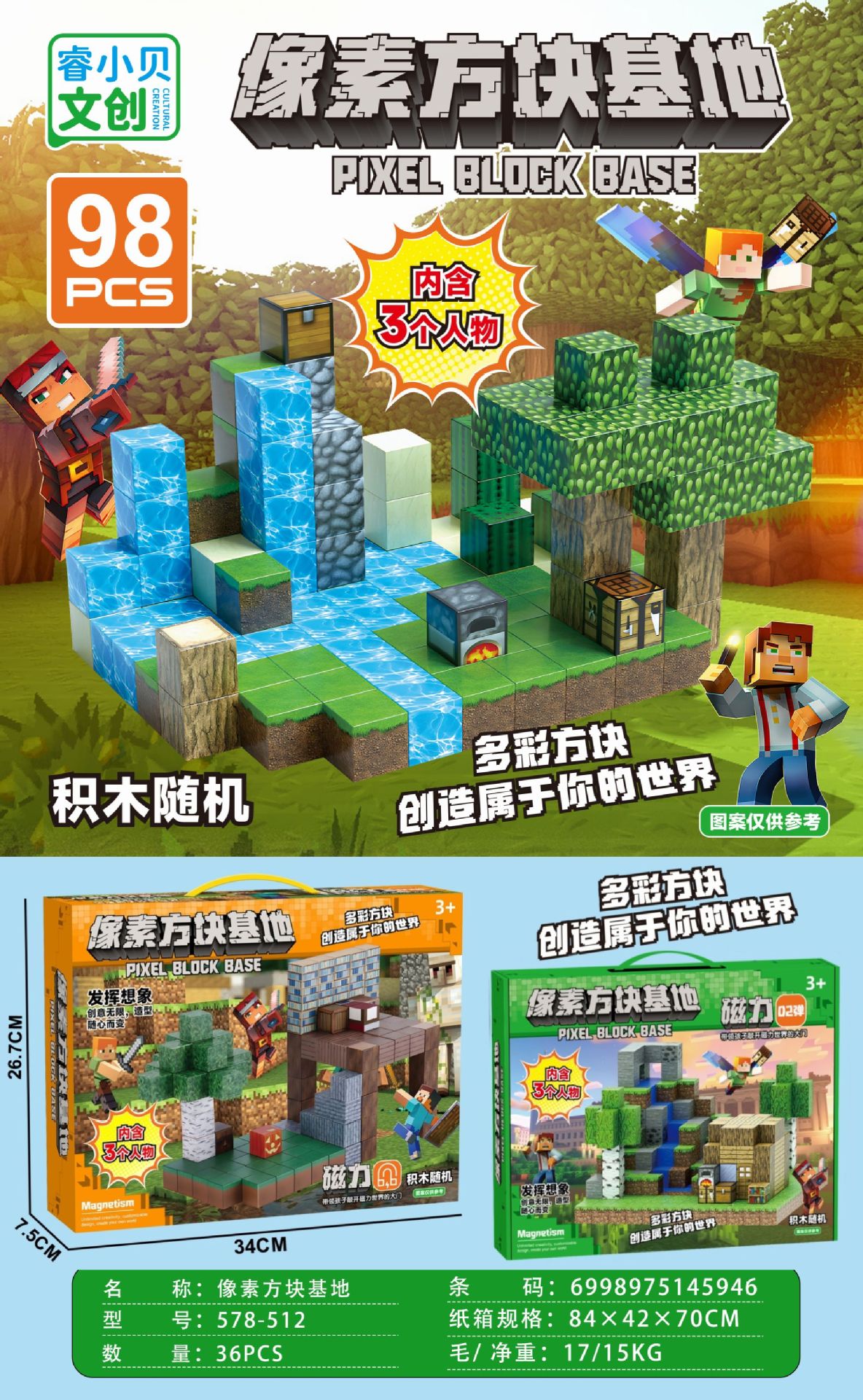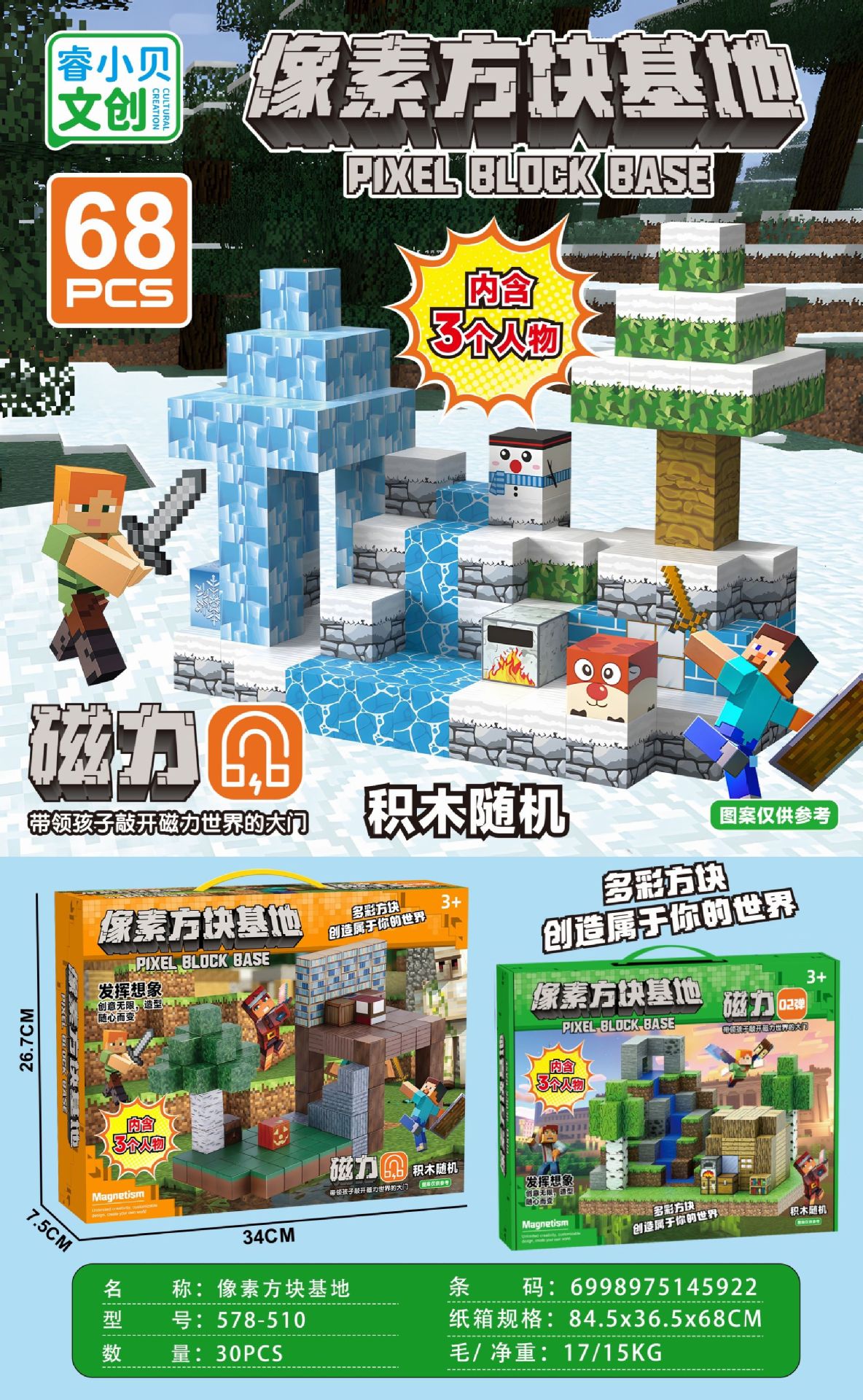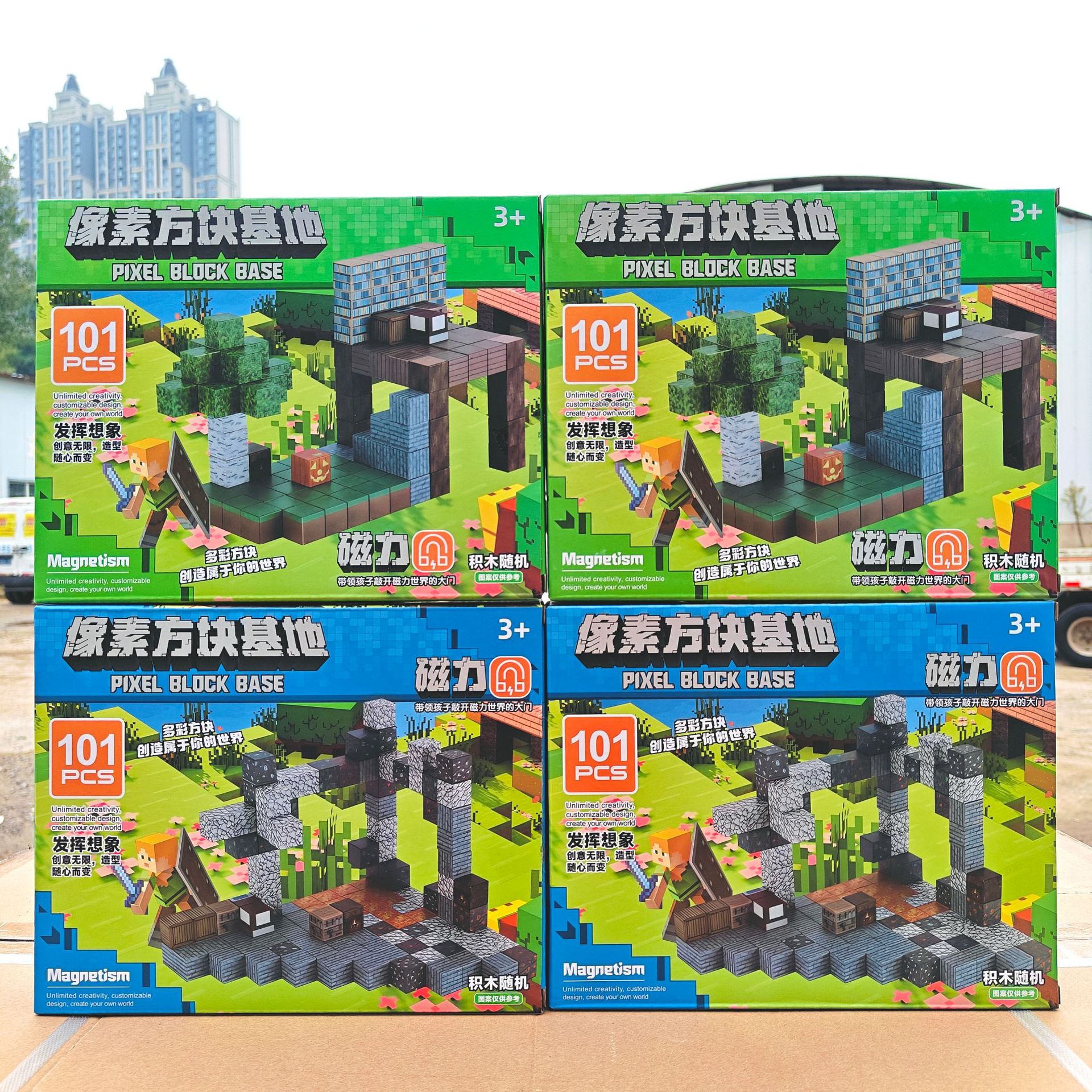 【磁力方块款式都是随机的,可能和彩盒上的场景不符,介意请勿拍】