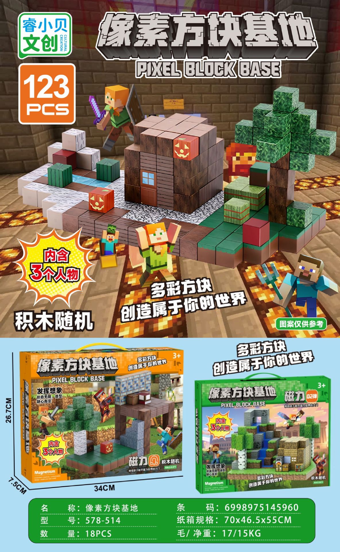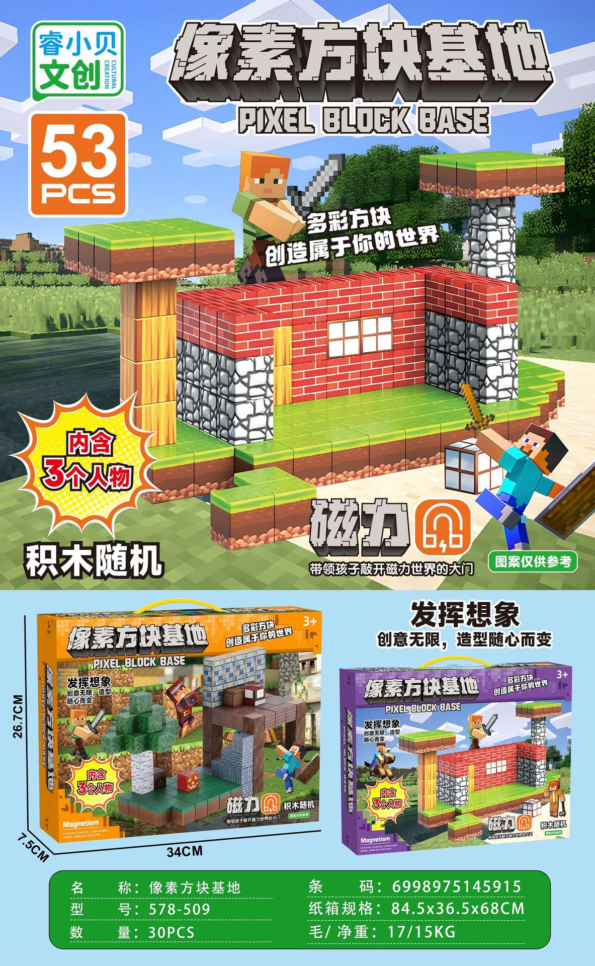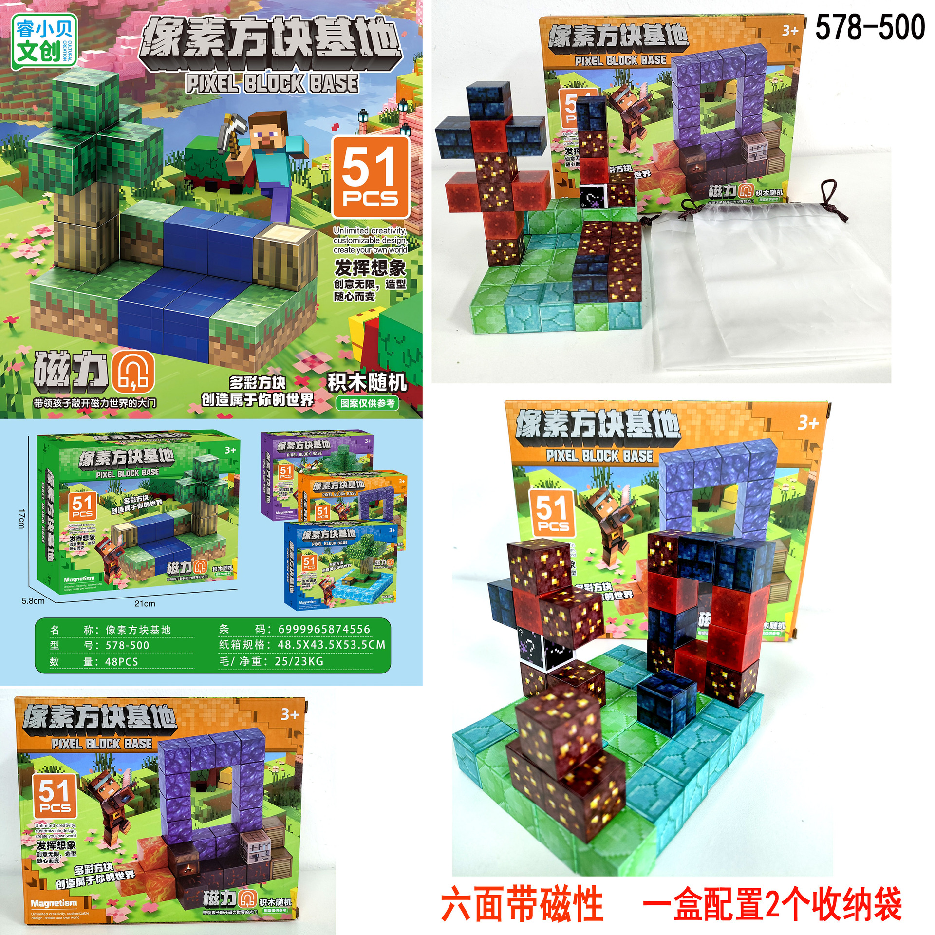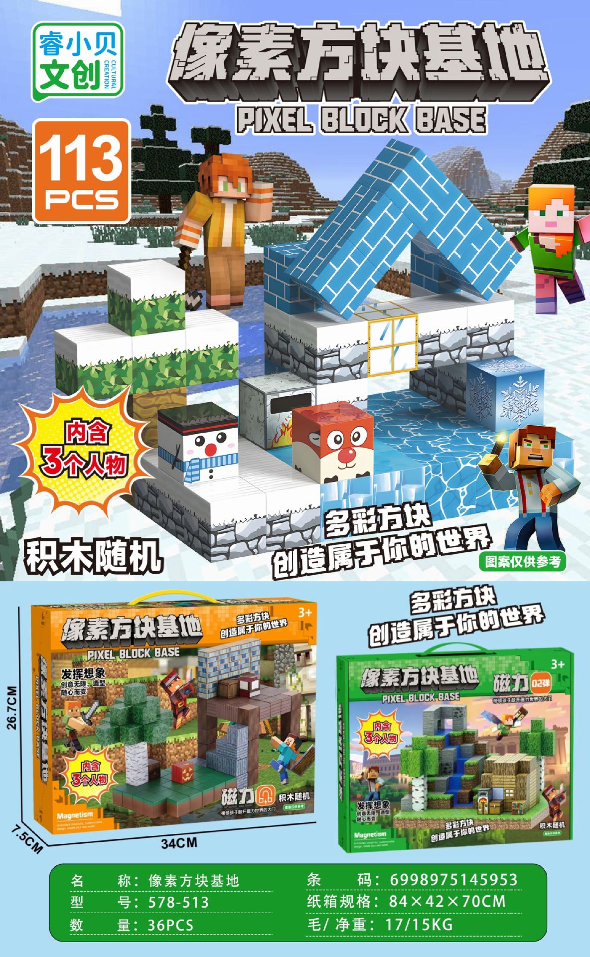 【磁力方块款式都是随机的,可能和彩盒上的场景不符,介意请勿拍】