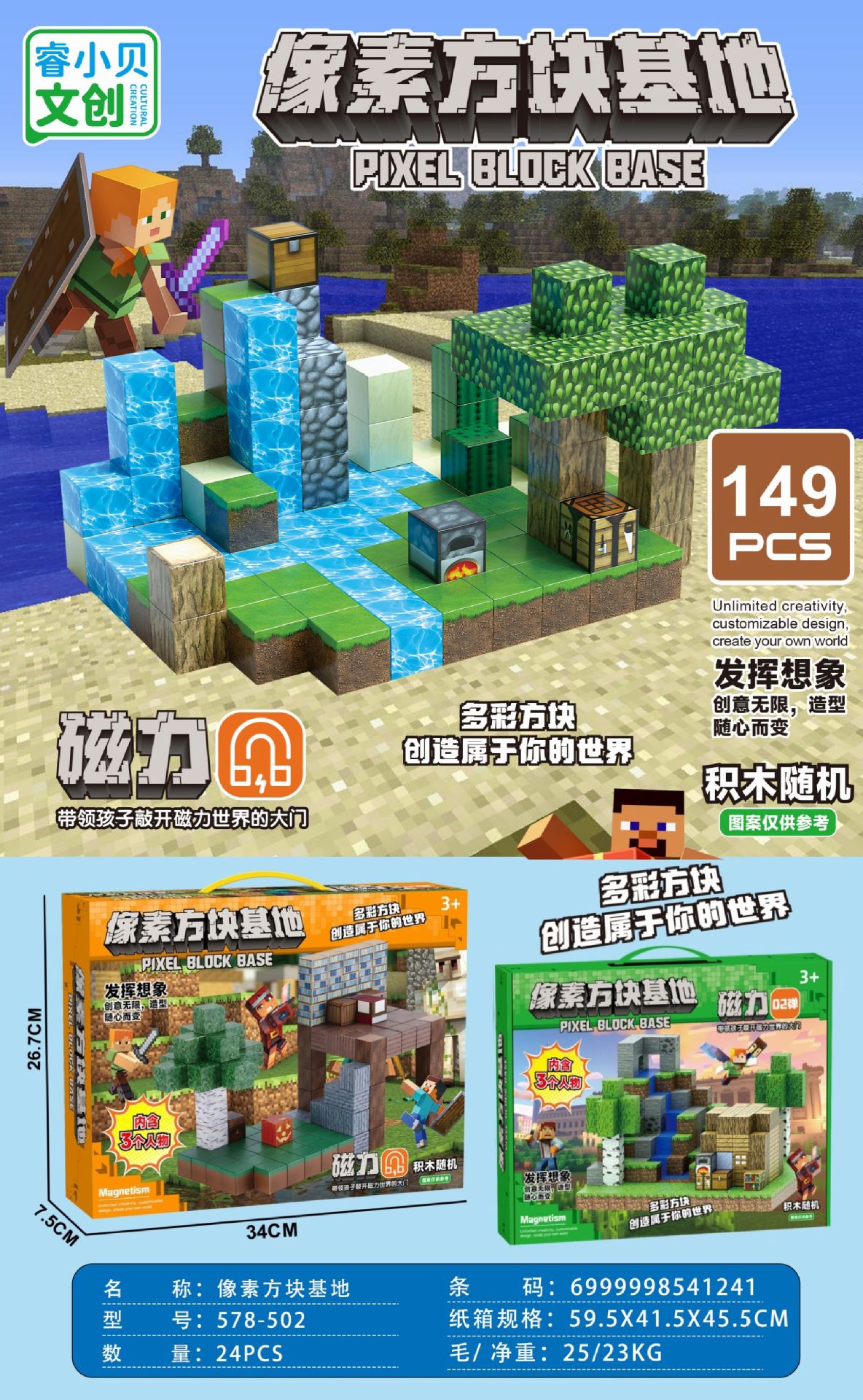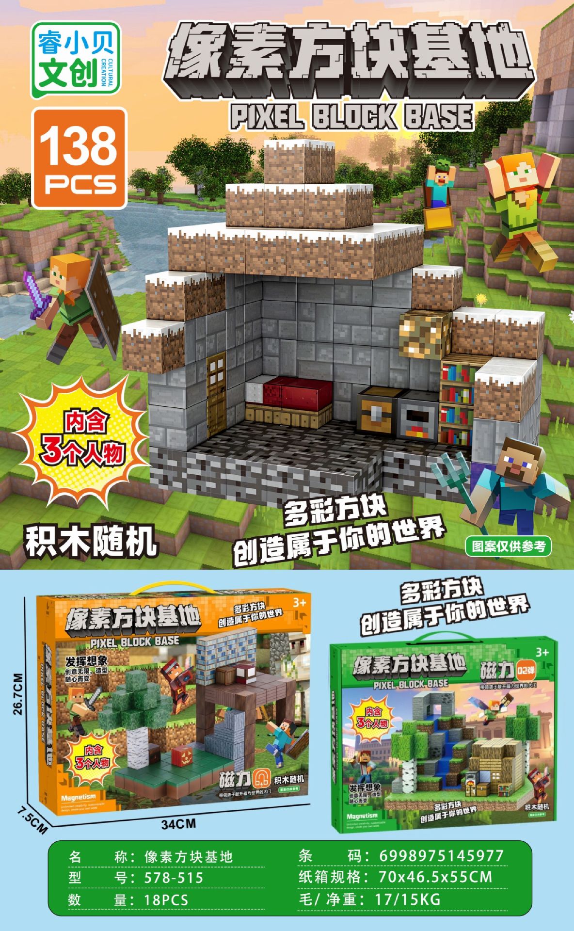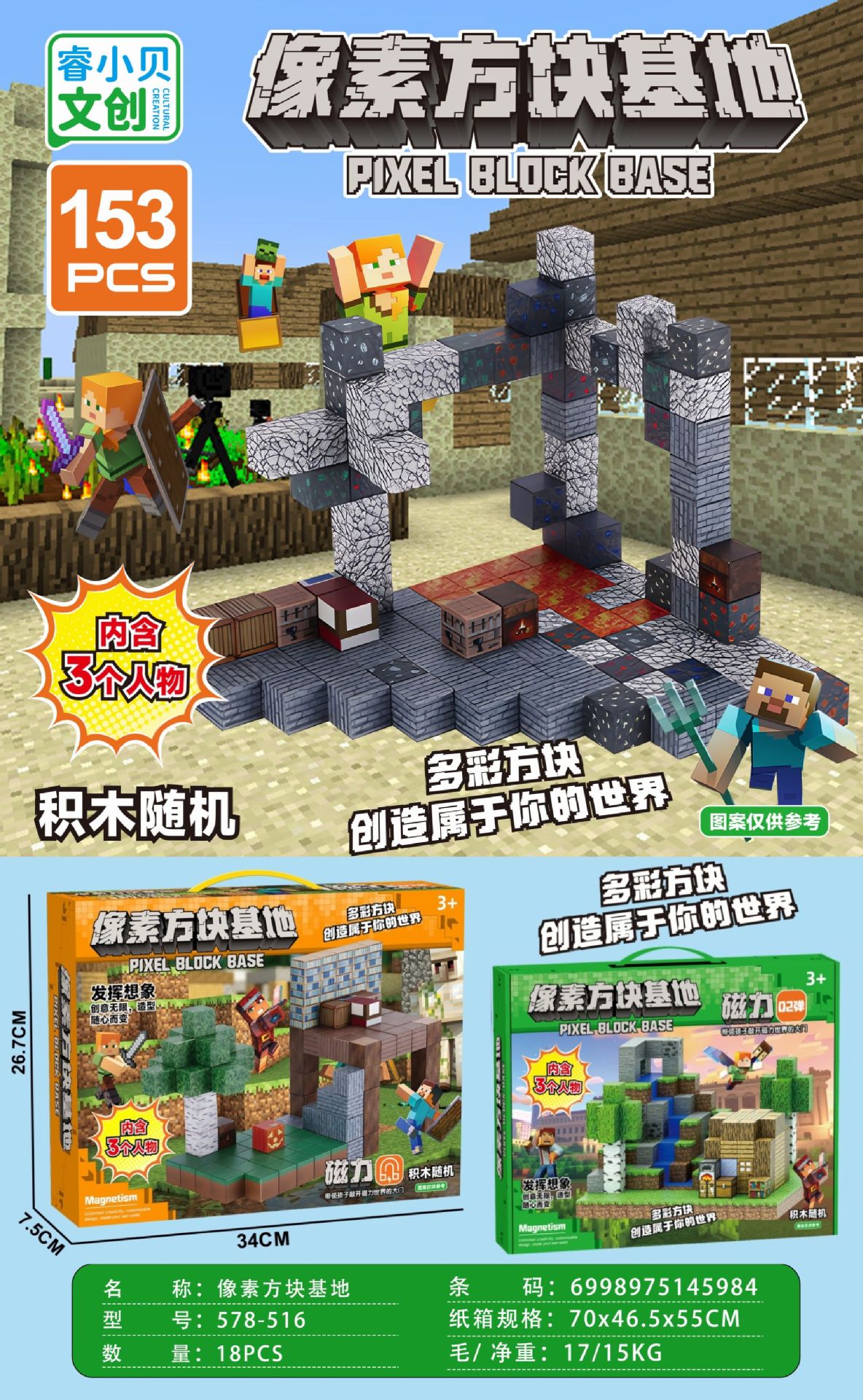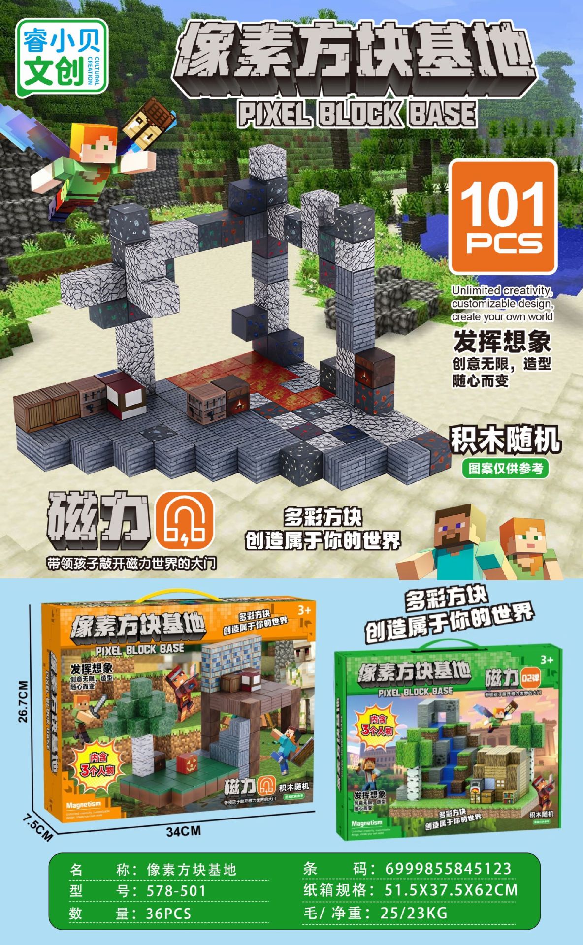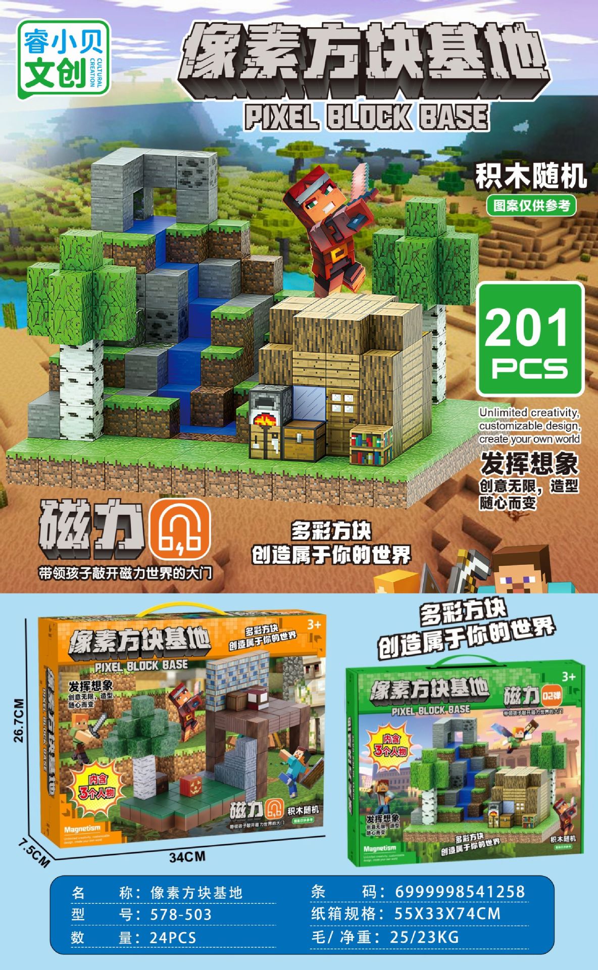 【磁力方块款式都是随机的,可能和彩盒上的场景不符,介意请勿拍】