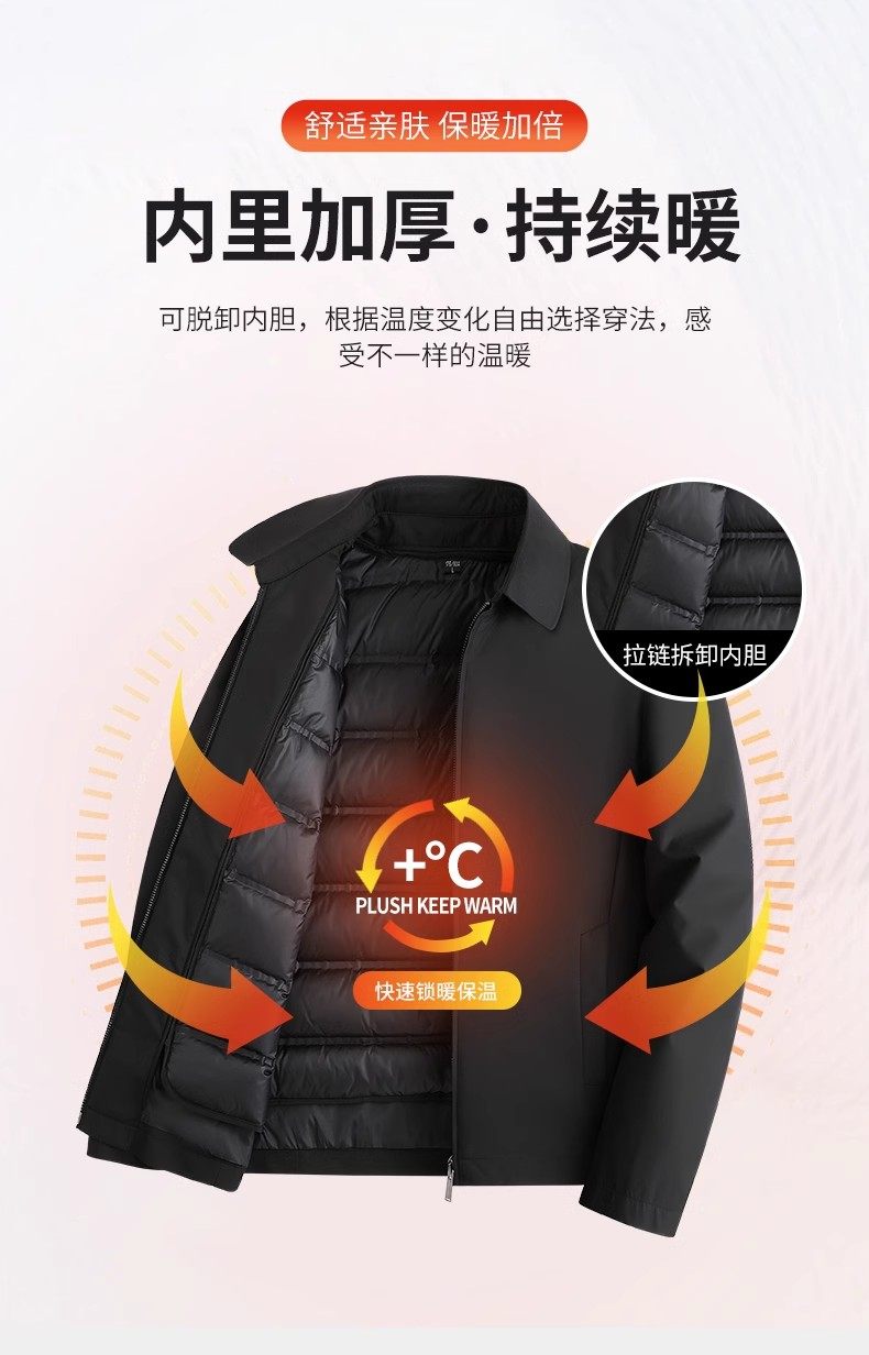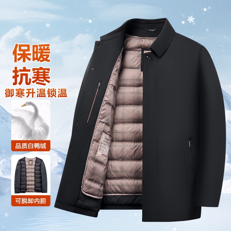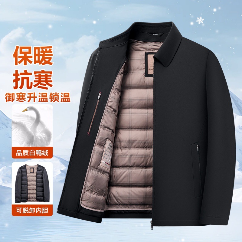 Executive Down Jacket 남성 2025 가을, 겨울 두꺼운 중년 및 노인 아빠 겨울 의류 탈착식 라이너 다운 재킷스토어 가기