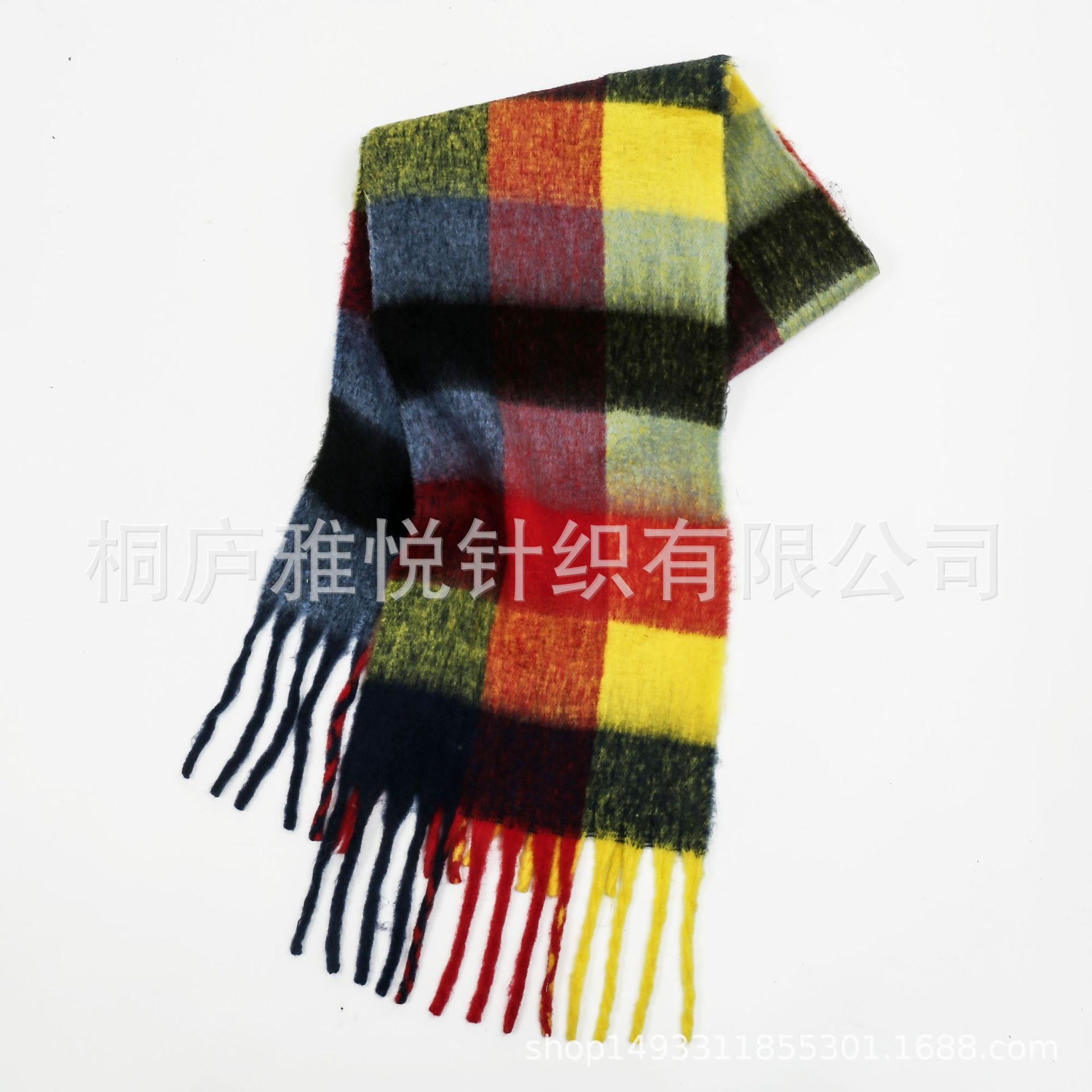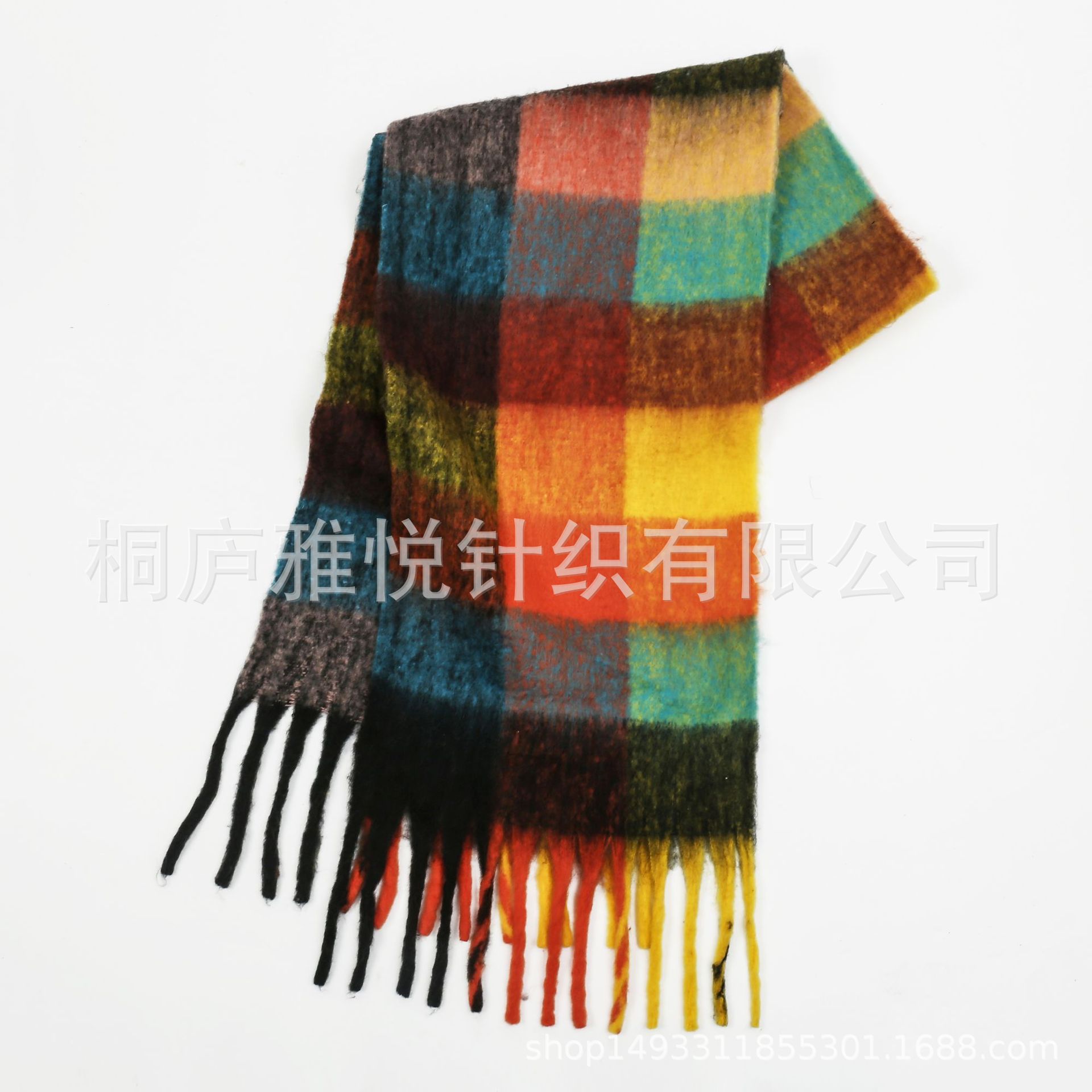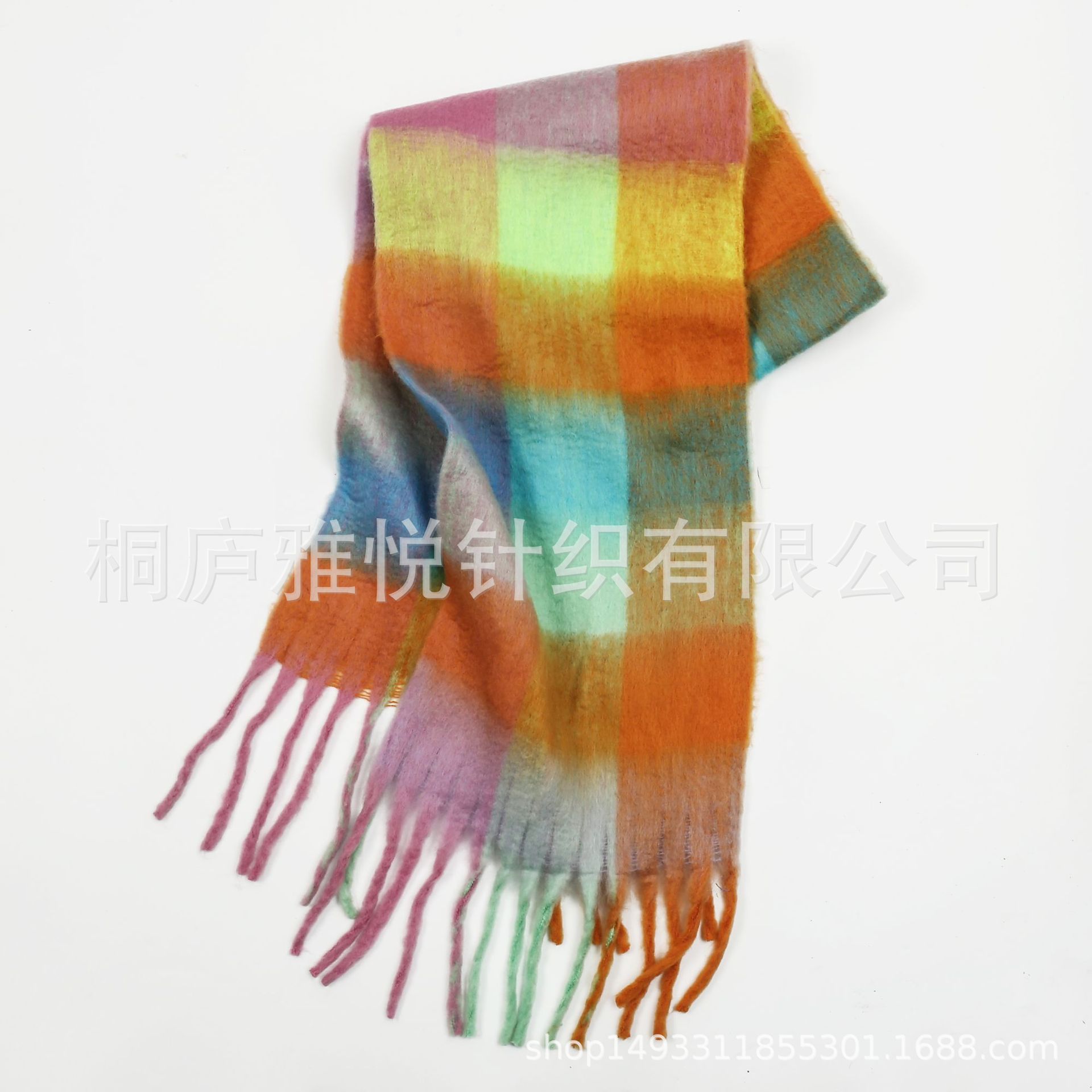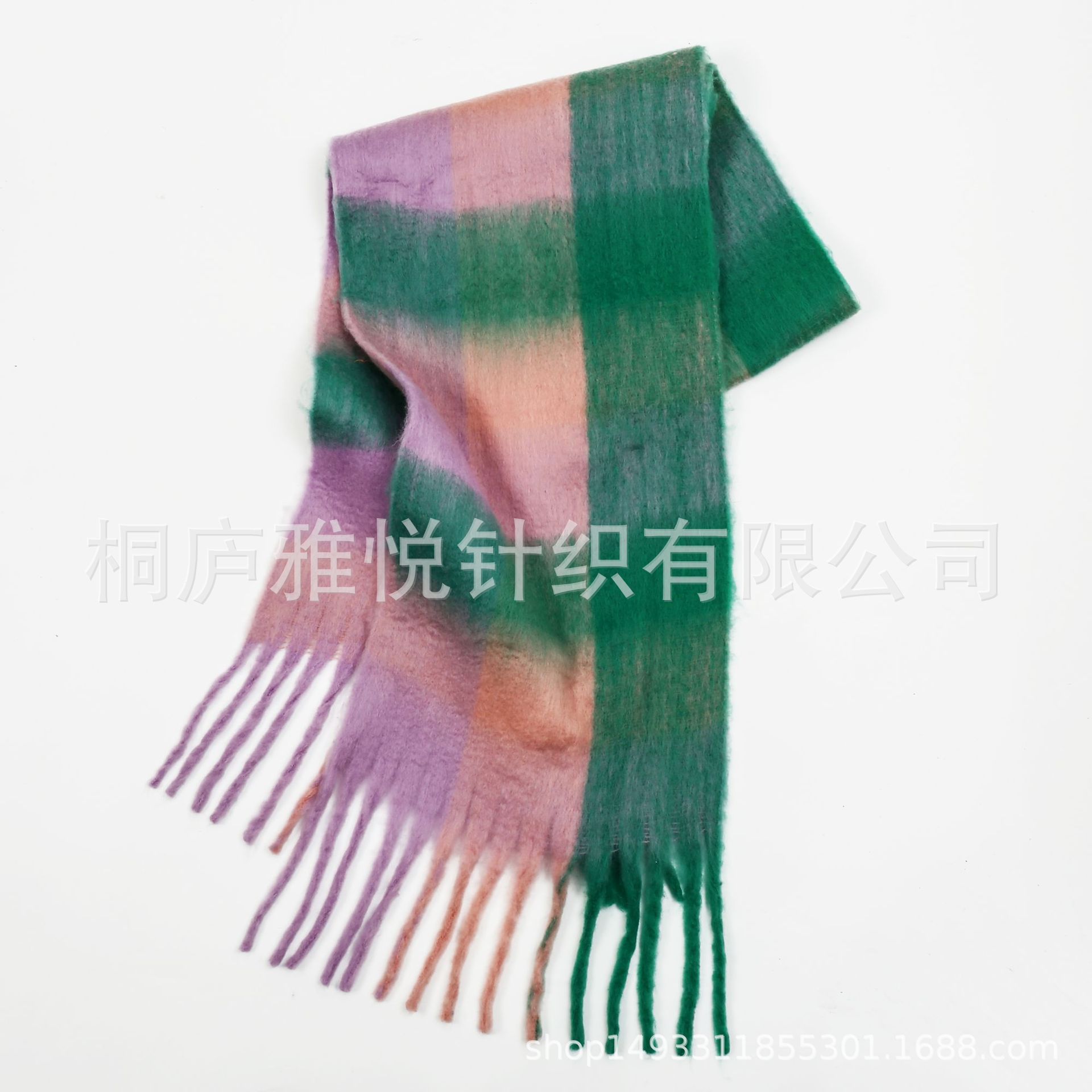 여성을위한 다채로운 격자 무늬 스카프 겨울 따뜻한 스카프 모헤어 두꺼운 긴 스카프 크로스 보더 격자 무늬 목도리 도매