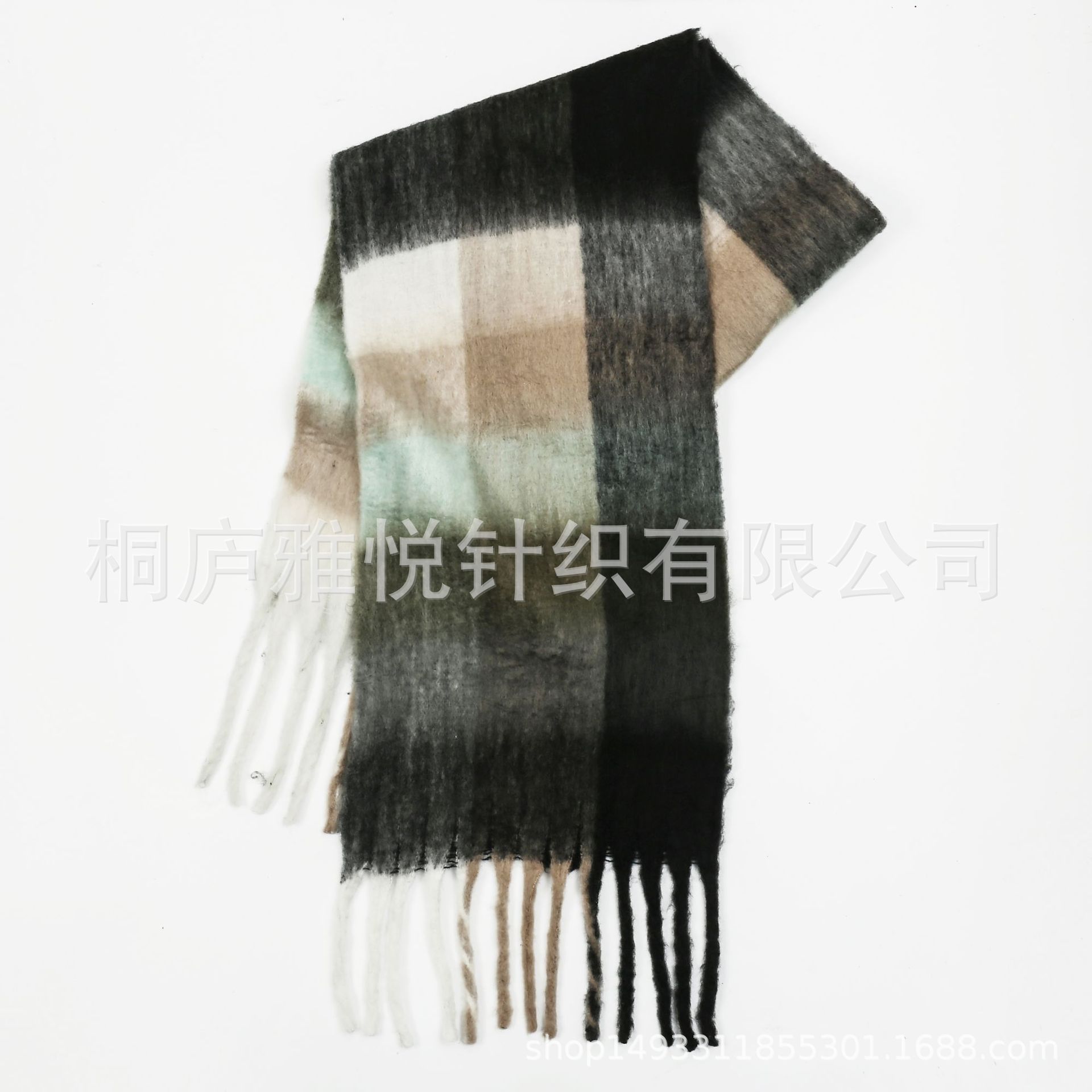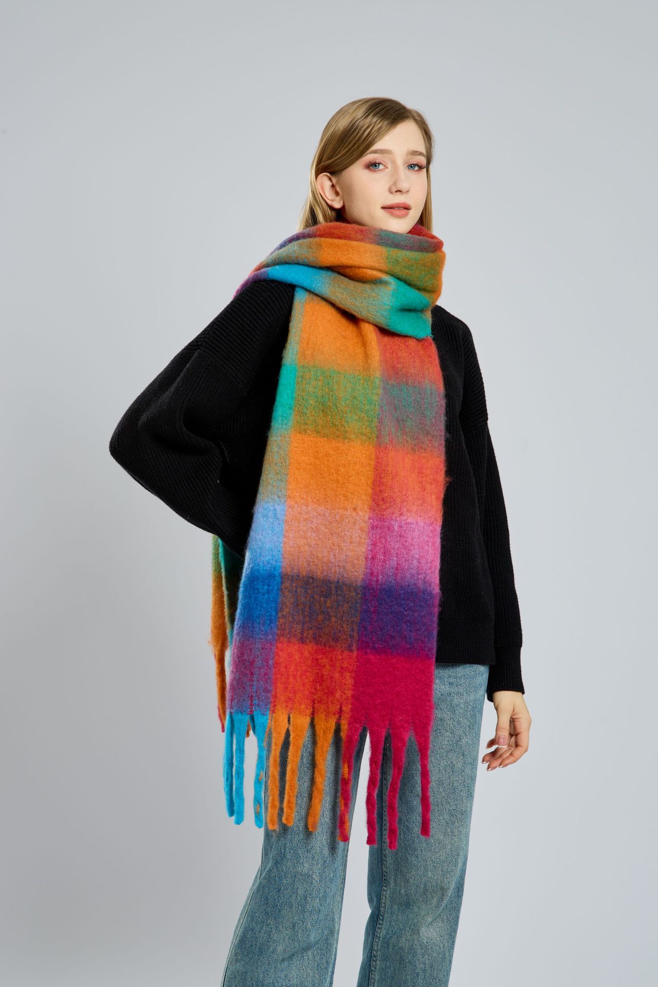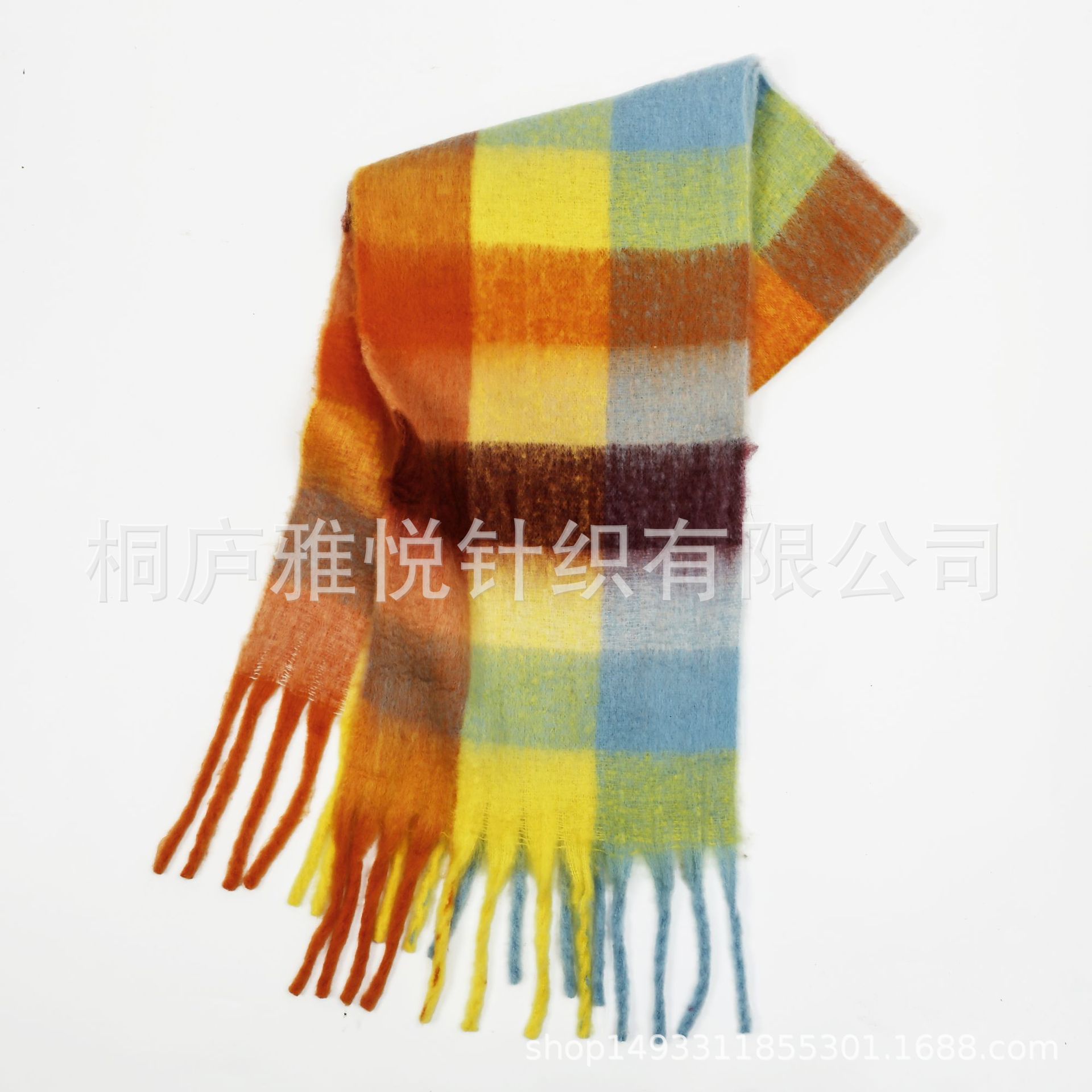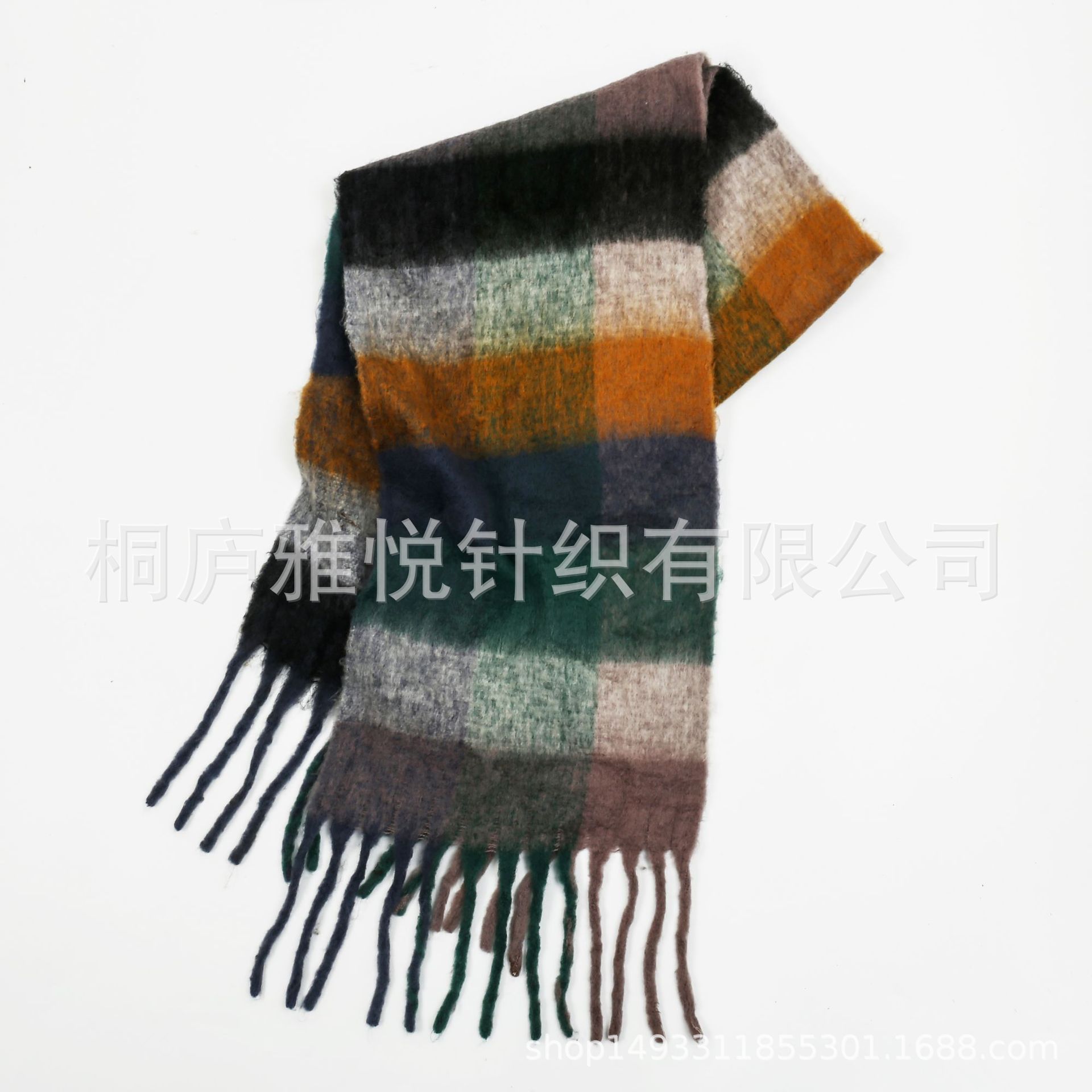 여성을위한 다채로운 격자 무늬 스카프 겨울 따뜻한 스카프 모헤어 두꺼운 긴 스카프 크로스 보더 격자 무늬 목도리 도매